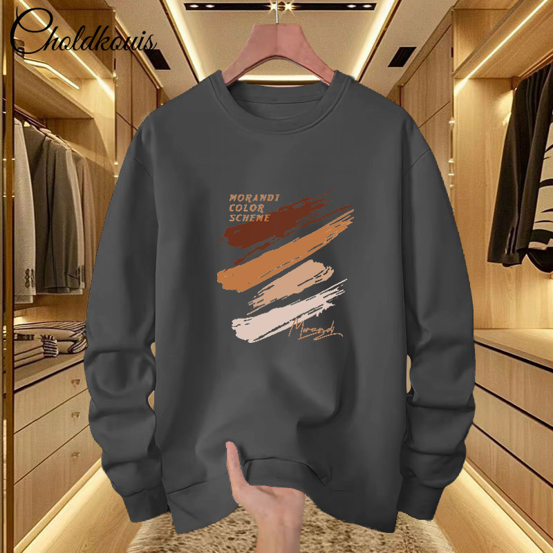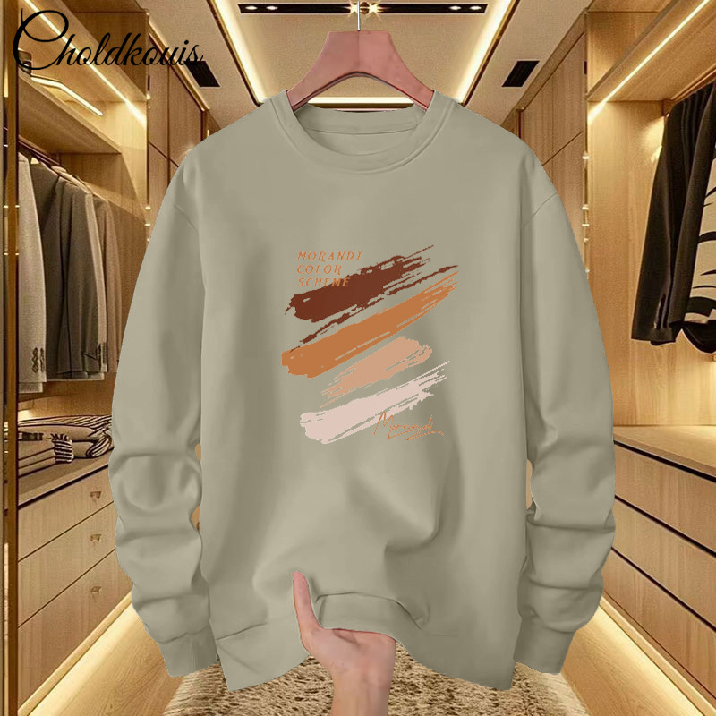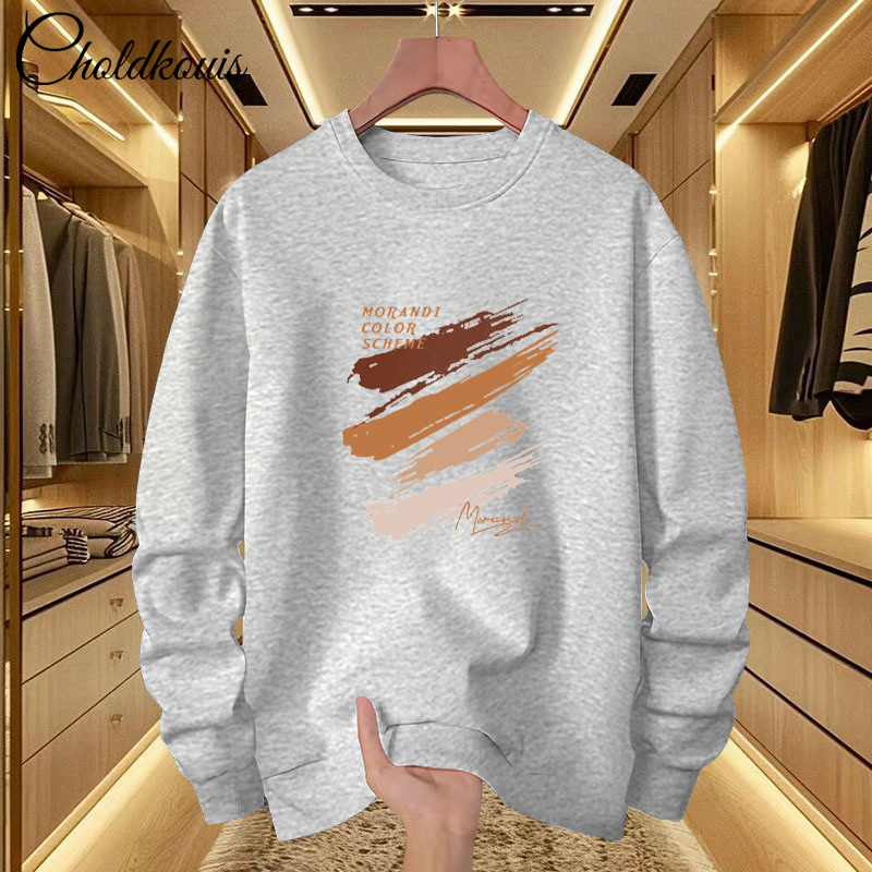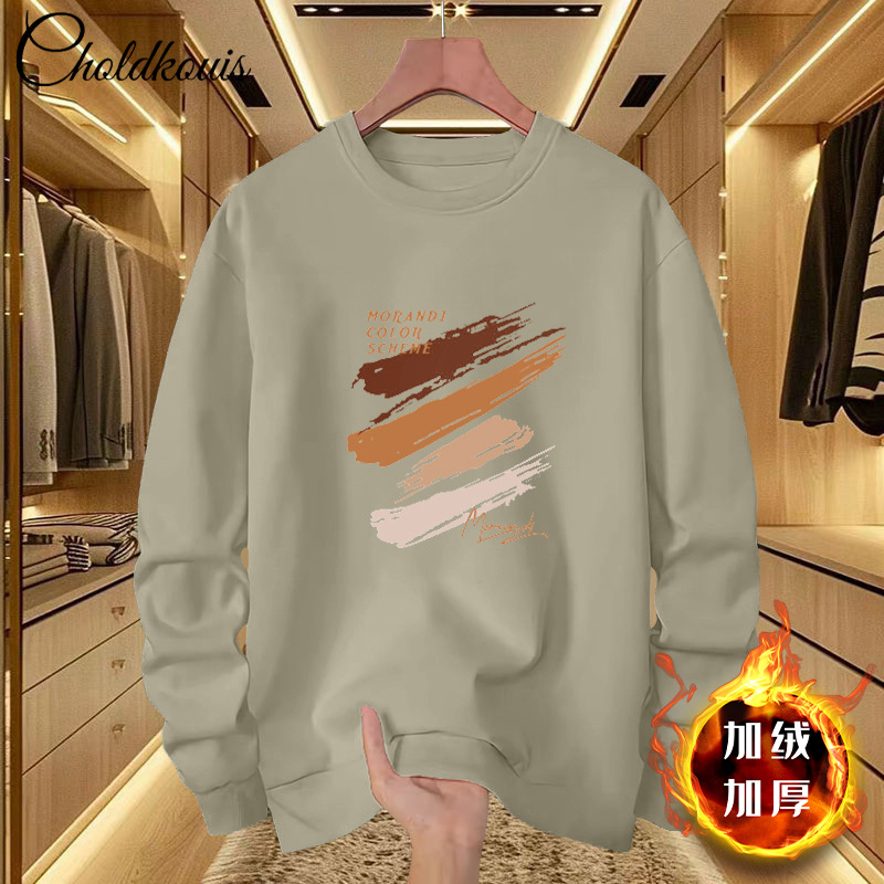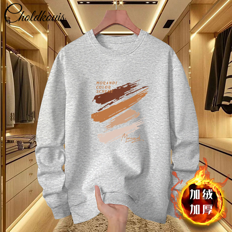 • 오트밀 그레이 라운드넥 스웨트셔츠 플러스 플리스 스타일-1599【GL】