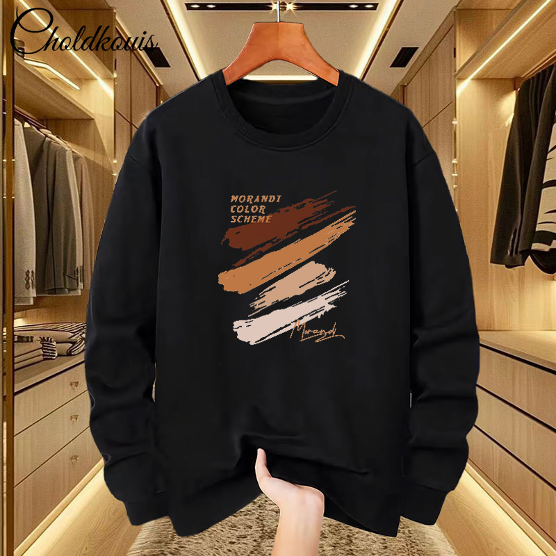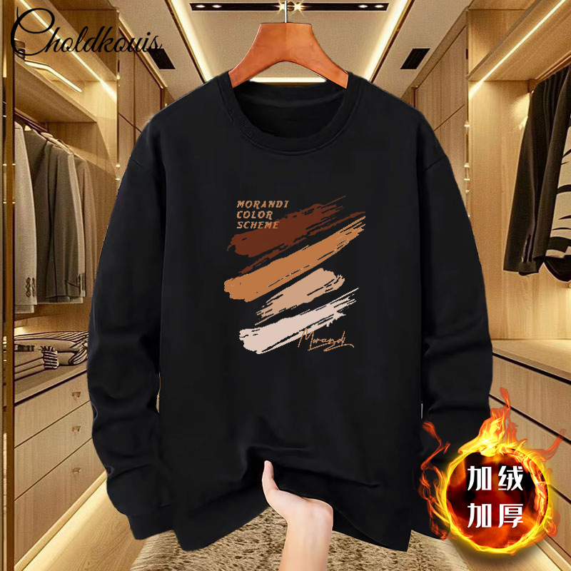 • 블랙 라운드넥 스웨트셔츠 플러스 플리스 스타일-1599【GL】