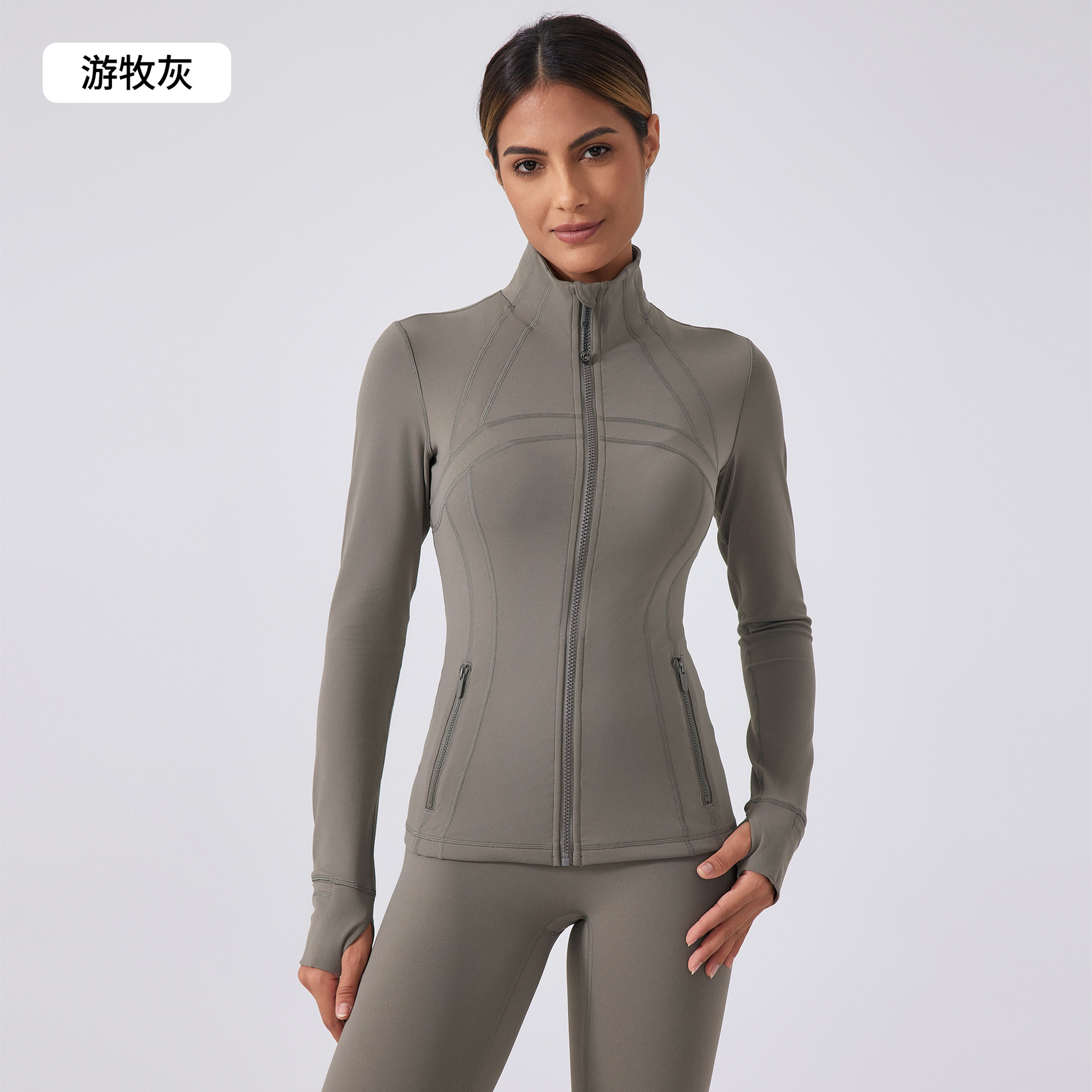 가을 새로운 요가 의류 코트 여성 달리기 및 사이클링 스포츠 긴 소매 슬림 핏 수직 칼라 스포츠 피트니스 의류 DAW182스토어 가기