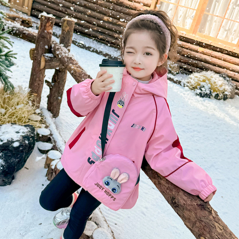 소녀의 토끼 경찰관 3 대 1 러시 옷 가을과 겨울 스타일 어린이 세련된 후드 코트 어린 소녀의 겨울 코트