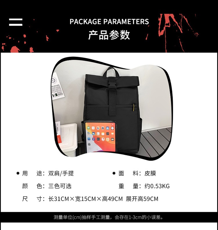대용량 15.6 인치 컴퓨터 배낭 롤 입 롤 커버 배낭 야외 레저 스포츠 남자 배낭