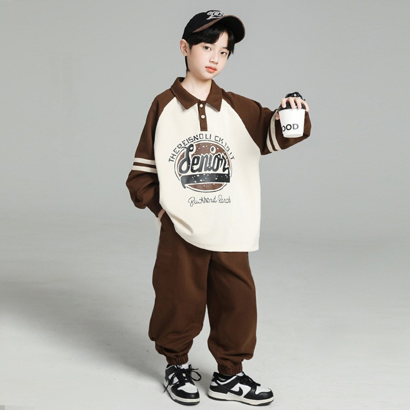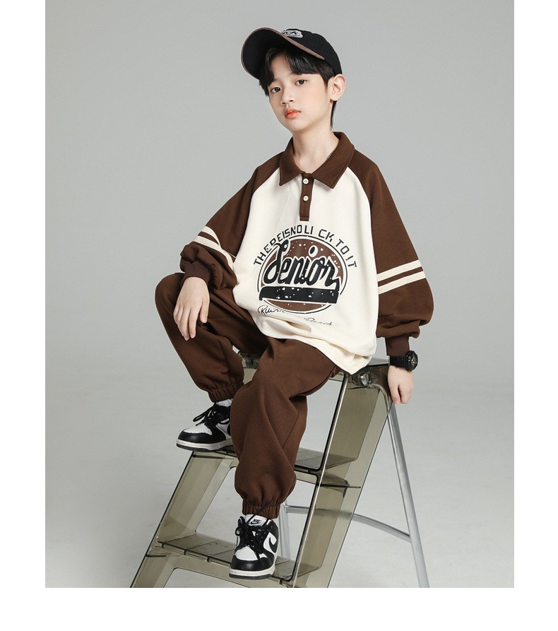 儿童时尚潮范印花翻领纽扣休闲套装中大童帅气宽松卫衣卫裤两件套스토어 가기