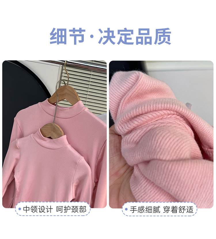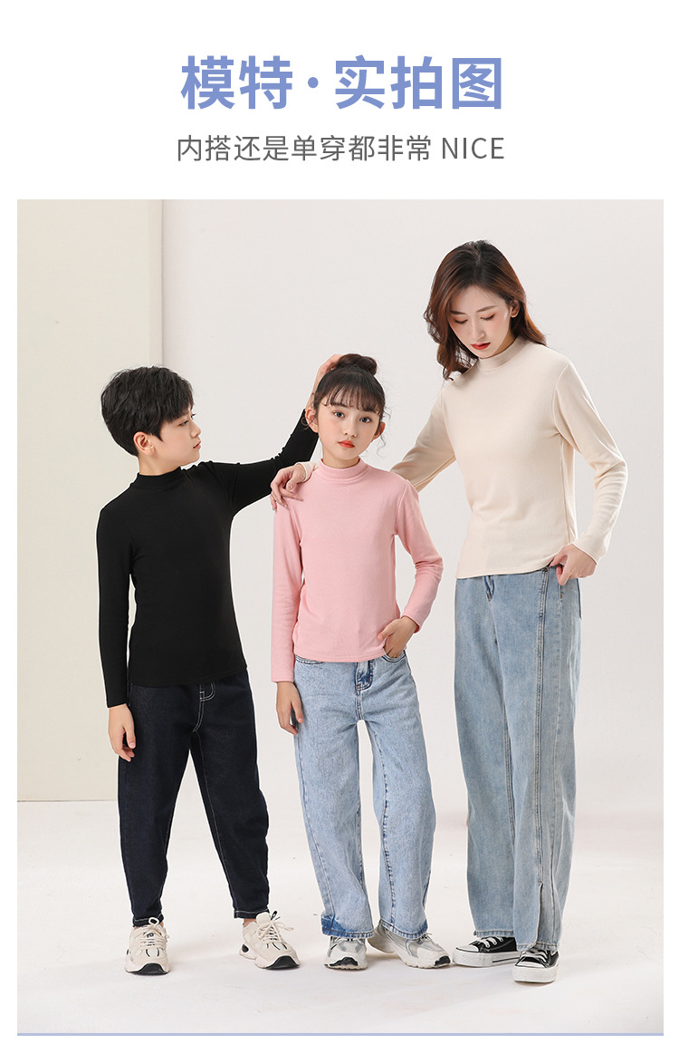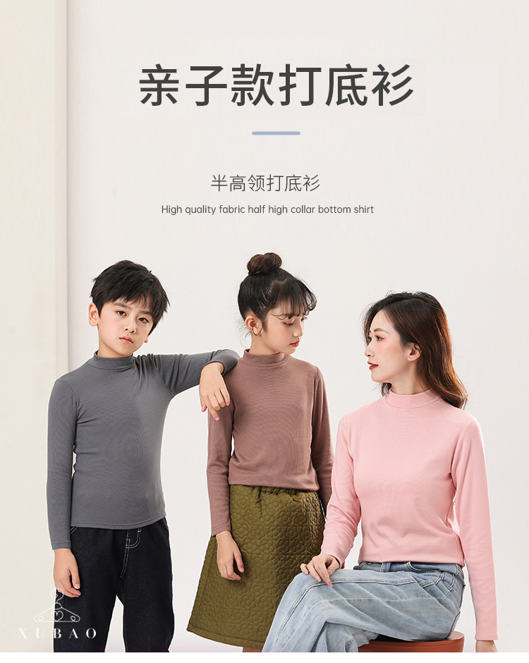 가을과 겨울 부모-어린이 부드러운 스트레치 일반 반 높은 칼라 베이스 셔츠 큰 소년 소녀 구덩이 스트립 그라인딩 내부 긴 소매 T스토어 가기
