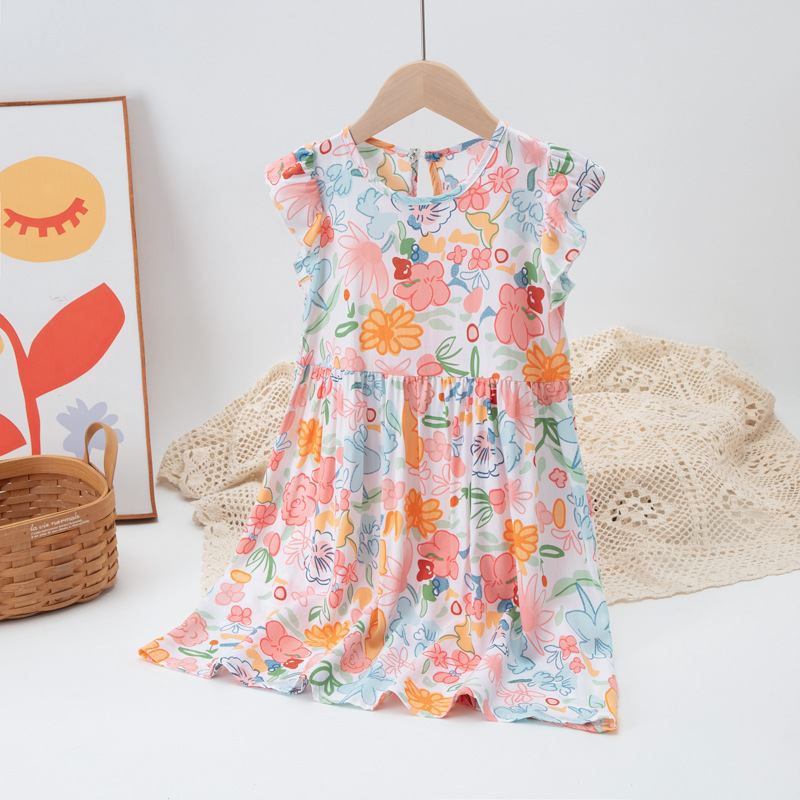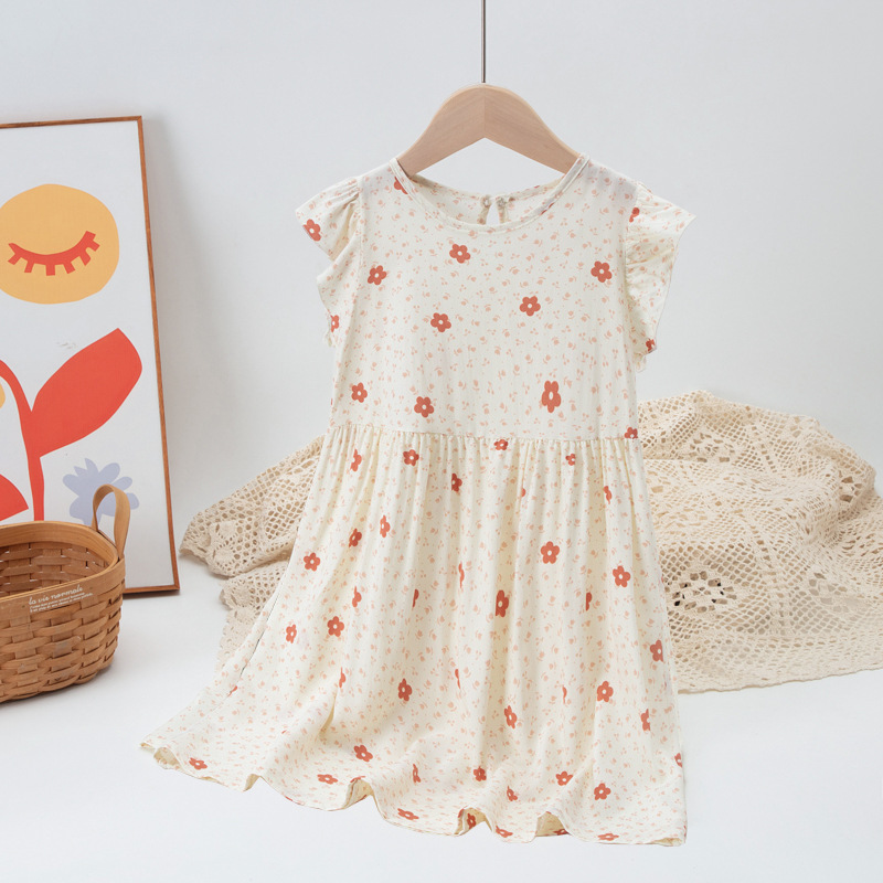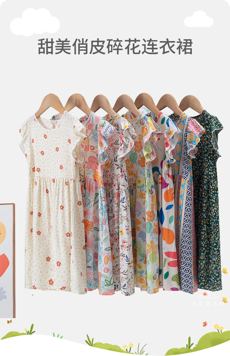 24 여름 어린이 달콤하고 쾌활한 목가적 인 꽃 원피스 큰 소녀의 세련된 팬페이 슬리브 공주 원피스스토어 가기