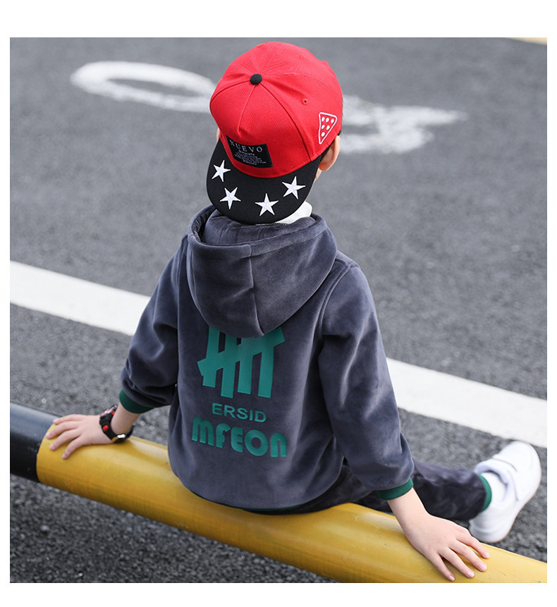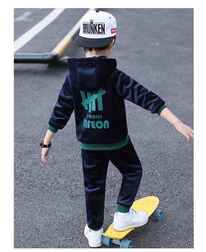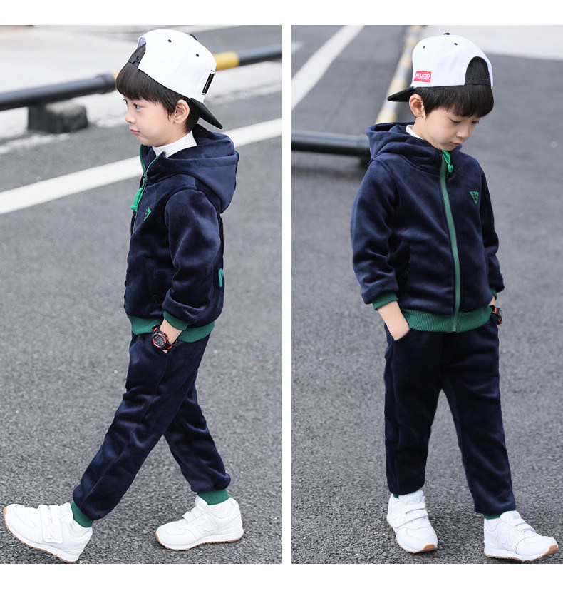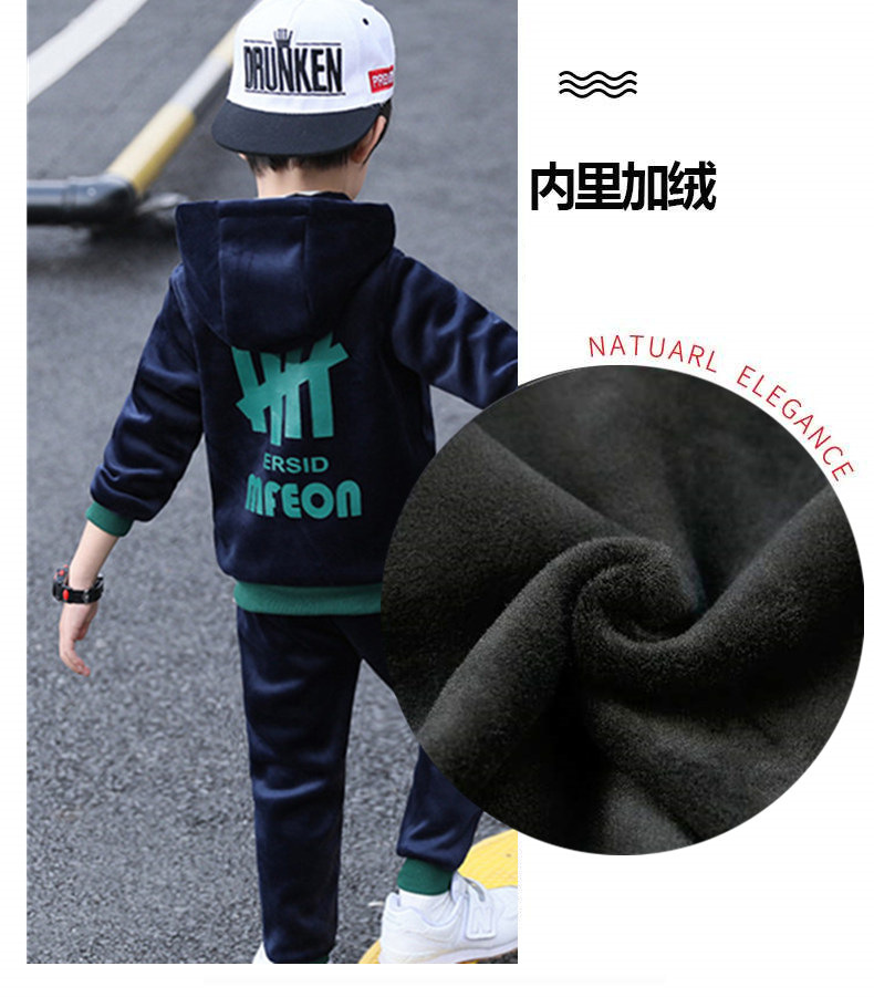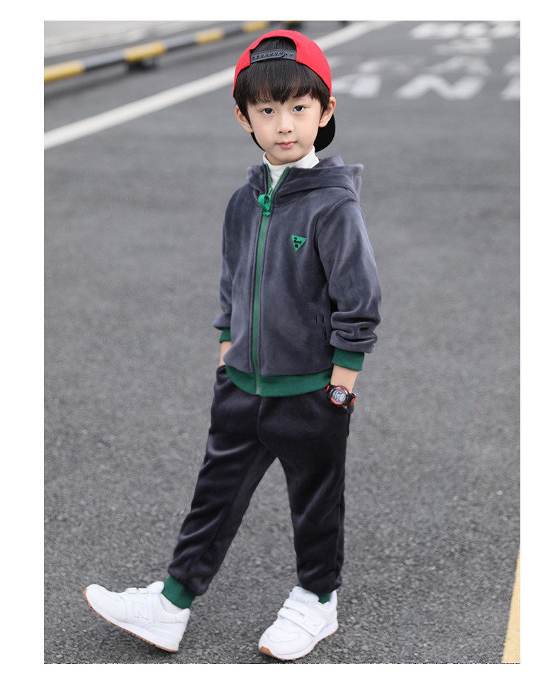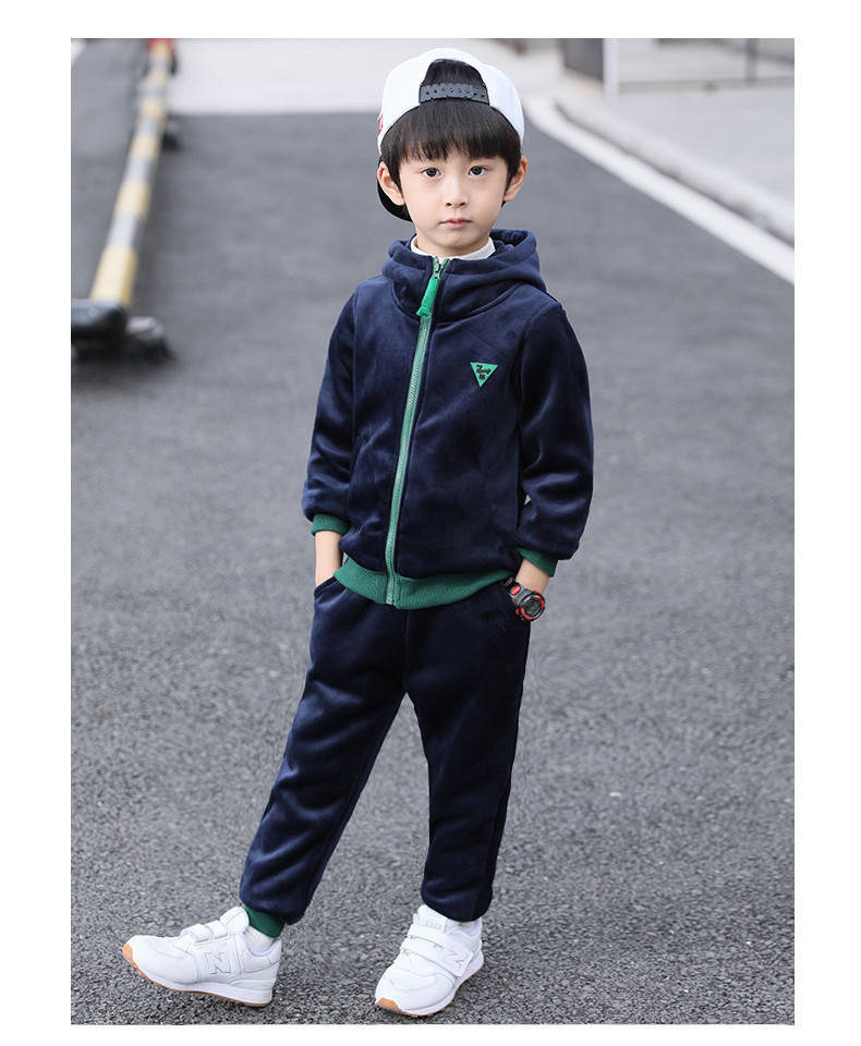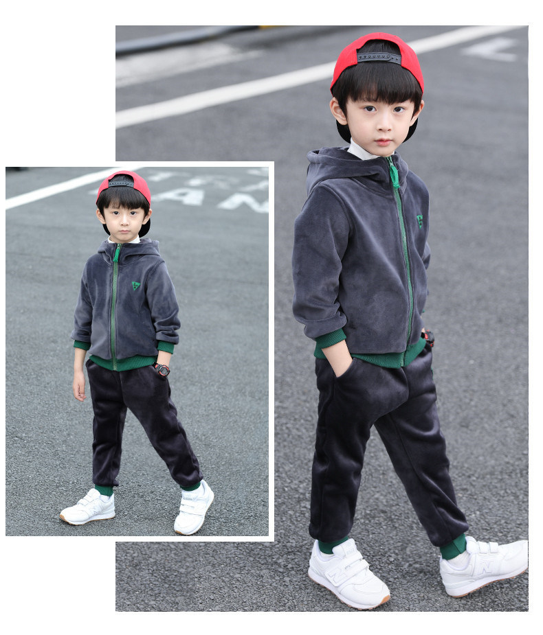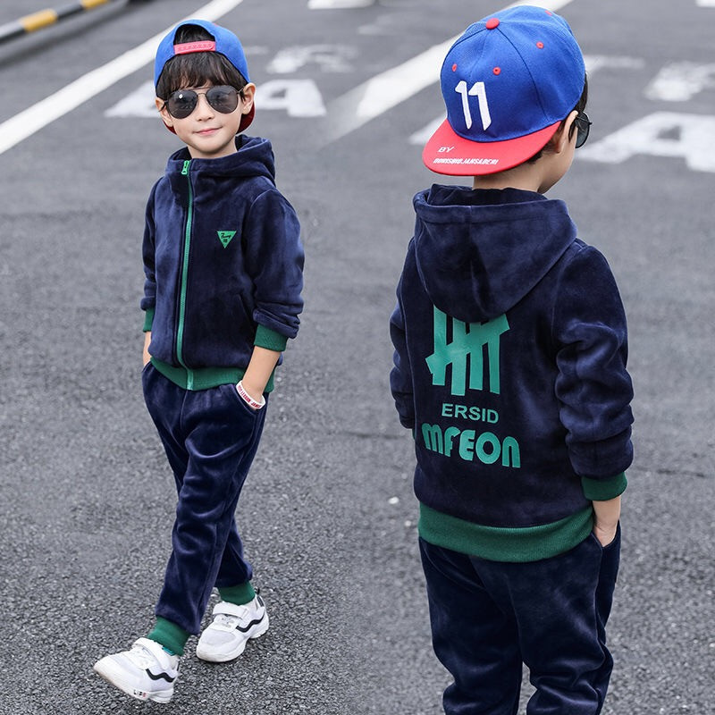 가을과 겨울 기모 두꺼운 따뜻한 느슨한 캐주얼 세트 소년 지퍼 카디건 후드 스웨터 바지 2 개 세트스토어 가기