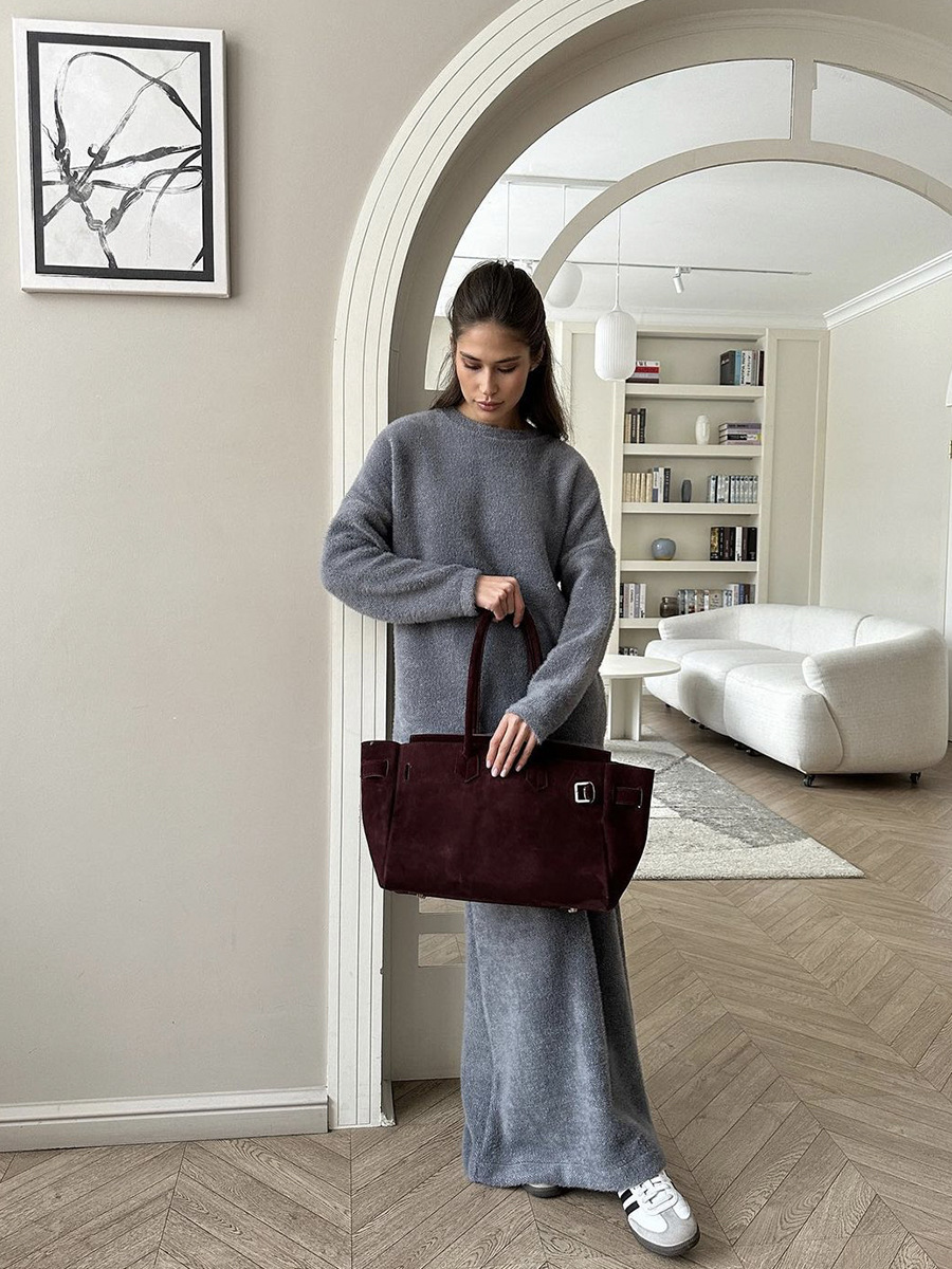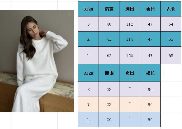 2025 가을 겨울 우아한 부드러운 두꺼운 라운드 넥 스웨터 + 피쉬 테일 스커트 투피스 여성 OL 스타일 탑 + 스커트 세트스토어 가기