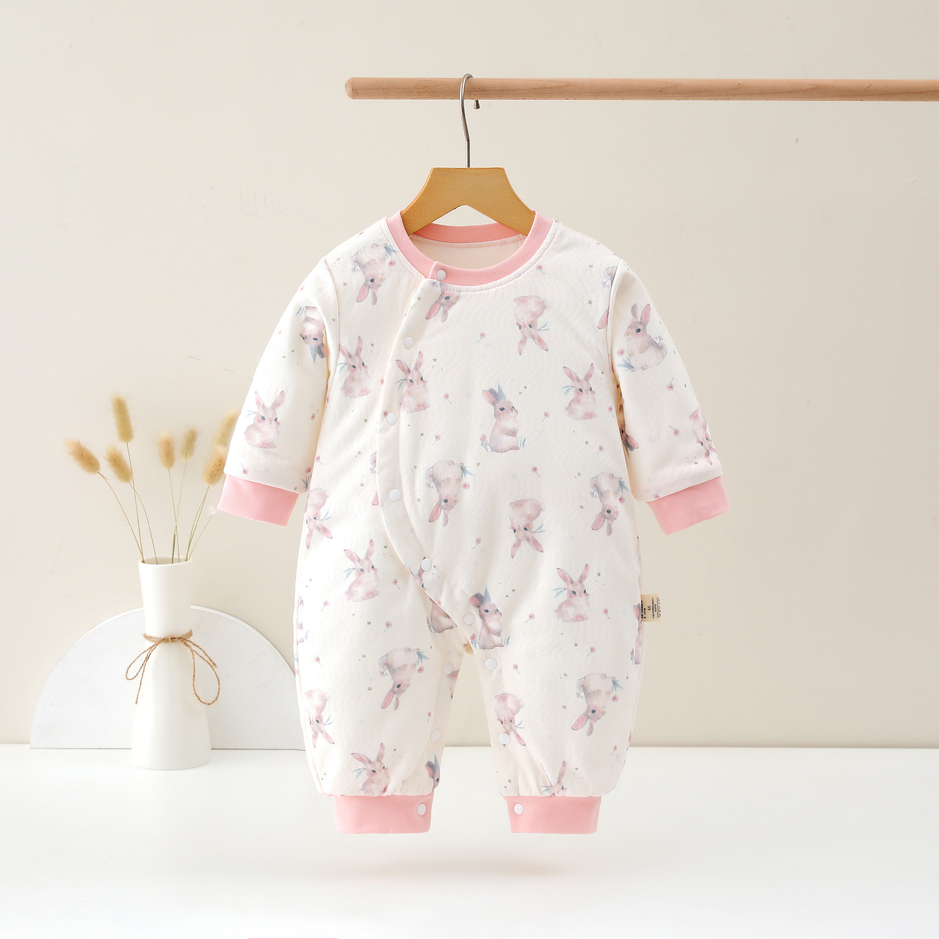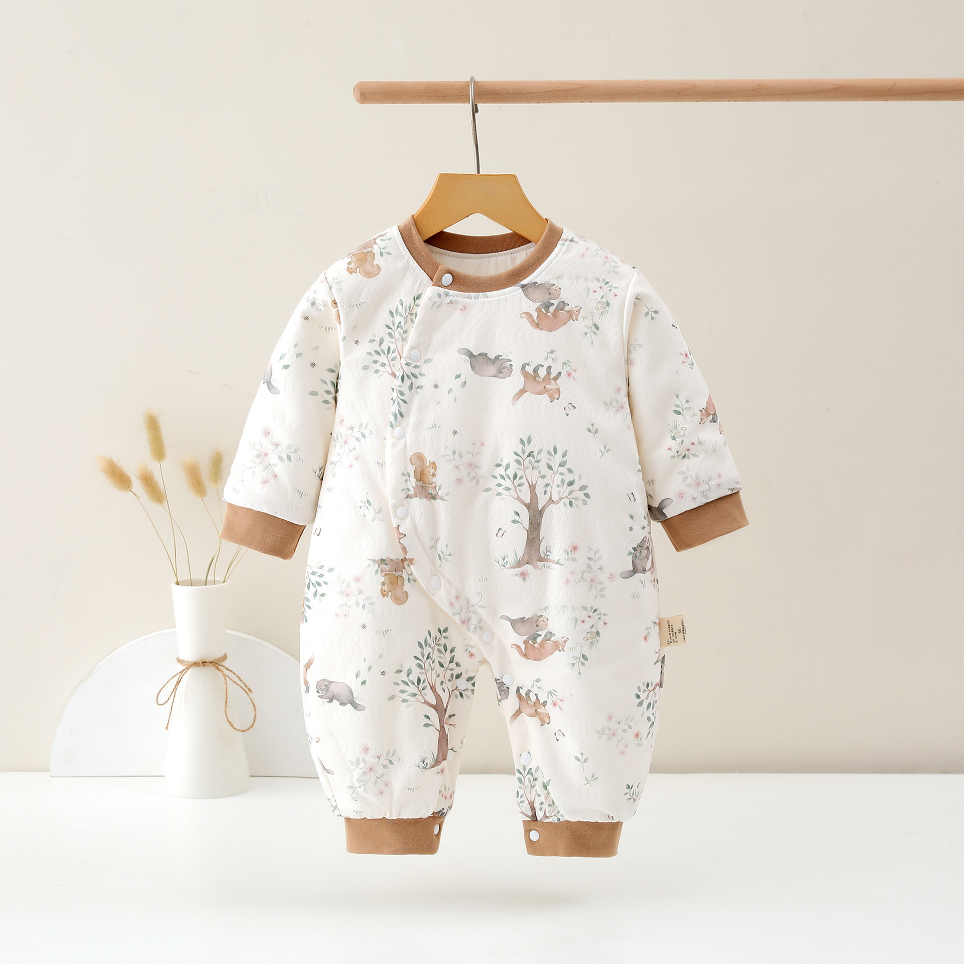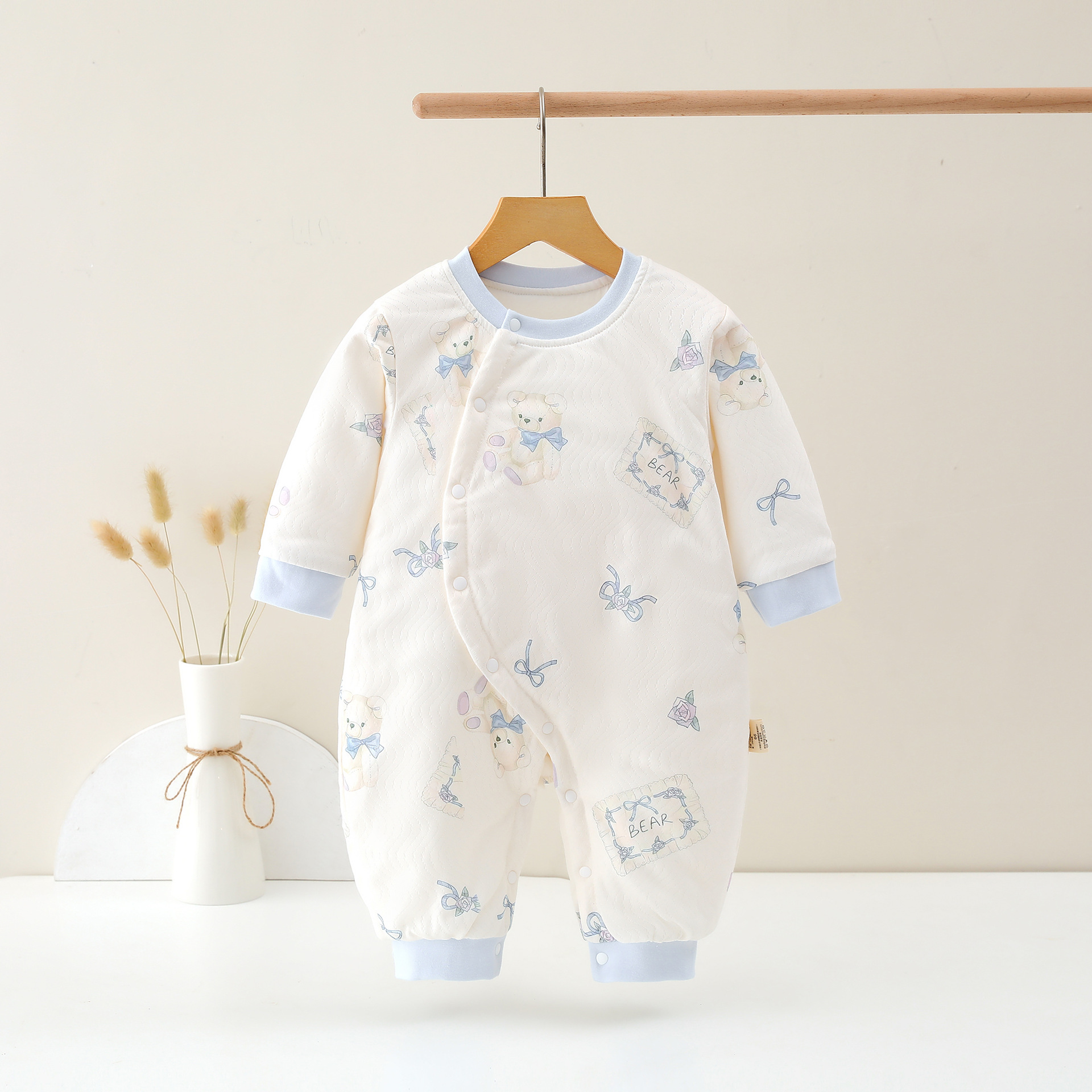 아기면 패딩 점프 수트 아기 50 g면 패딩 뼈없는 재킷 가을과 겨울 신생아 얇은면 패딩 부분 플래켓 등반 세트