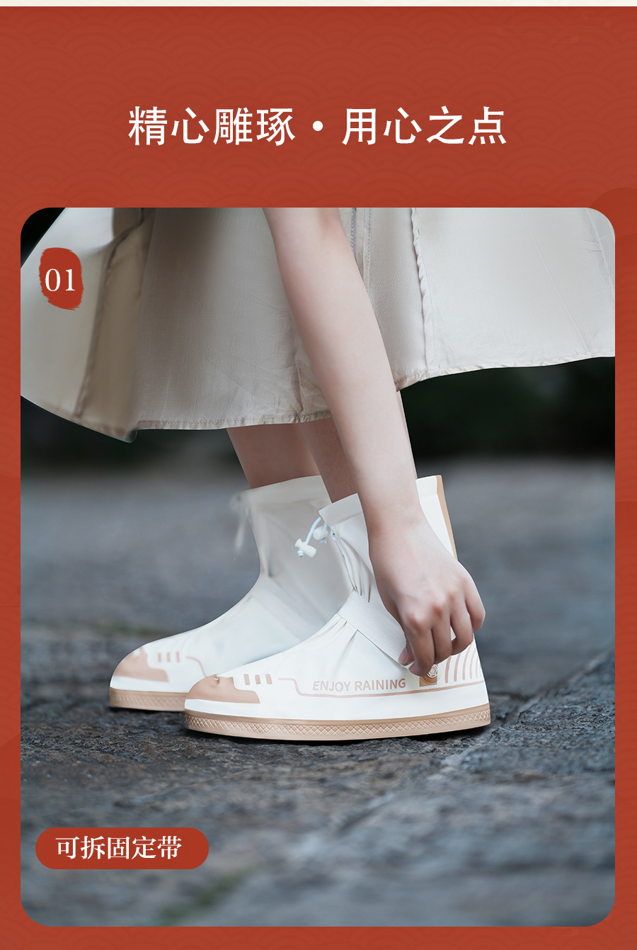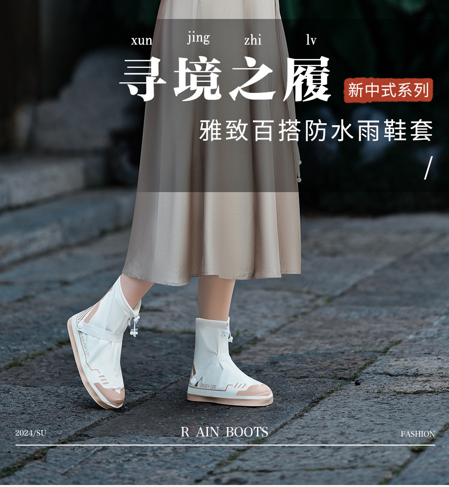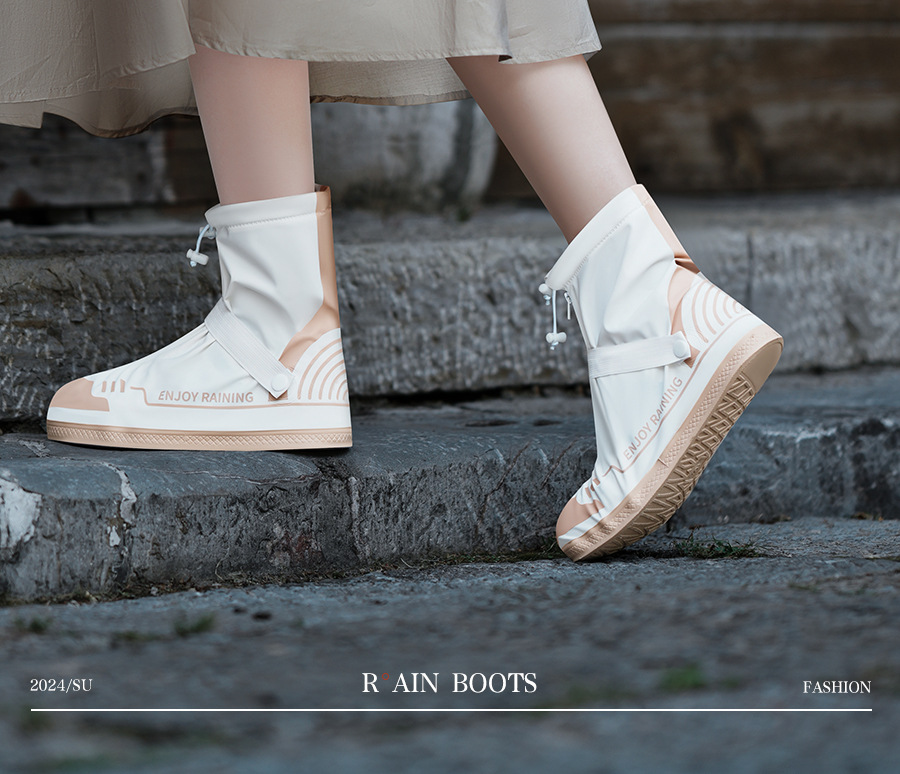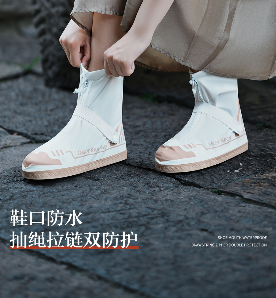 여성용 미끄럼 방지 크로스보더 레인슈즈 커버, 두꺼운 내마모성 발 커버, 남성용 방수 레인슈즈, 중간 튜브 PVC 학생복스토어 가기