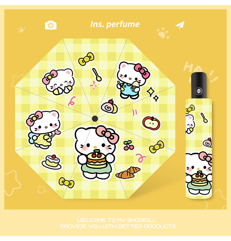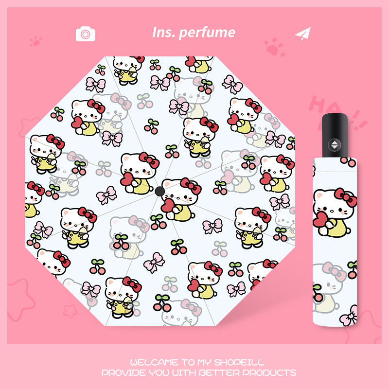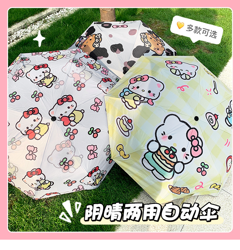 자동 만화 KT 새로운 맑음 우산 소녀 태양 우산 선 스크린 UV 보호 야외 햇살 우산 맑고 비 이중 사용스토어 가기