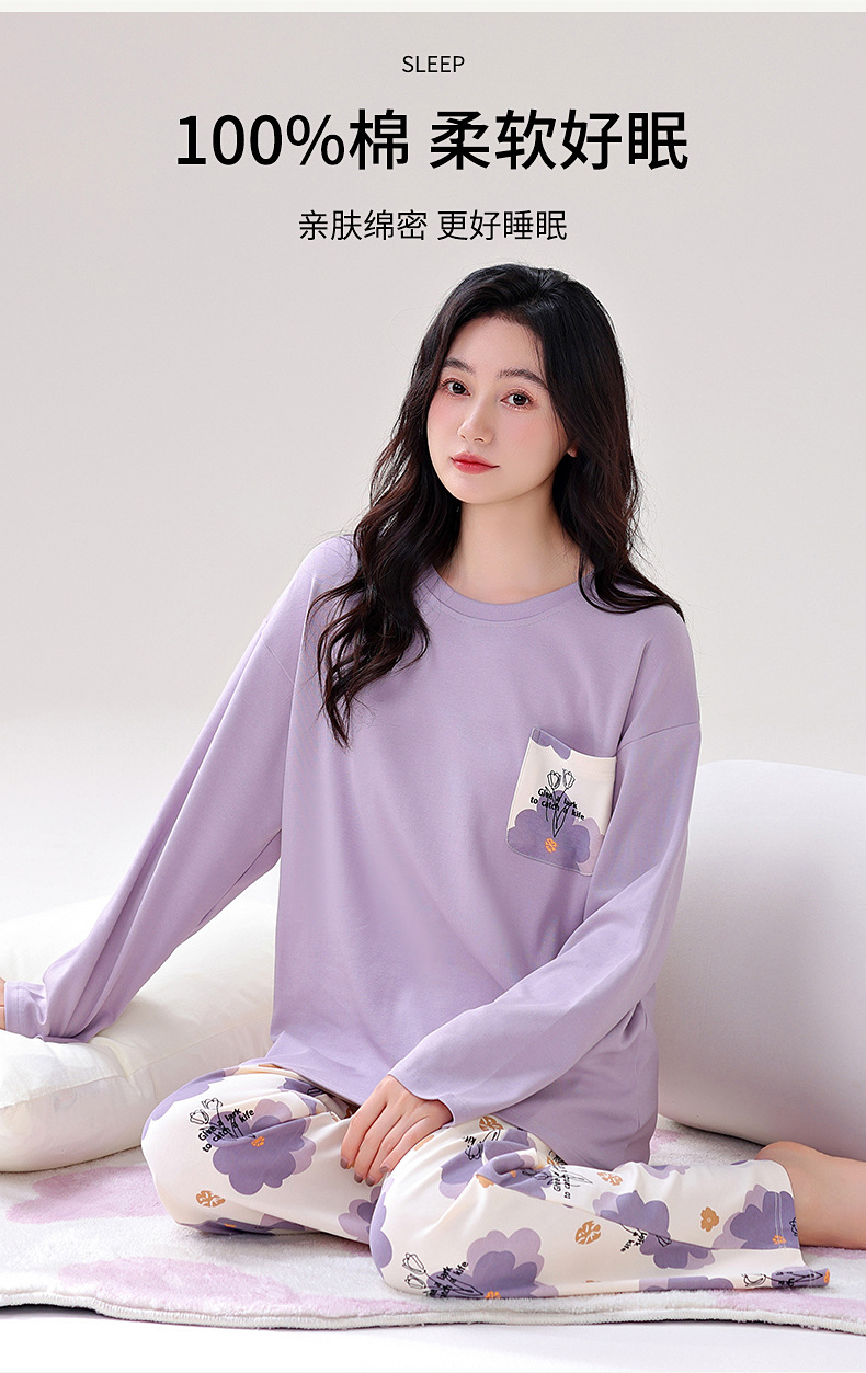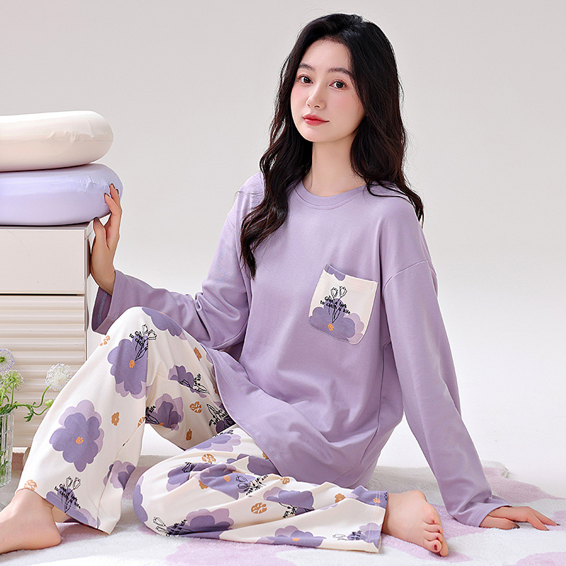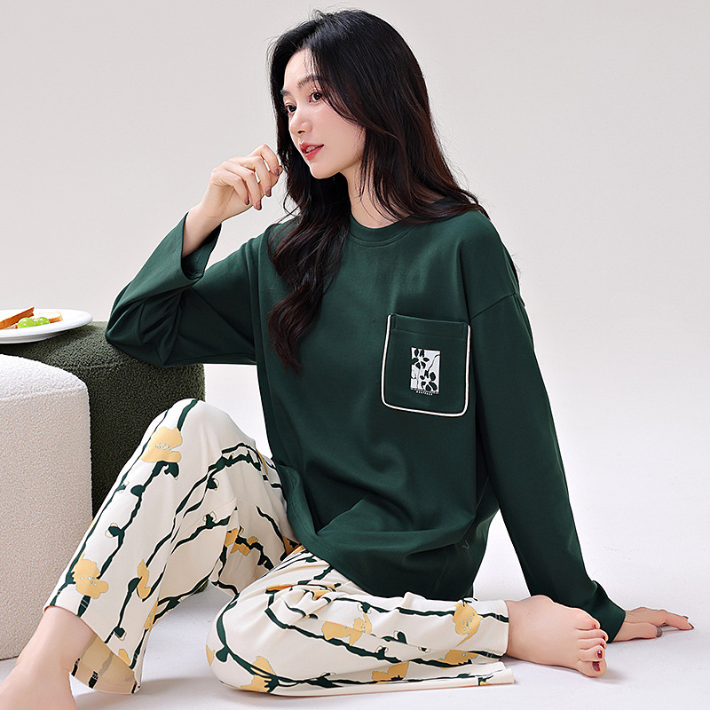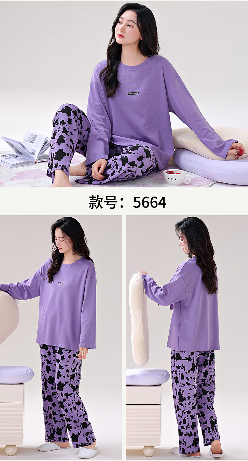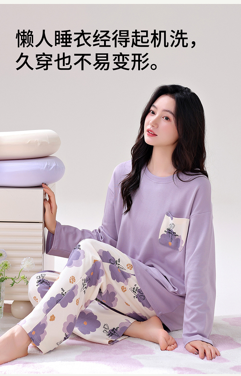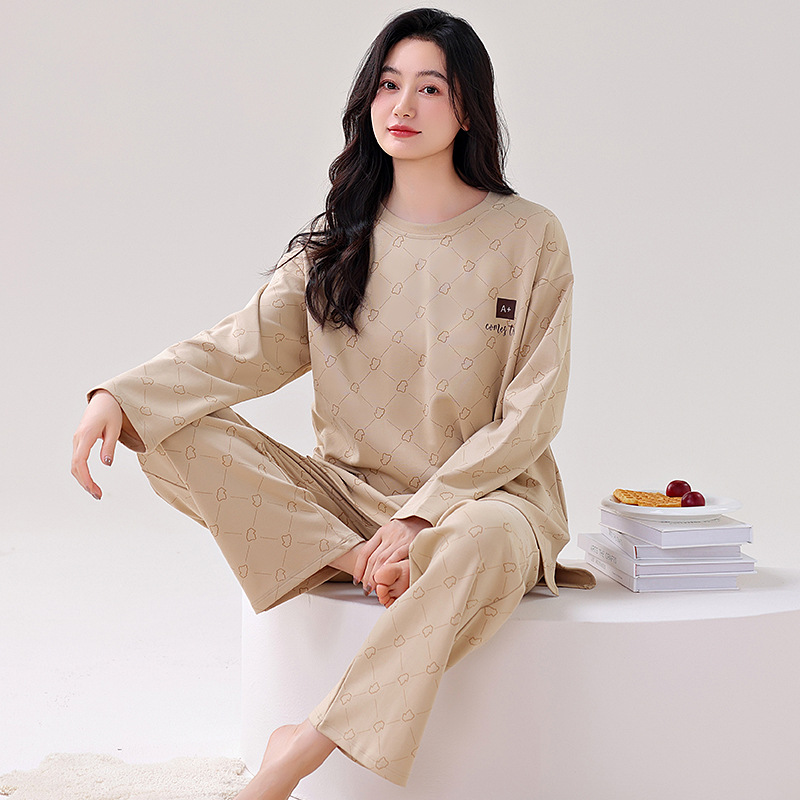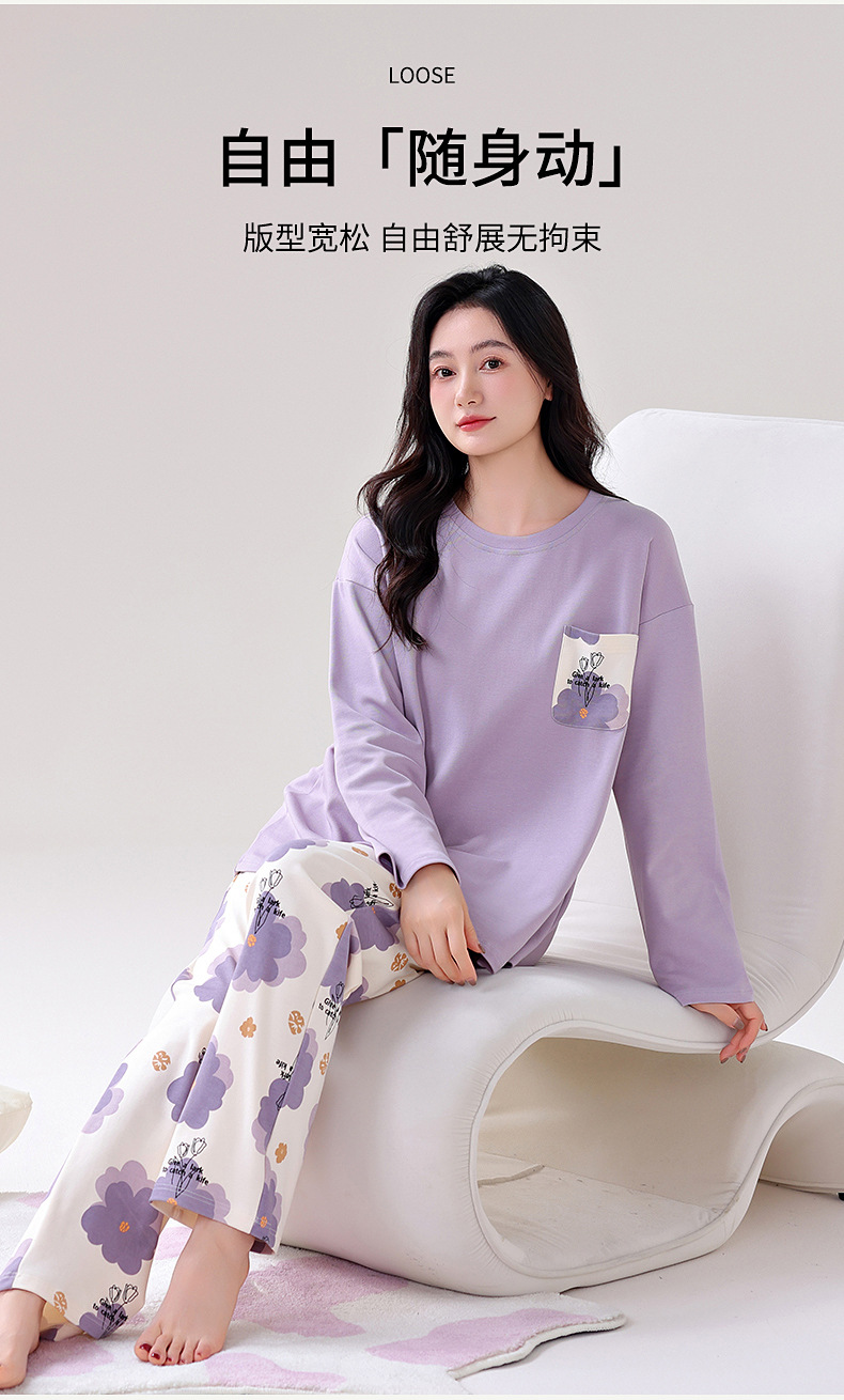 여성 잠옷 가을 면 긴 소매 세트 달콤한 귀여운 느슨한 캐주얼 플러스 사이즈 홈 옷 면 봄과 가을스토어 가기