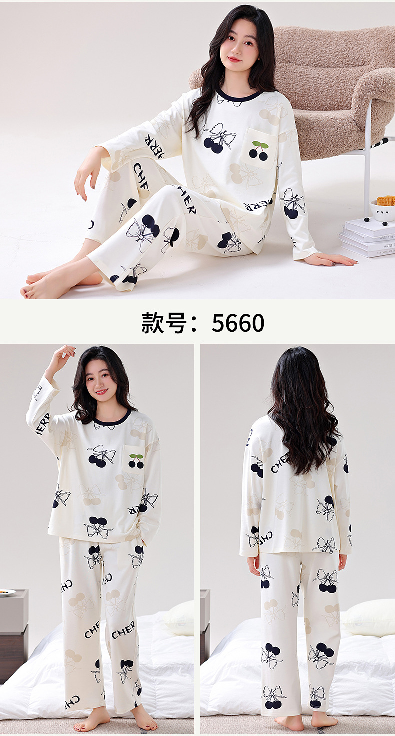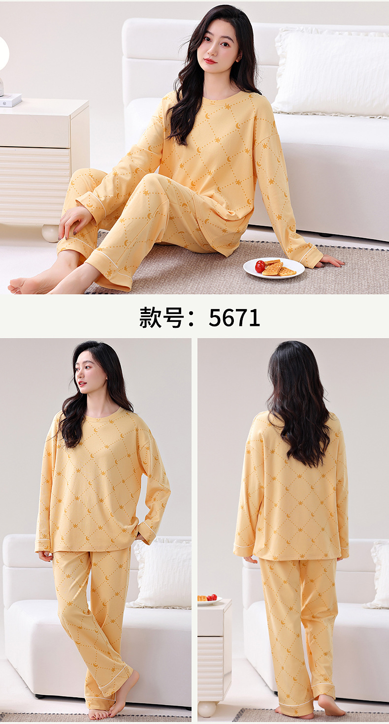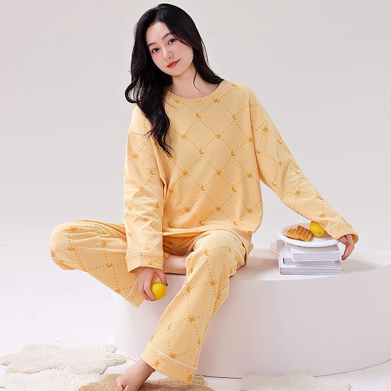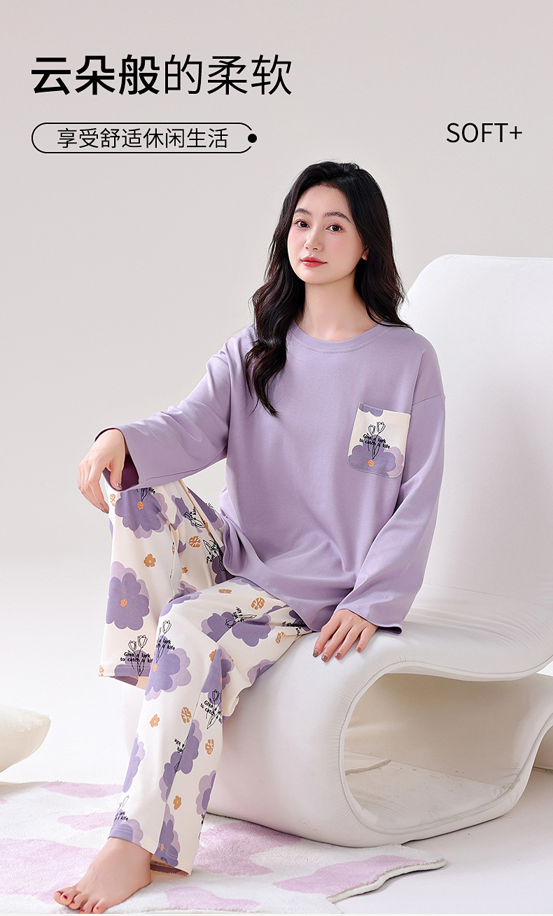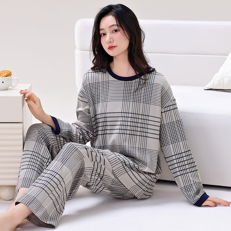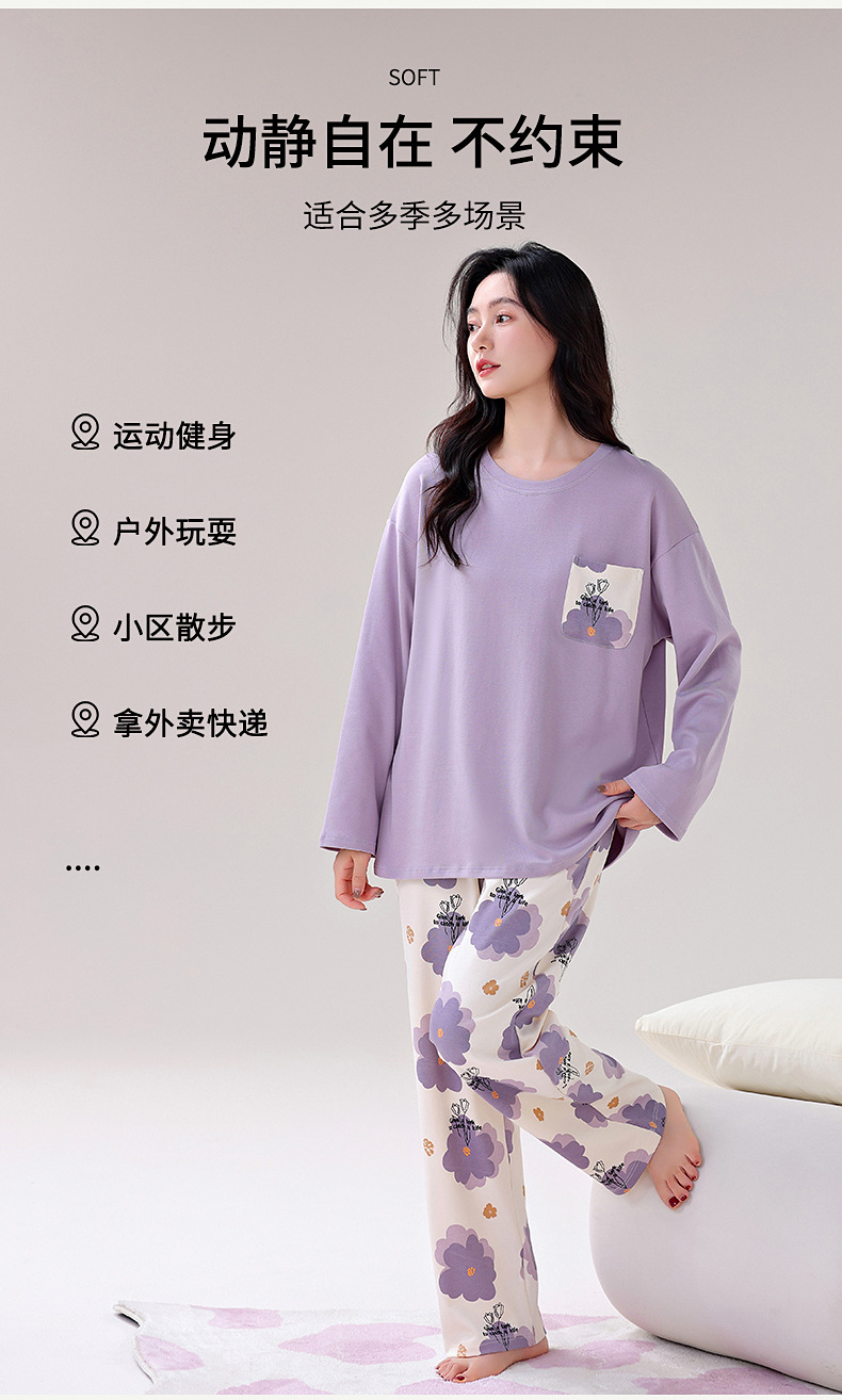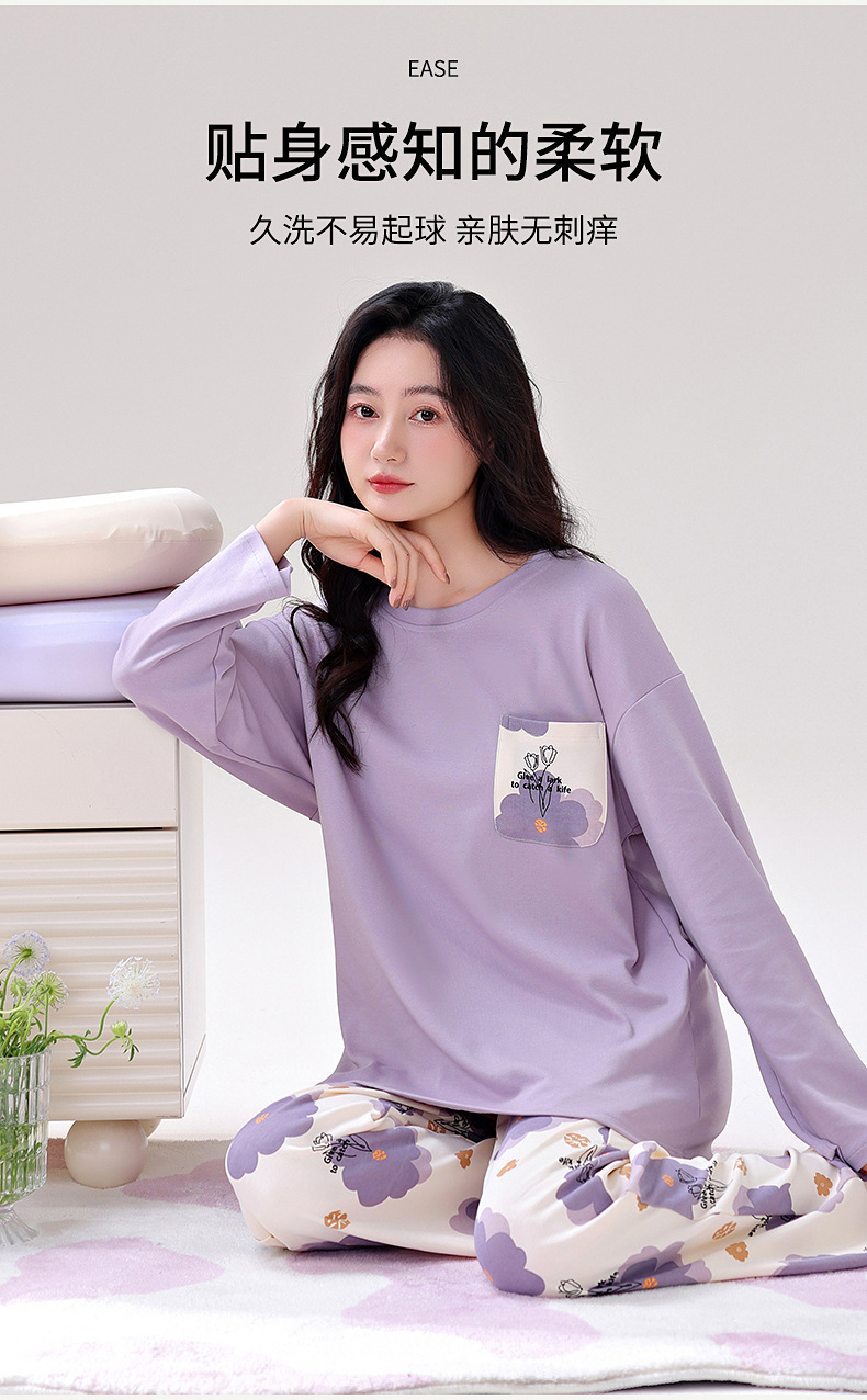 여성 잠옷 가을 면 긴 소매 세트 달콤한 귀여운 느슨한 캐주얼 플러스 사이즈 홈 옷 면 봄과 가을스토어 가기