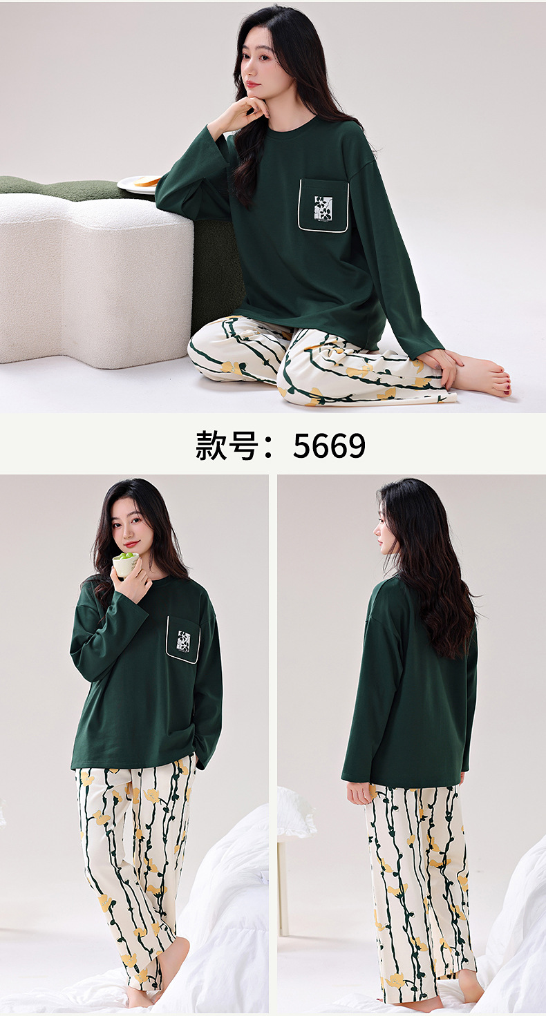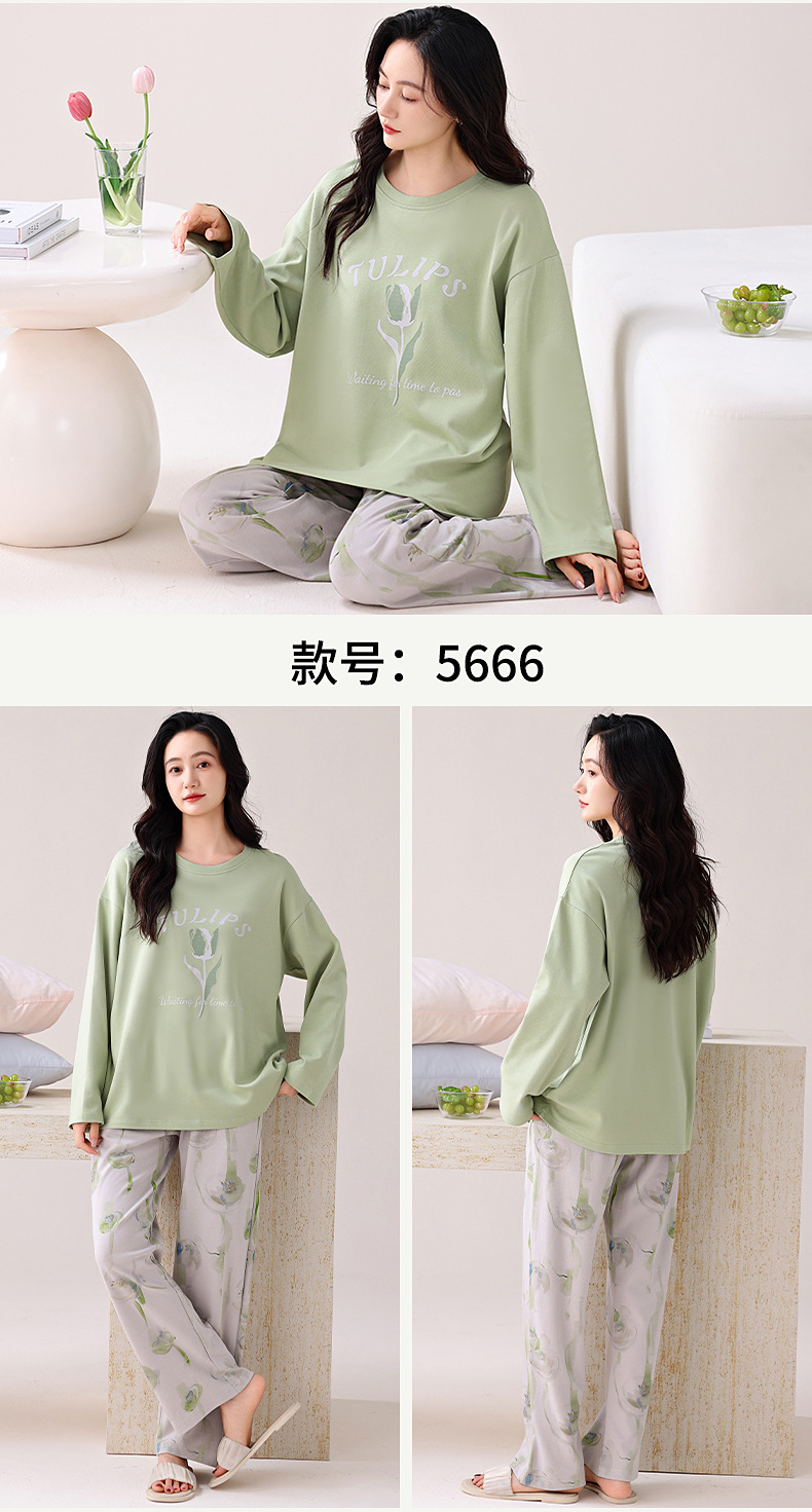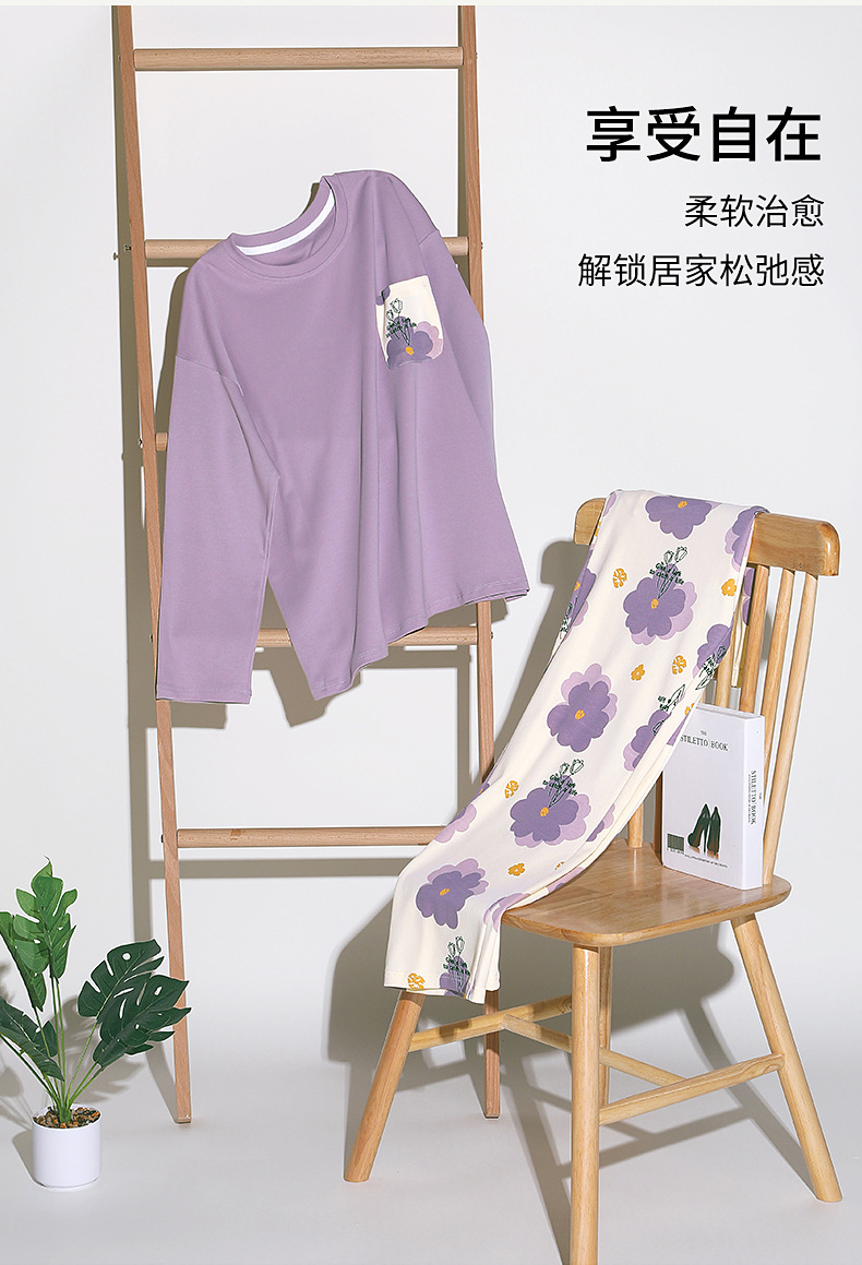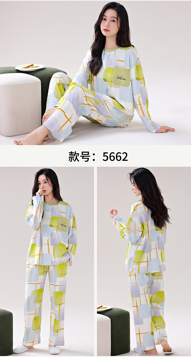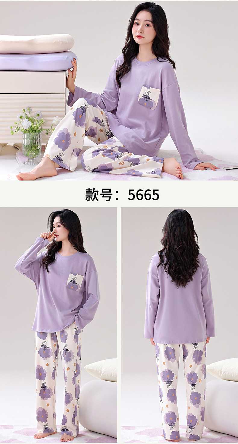 여성 잠옷 가을 면 긴 소매 세트 달콤한 귀여운 느슨한 캐주얼 플러스 사이즈 홈 옷 면 봄과 가을스토어 가기