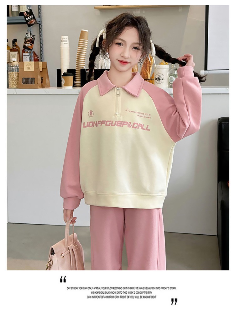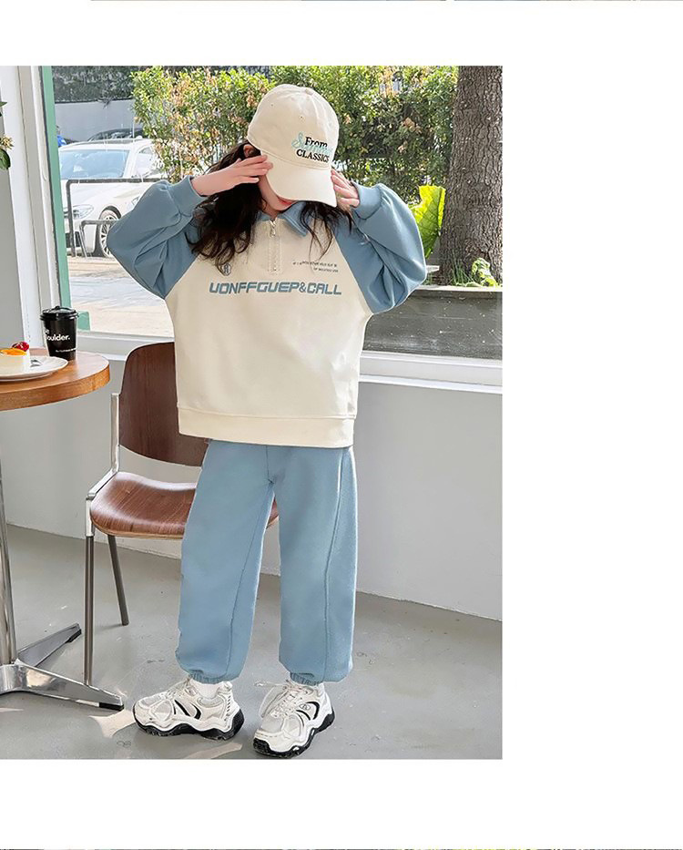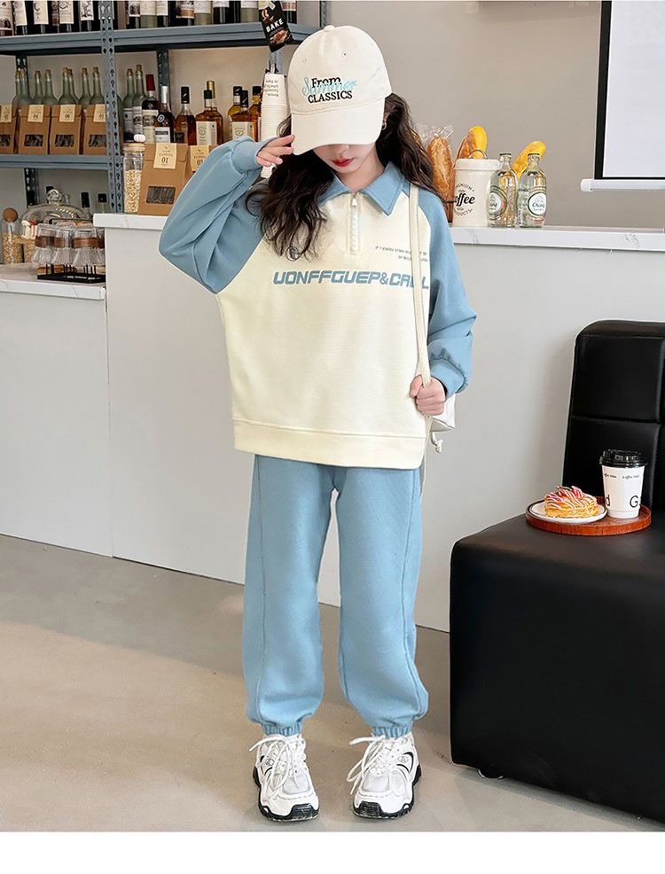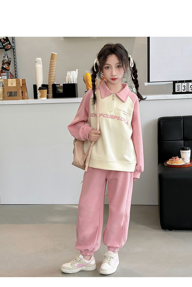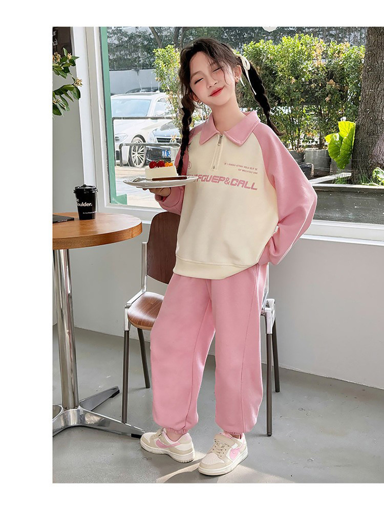 가을과 겨울 소녀 유행 스타일 옷깃 편지 느슨한 캐주얼 세트 큰 어린이 라글란 소매 땀 바지 세트스토어 가기