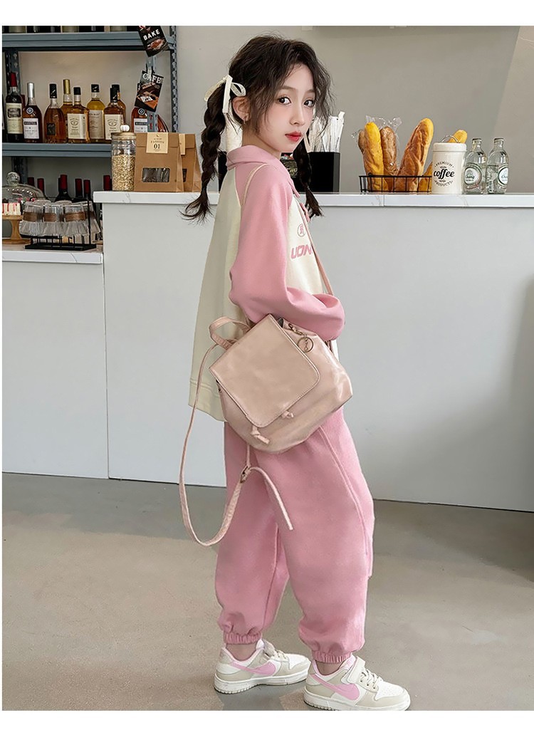 가을과 겨울 소녀 유행 스타일 옷깃 편지 느슨한 캐주얼 세트 큰 어린이 라글란 소매 땀 바지 세트