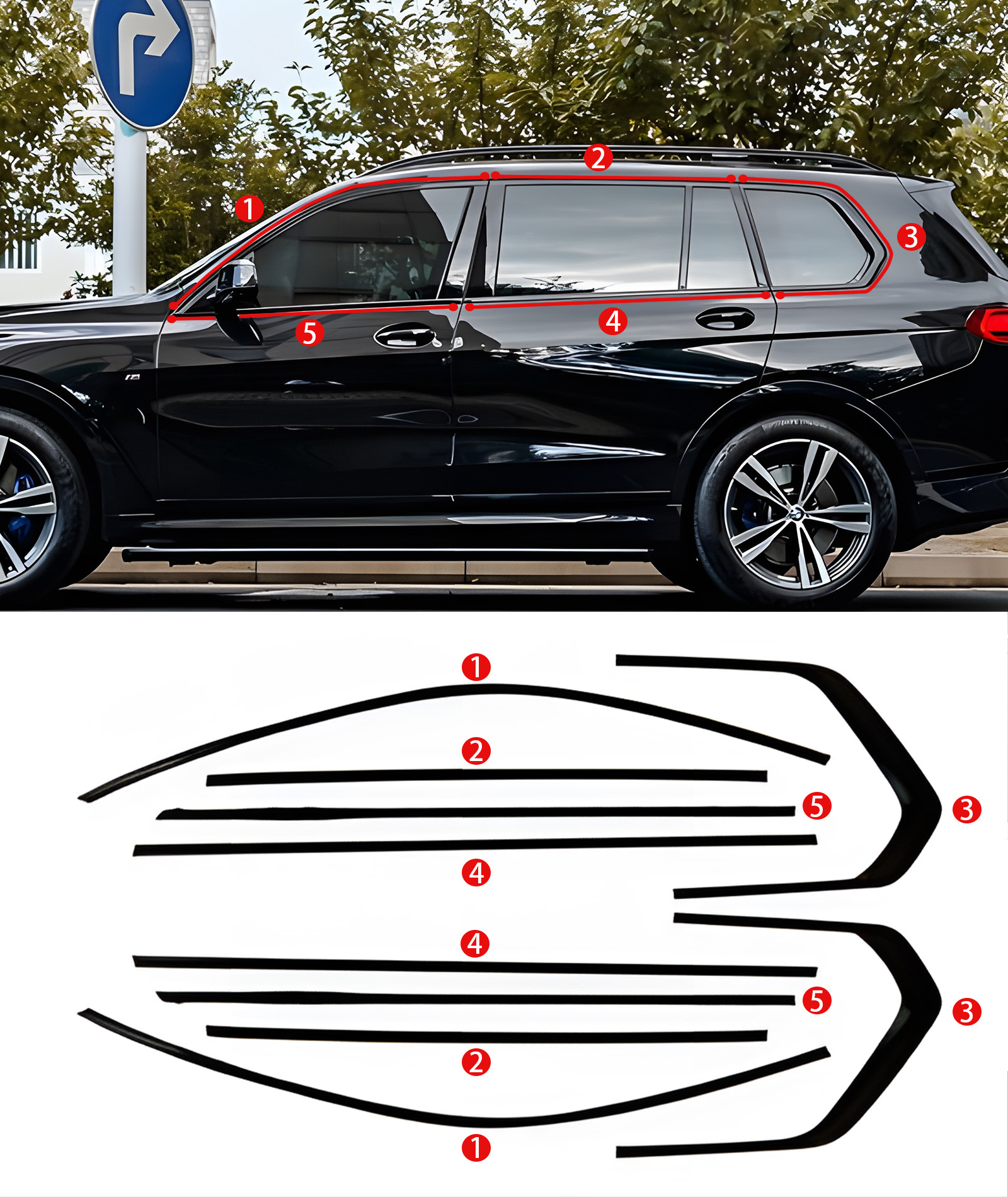 • 19-24 모델 X5L [자동차 창 트림] 블랙 티타늄 세트
