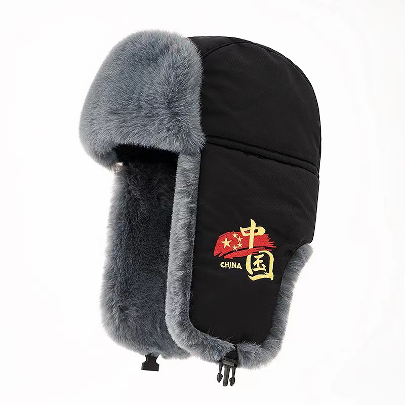 남성용 레이펑 모자, 겨울철 따뜻한 야외 라이딩 방풍 방한 모자, 자수 귀덮개, 두꺼운 남성용 면모자, 중국풍스토어 가기