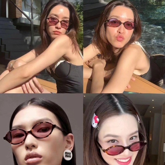 Zhang Yuanying의 하이 엔드 여성 선글라스 유럽과 미국의 레트로 하이 엔드 센스 인 타원형 작은 프레임 패션 선글라스 9073