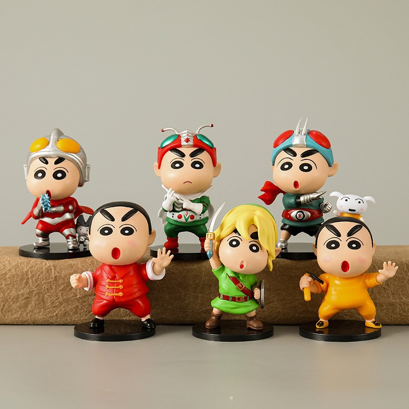 6 크레용 신짱 변장 캐릭터 마스크 젤다 쿵푸 신짱 피규어 모델 인형 장난감 장식품