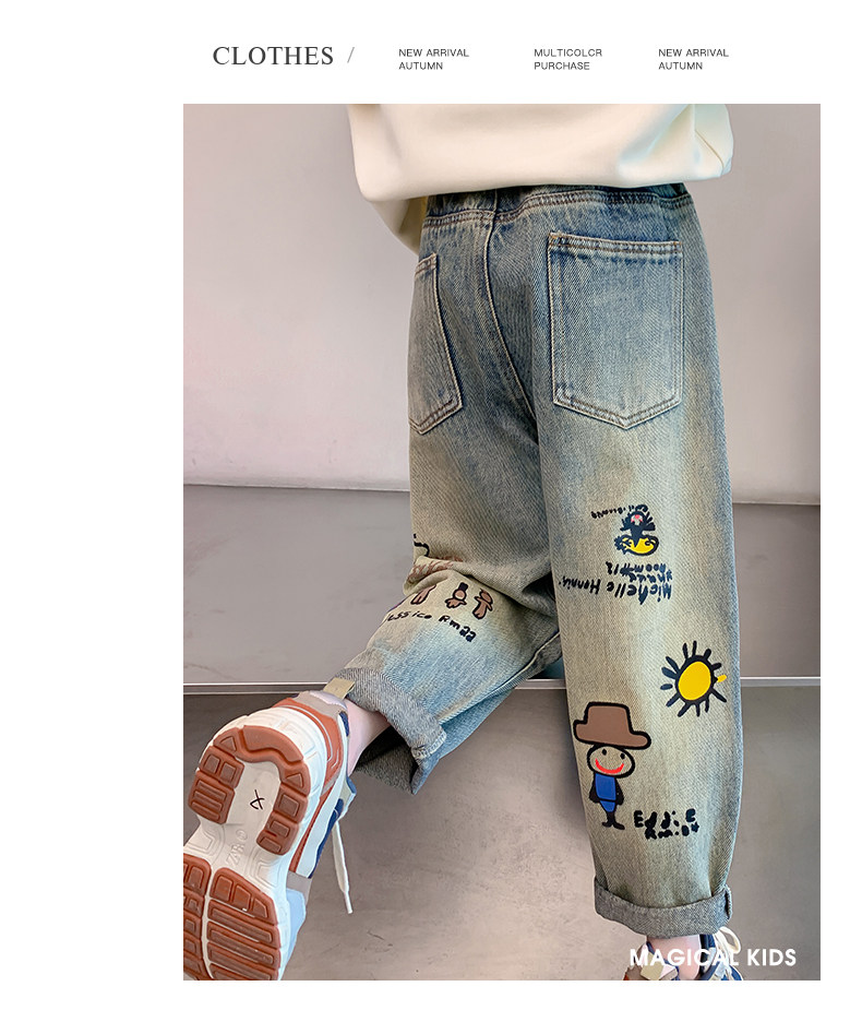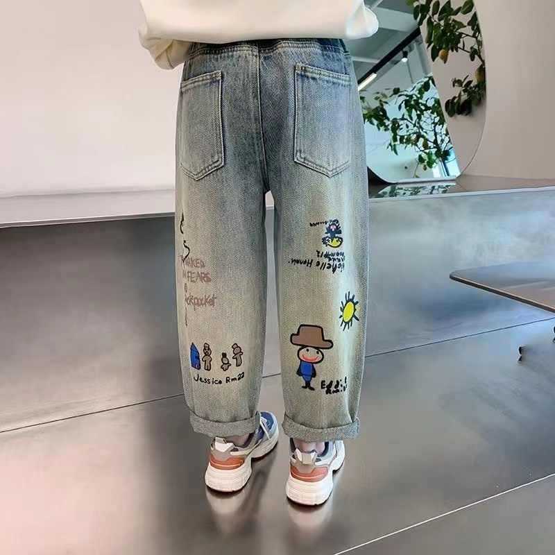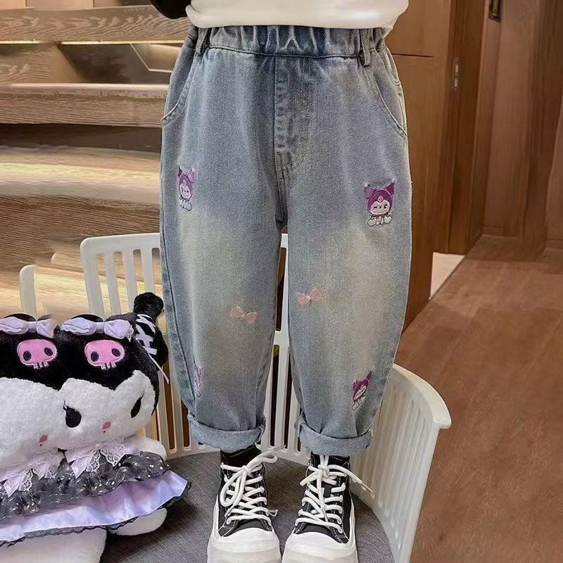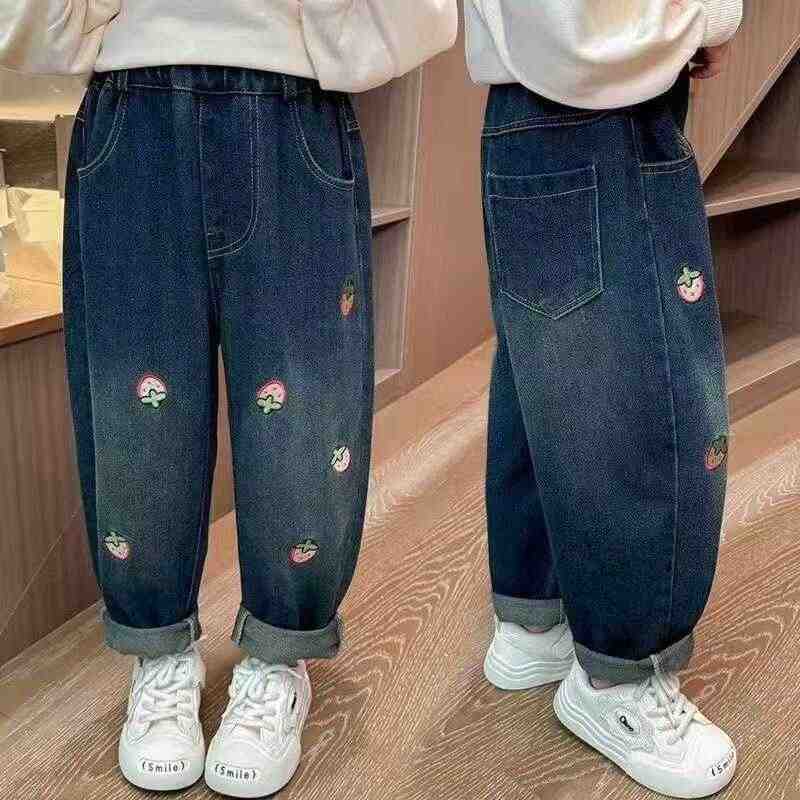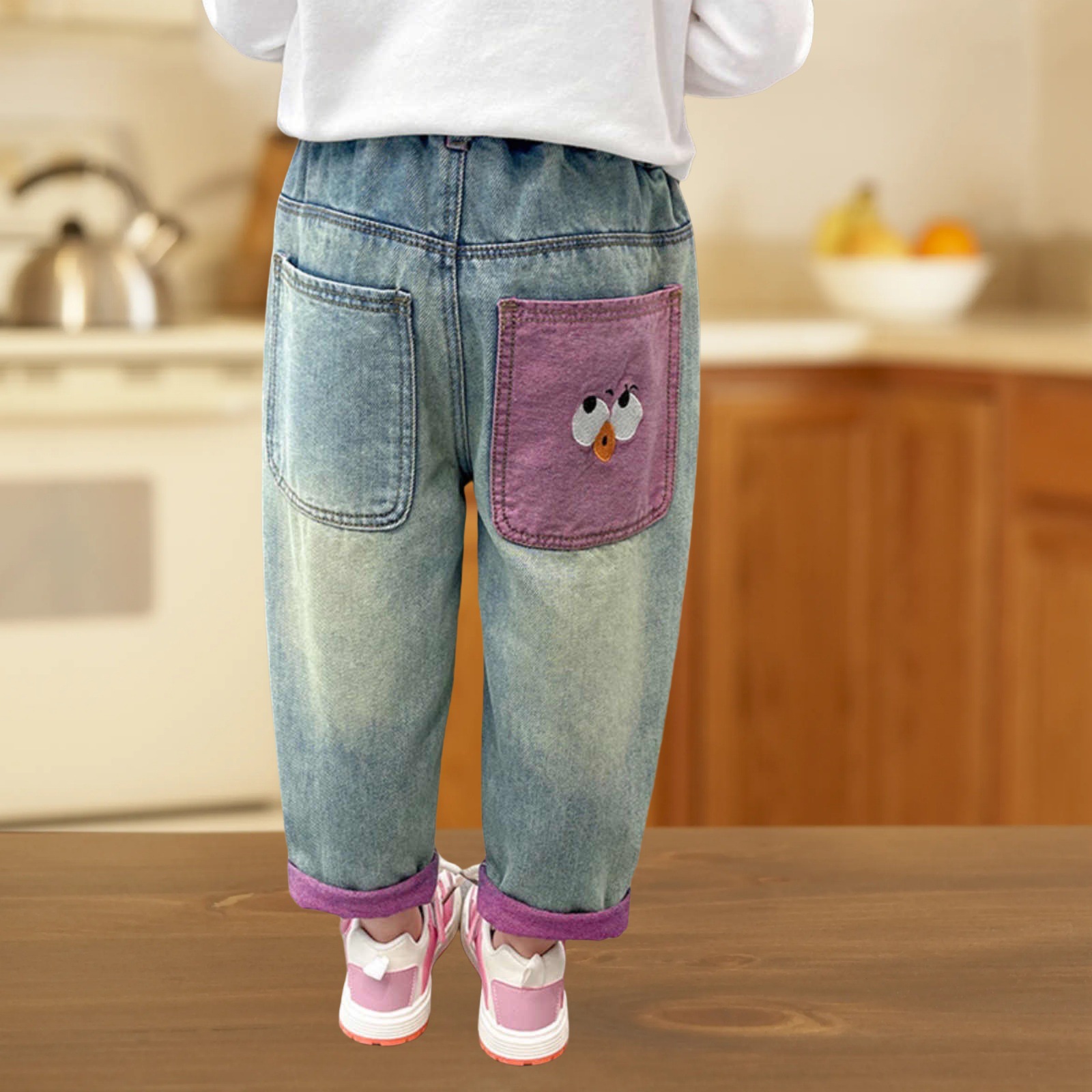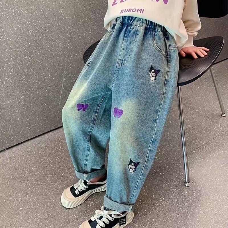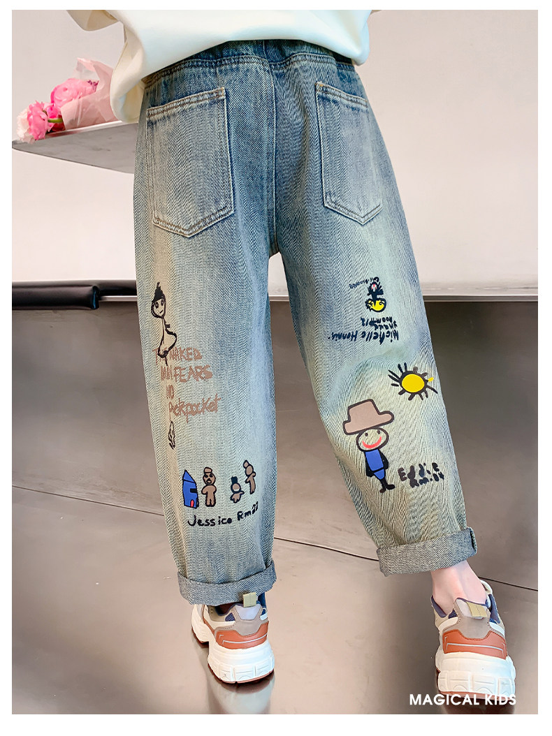 여아 청바지 봄 가을 스타일 3-12세 아동복 2024년 여아 가을 바지 만화 패턴 캐주얼 만능 팬츠스토어 가기