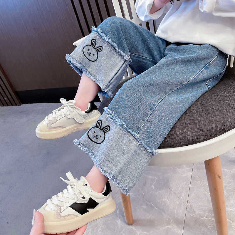 여아 청바지 봄 가을 스타일 3-12세 아동복 2024년 여아 가을 바지 만화 패턴 캐주얼 만능 팬츠