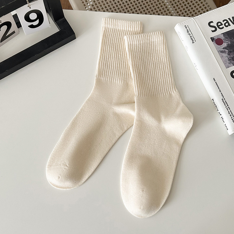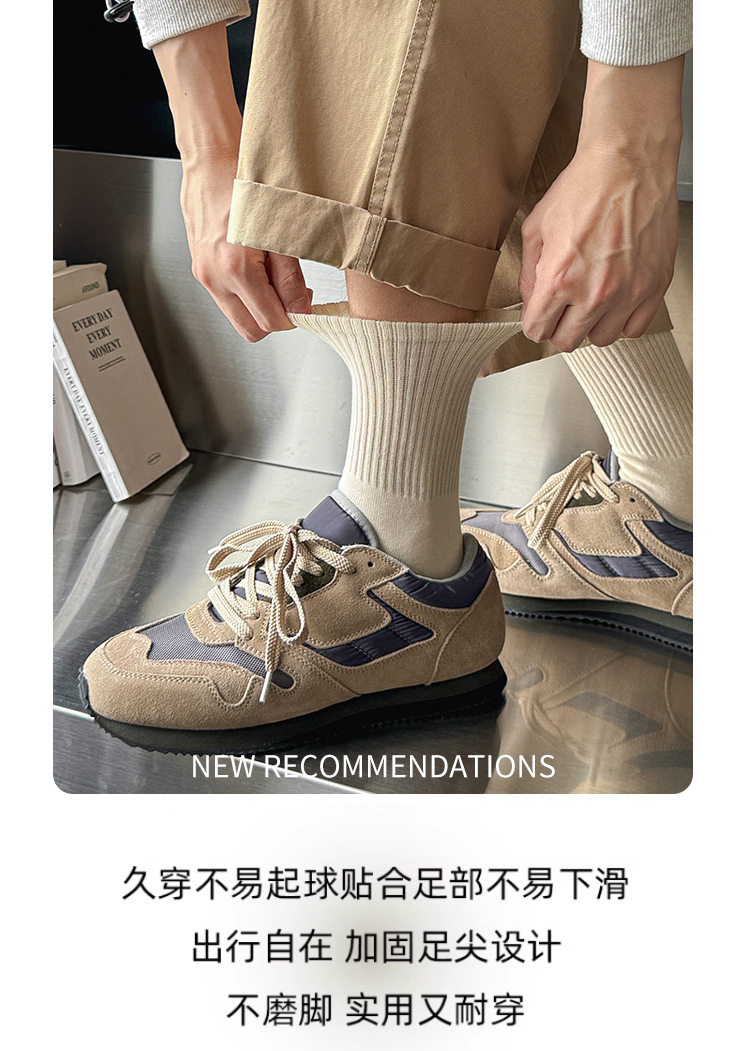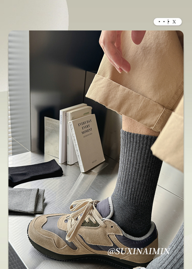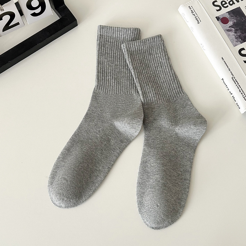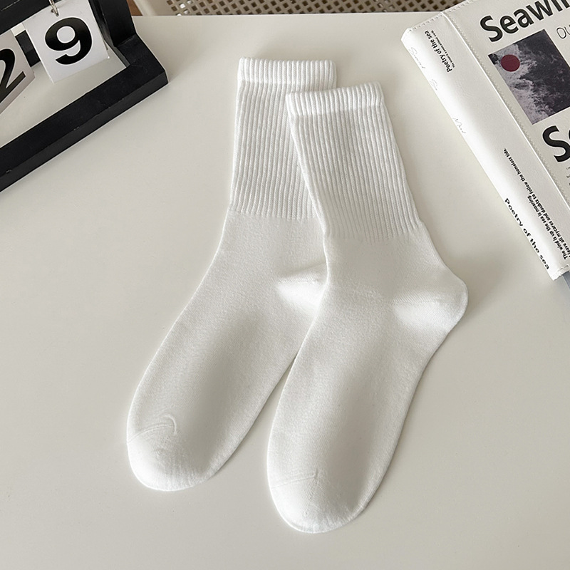 Suxinaimin 양말 남자의 가을과 겨울 Ins 유행 일본 스타일 모든 경기 간단한 솔리드 컬러 코튼 흡수 중간 길이의 스포츠 양말
