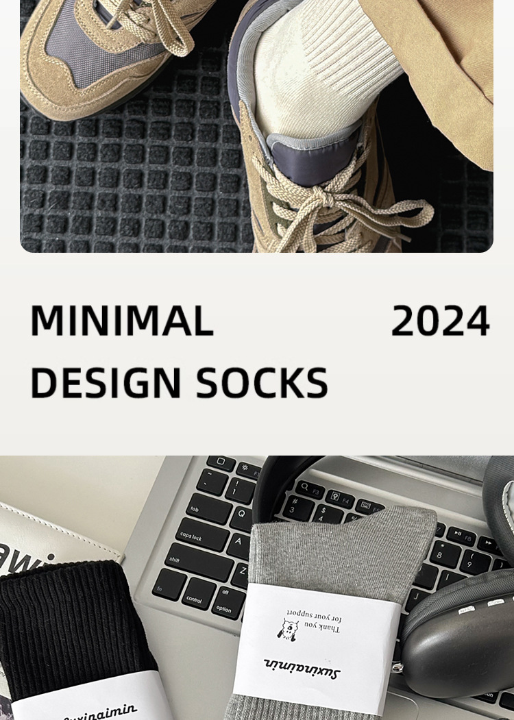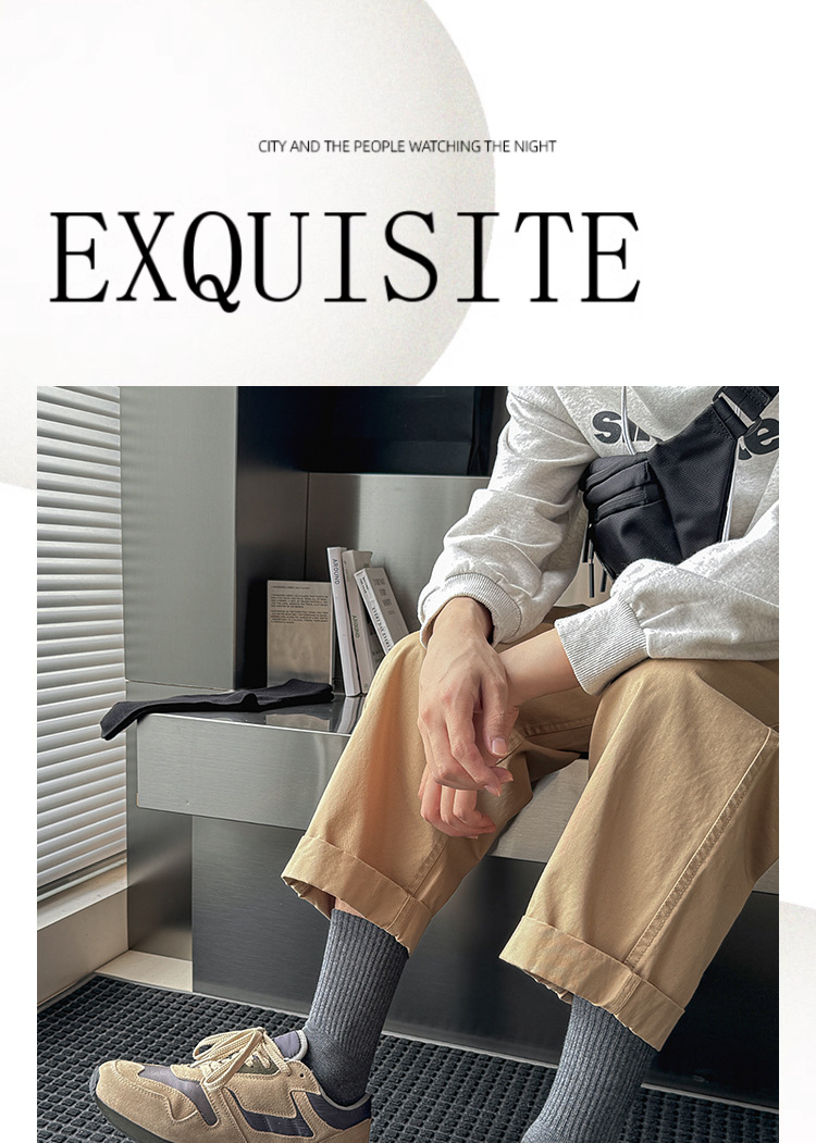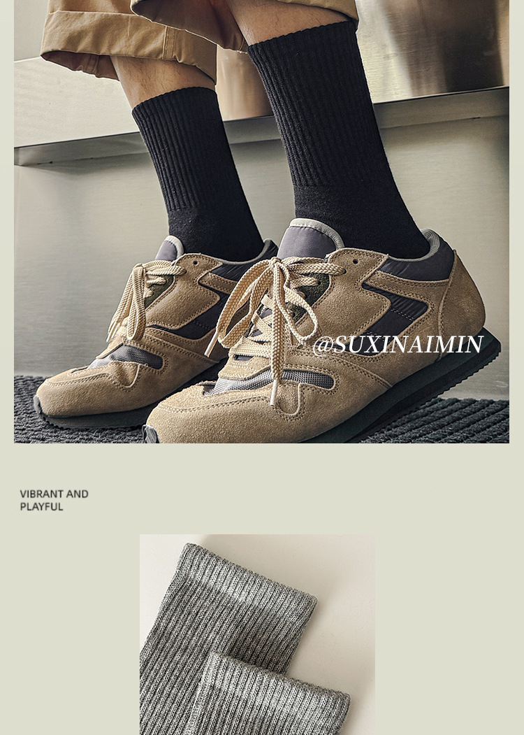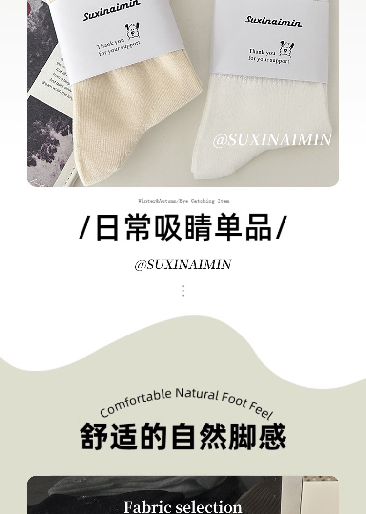 Suxinaimin 양말 남자의 가을과 겨울 Ins 유행 일본 스타일 모든 경기 간단한 솔리드 컬러 코튼 흡수 중간 길이의 스포츠 양말