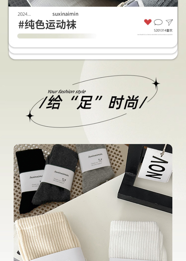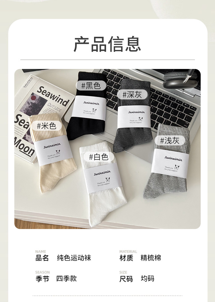 Suxinaimin 양말 남자의 가을과 겨울 Ins 유행 일본 스타일 모든 경기 간단한 솔리드 컬러 코튼 흡수 중간 길이의 스포츠 양말스토어 가기
