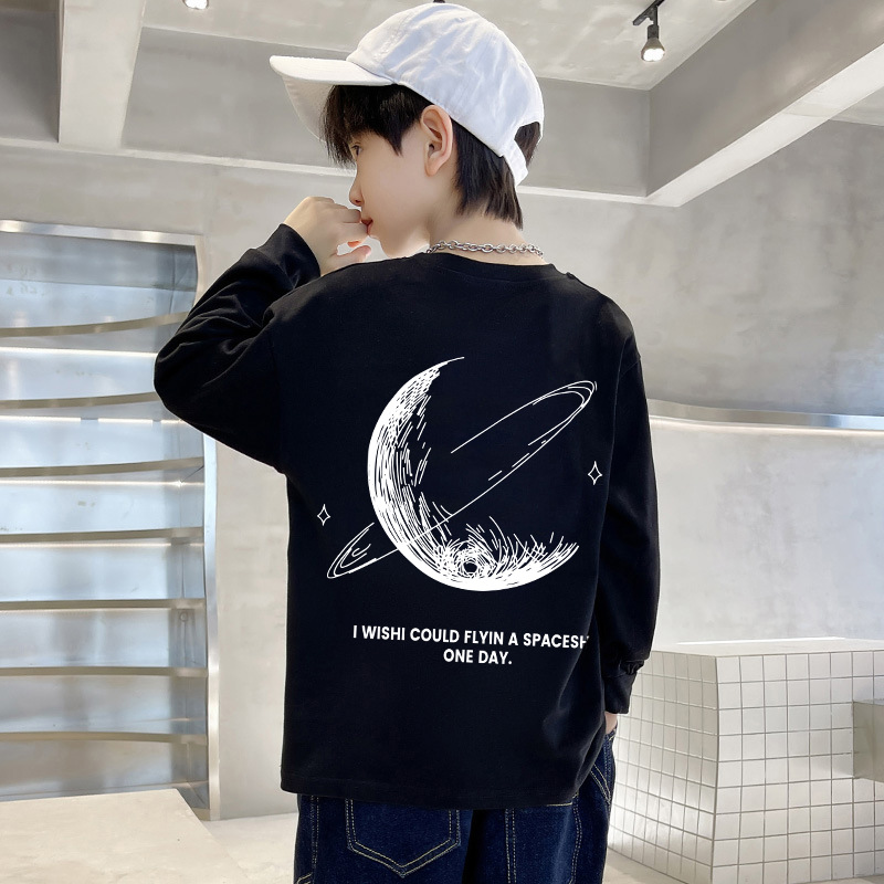 24 개의 새로운 면 남성 티셔츠 긴 소매 봄과 가을 어린이 중 · 빅 보이 톱 한국어스토어 가기
