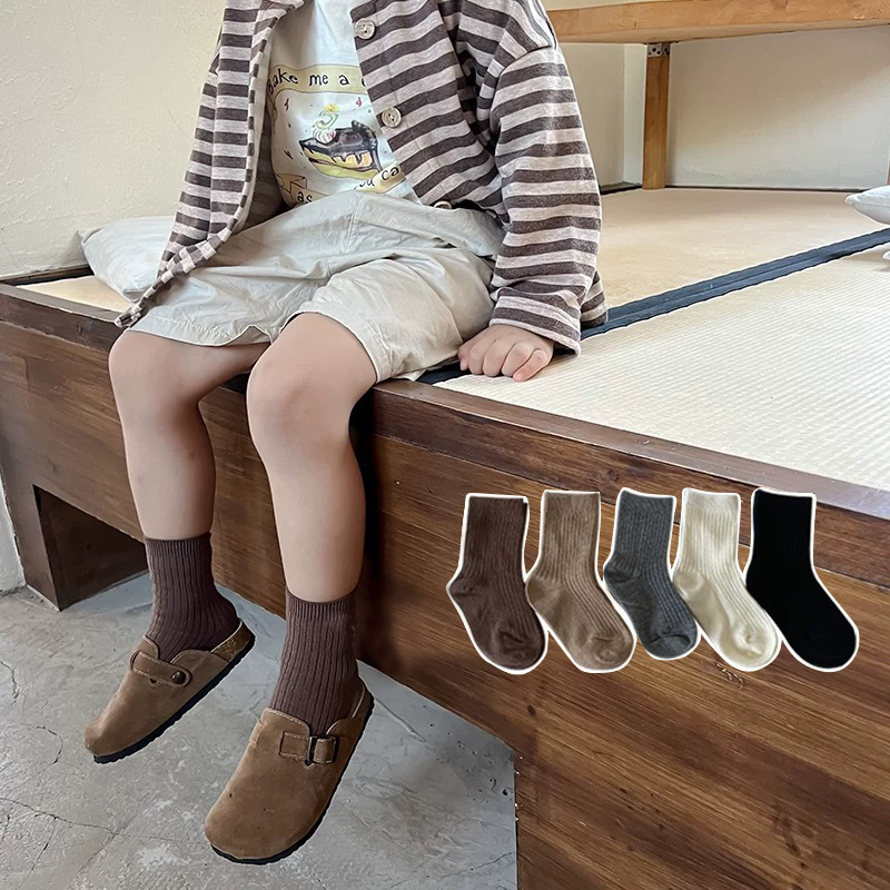 어린이 양말 가을 뉴 다크 브라운 모리 솔리드 컬러 코튼 양말 유행 수직 따뜻한 남자의 바람 미드 튜브 양말