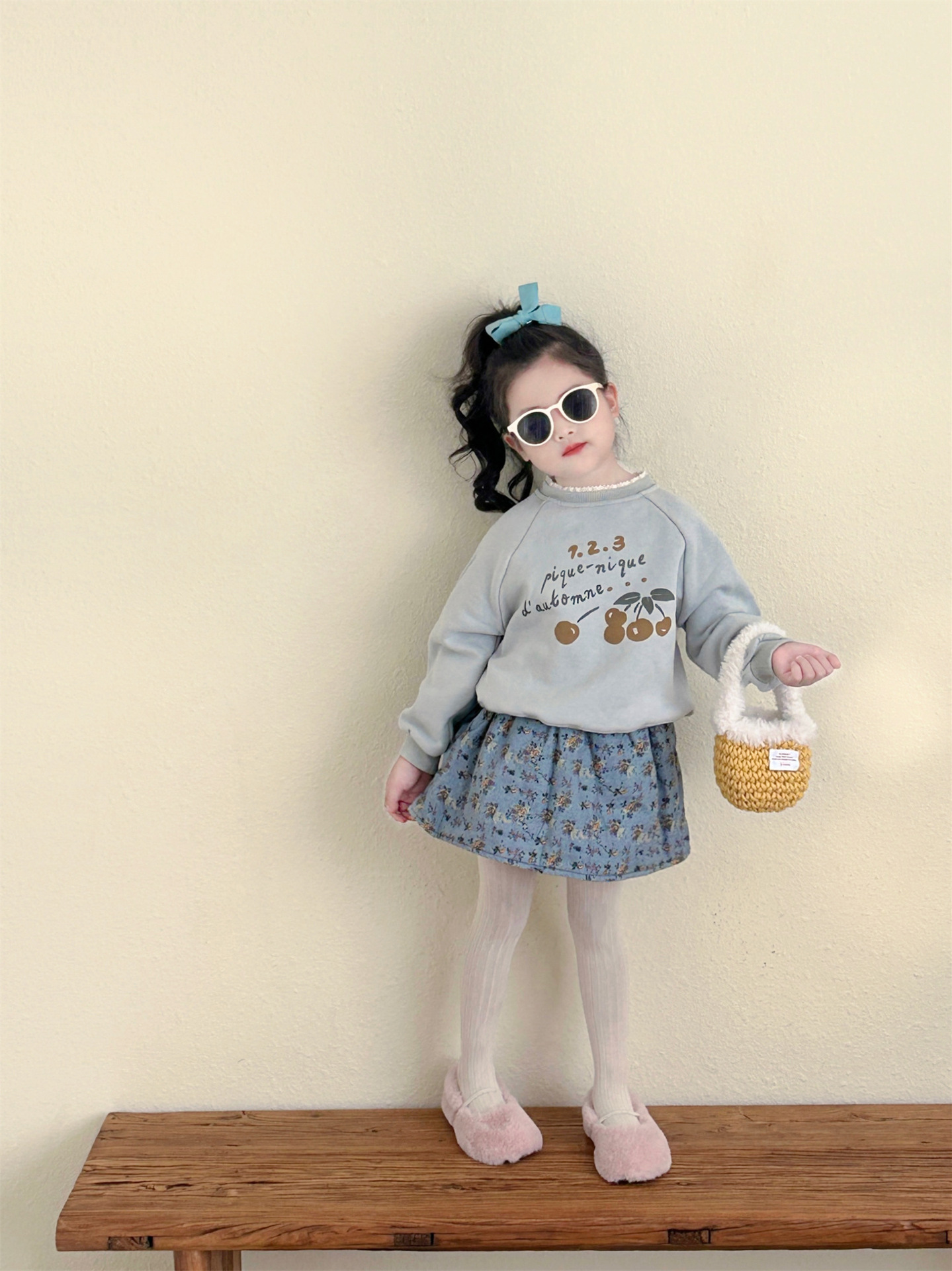 2024 가을과 겨울 어린이 의류 새로운 소녀 꽃 코튼 스커트 한국식 소녀의 올 매치 코튼 스커트스토어 가기