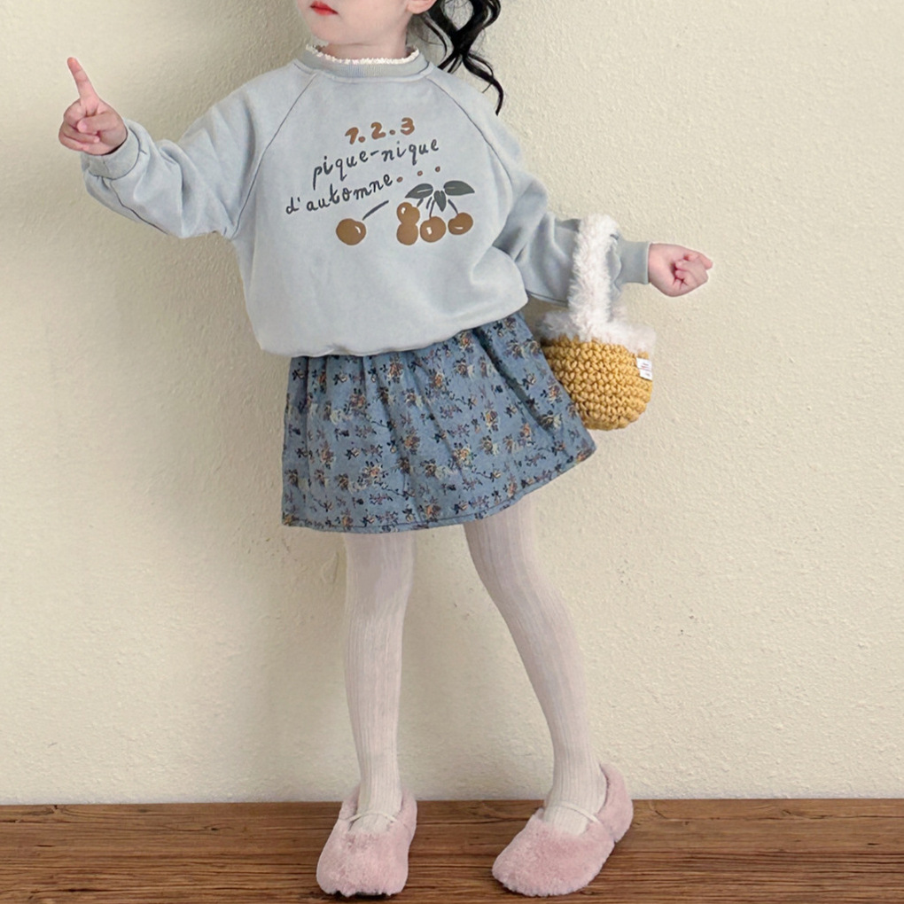 2024 가을과 겨울 어린이 의류 새로운 소녀 꽃 코튼 스커트 한국식 소녀의 올 매치 코튼 스커트