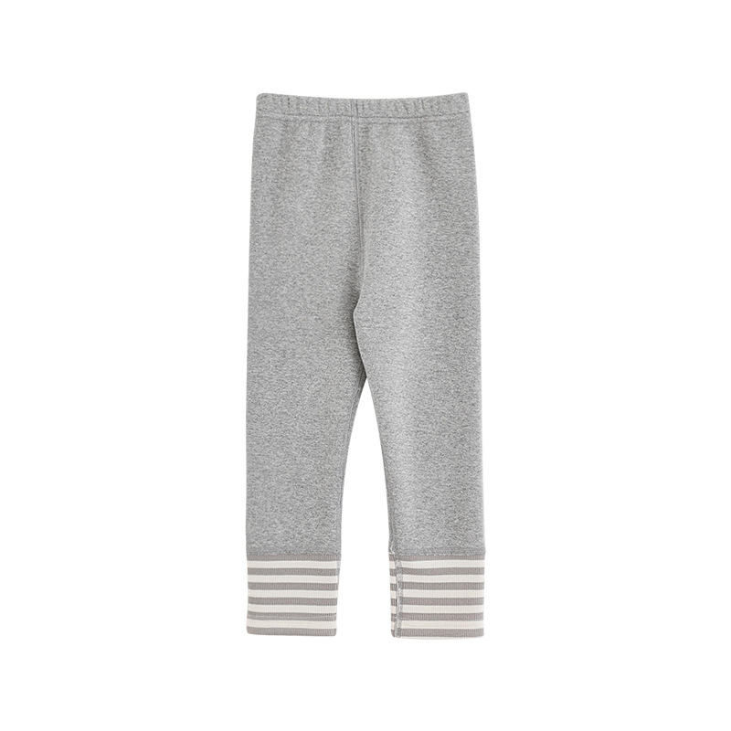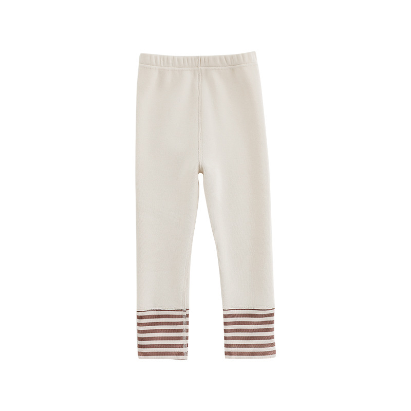 Wuri Boo Girl의 발 입 바느질 줄무늬 레깅스 슬림 핏 겨울 경계 귀여운 기모 두꺼운 캐주얼 바지