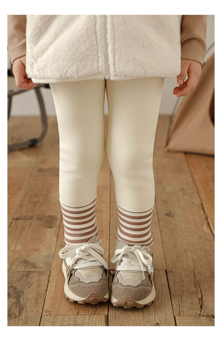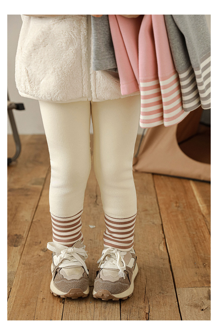 Wuri Boo Girl의 발 입 바느질 줄무늬 레깅스 슬림 핏 겨울 경계 귀여운 기모 두꺼운 캐주얼 바지스토어 가기