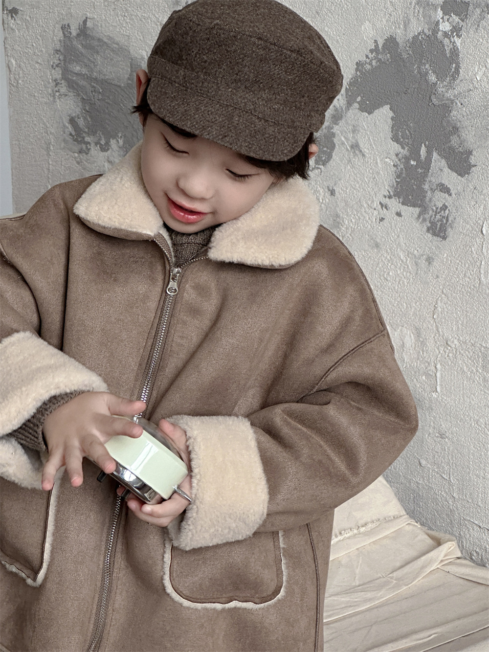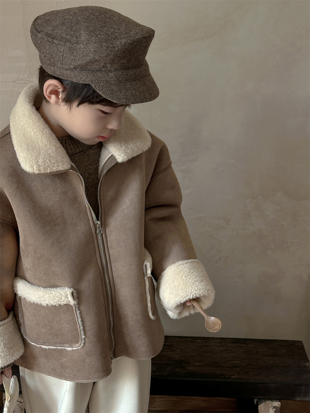 치즈와 야옹 어린이 스웨터 니트웨어 소년베이스 셔츠 2024 겨울 새 소년 내부 두꺼운 스웨터