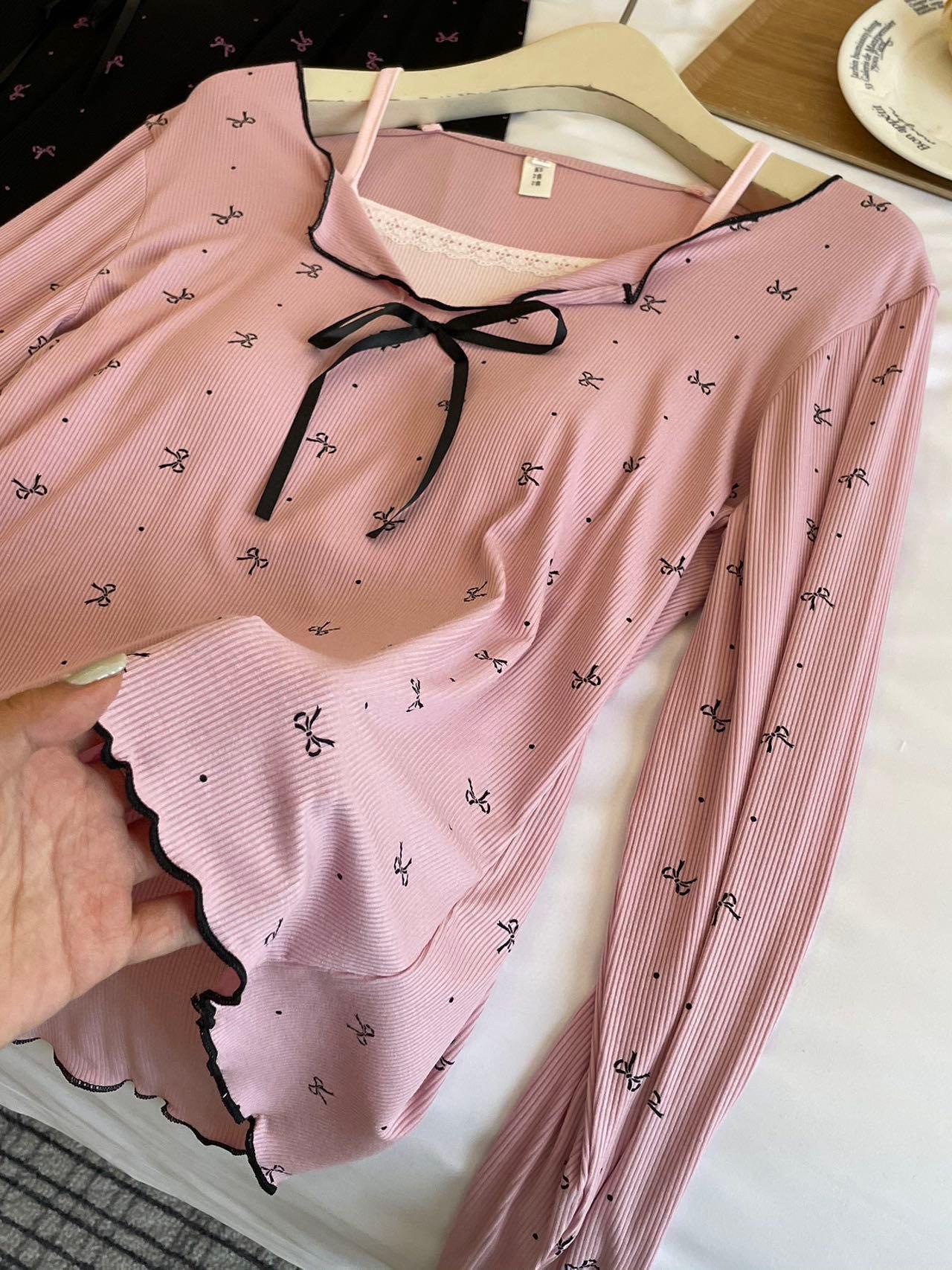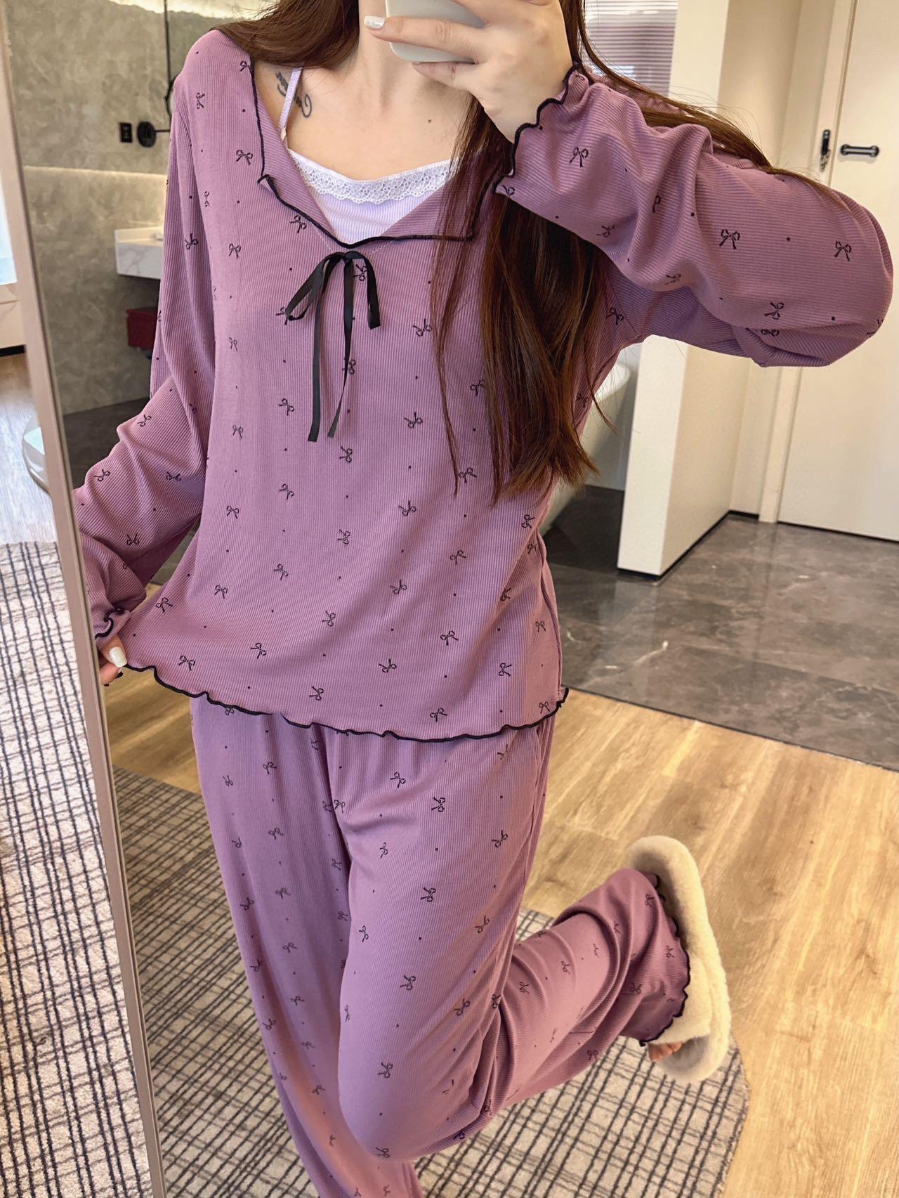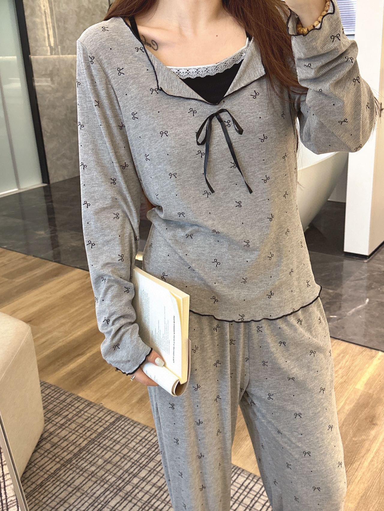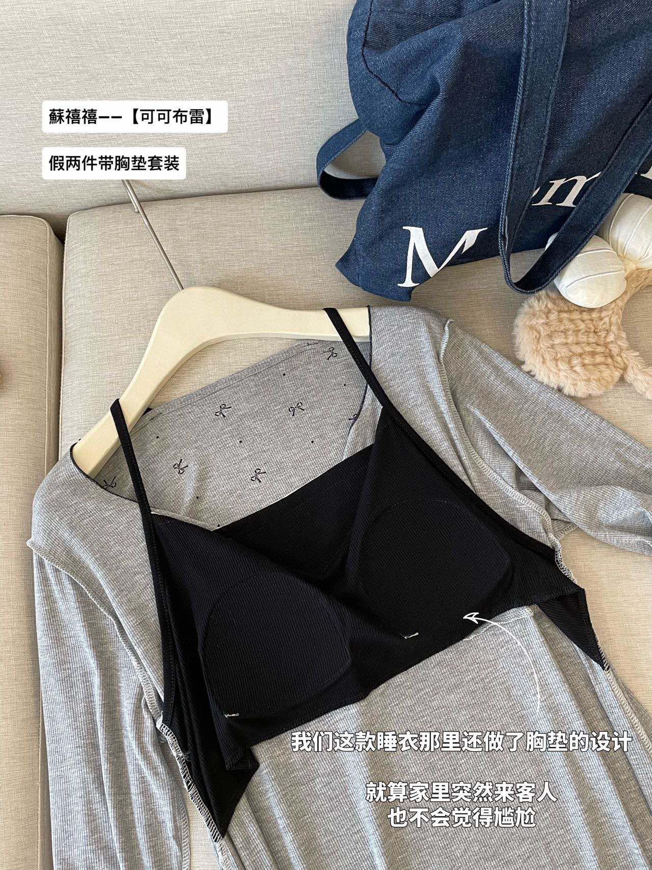 Su Xixi Coco Bray 가짜 양피스 세트 여자 한국 스타일 모달 긴팔 바지 파자마 홈 옷스토어 가기
