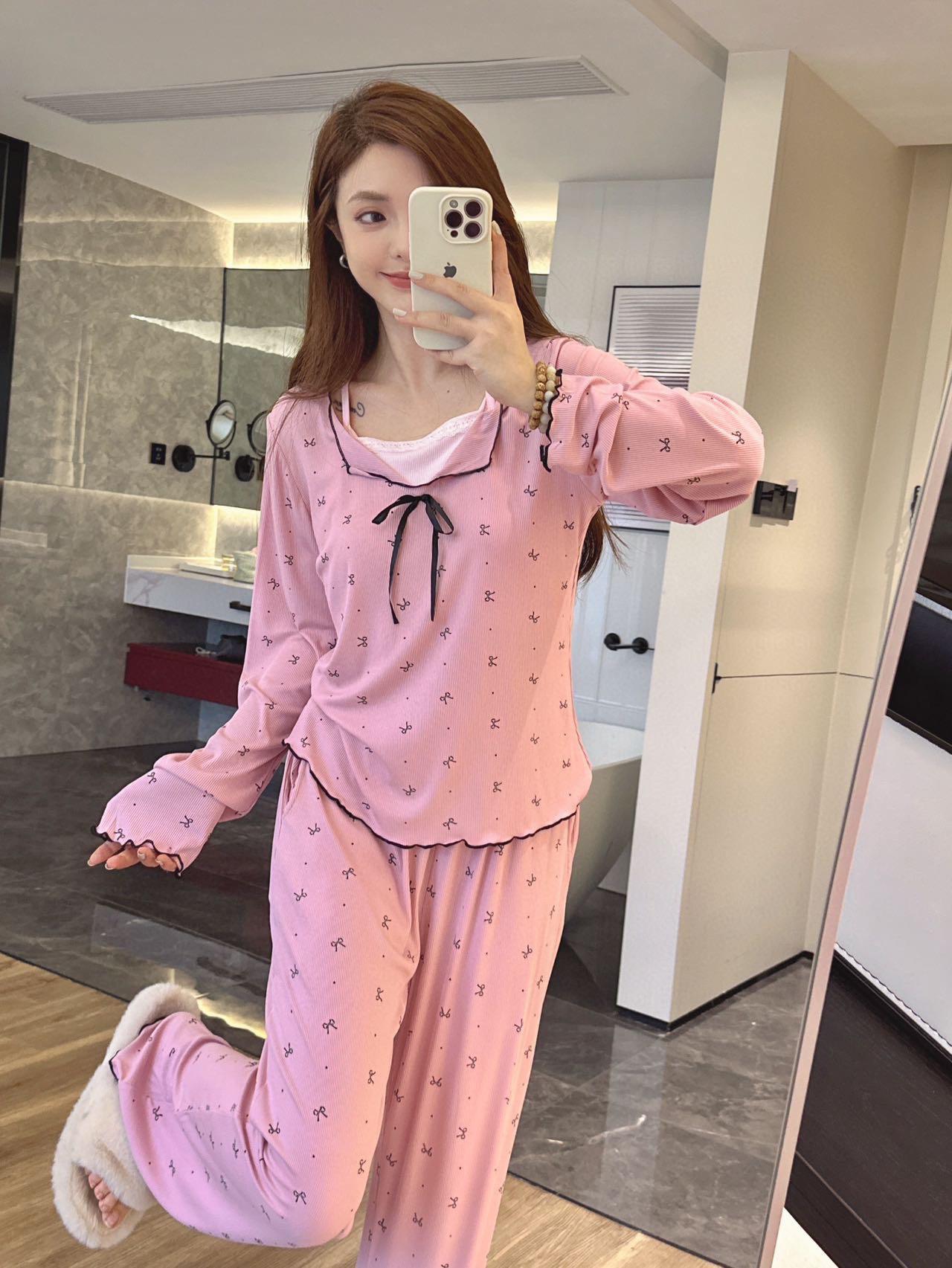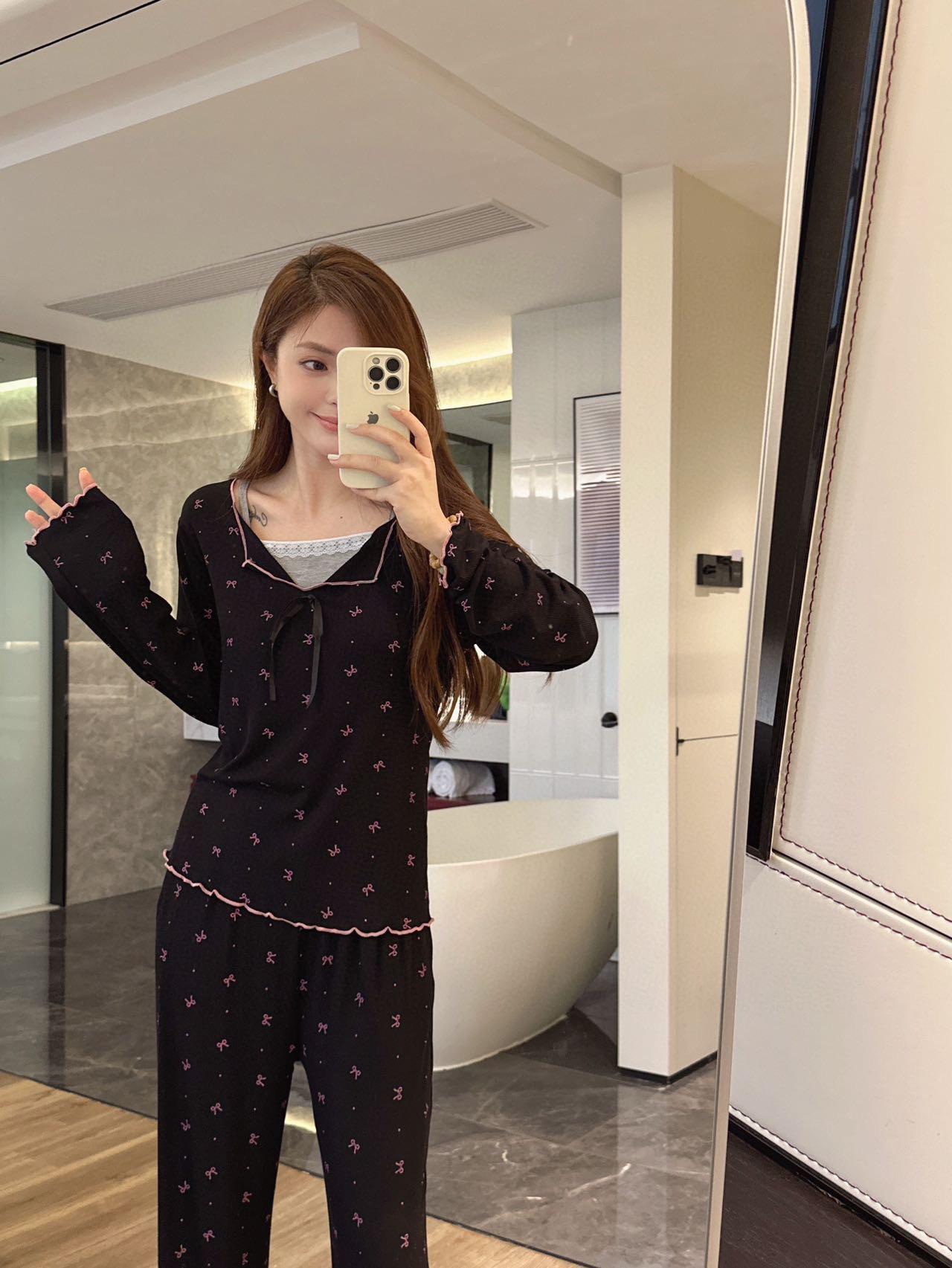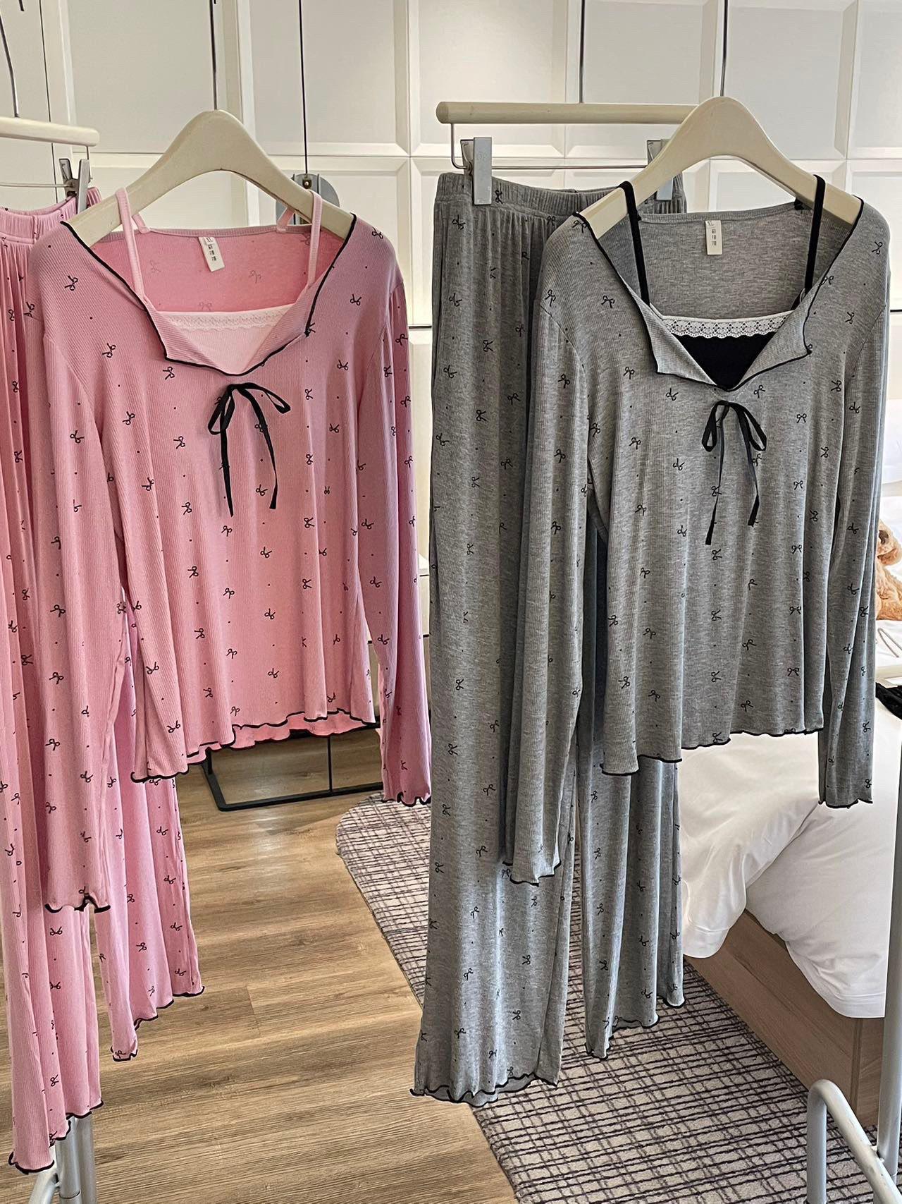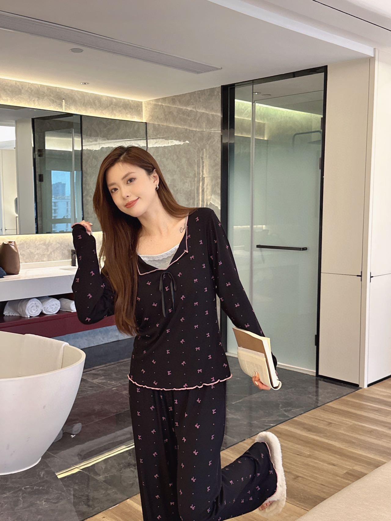 Su Xixi Coco Bray 가짜 양피스 세트 여자 한국 스타일 모달 긴팔 바지 파자마 홈 옷