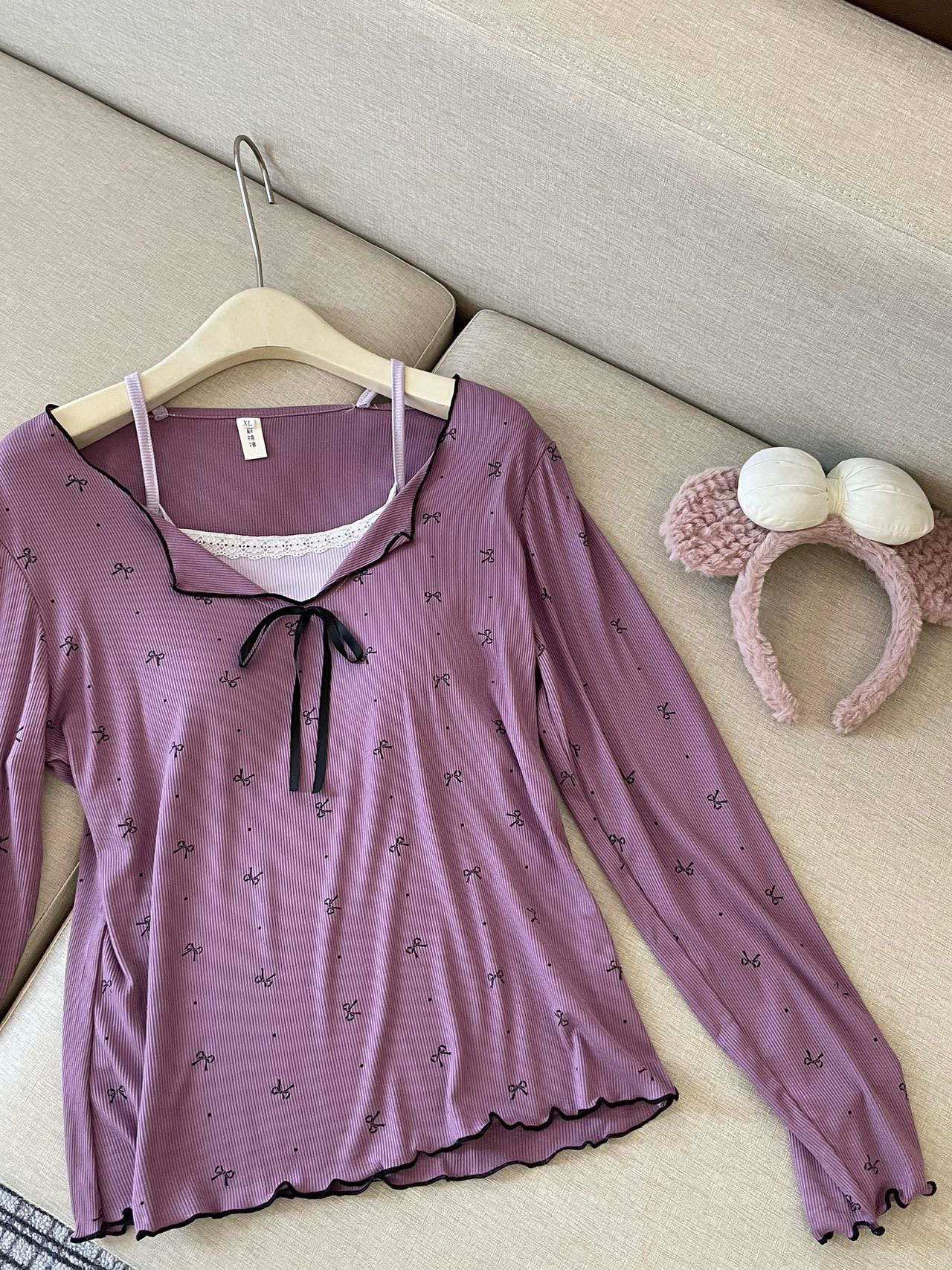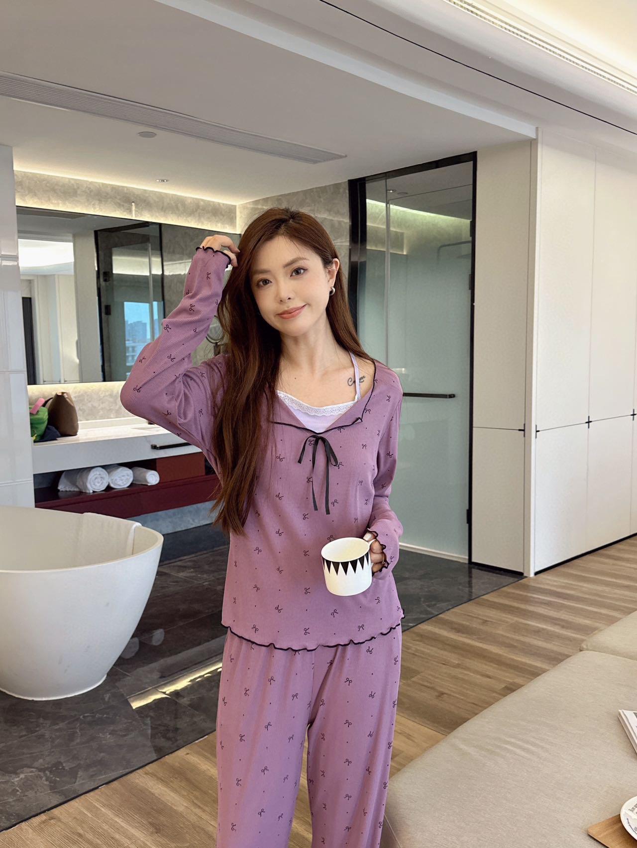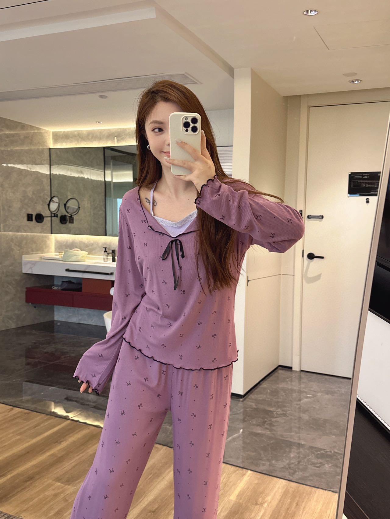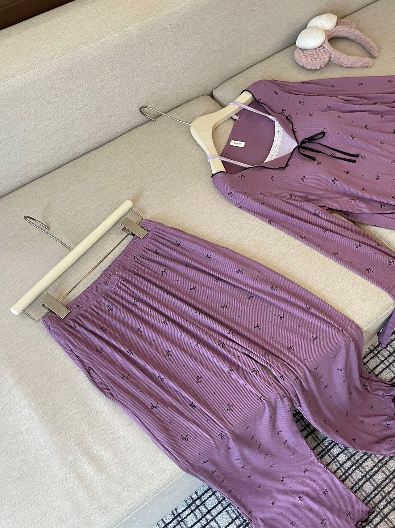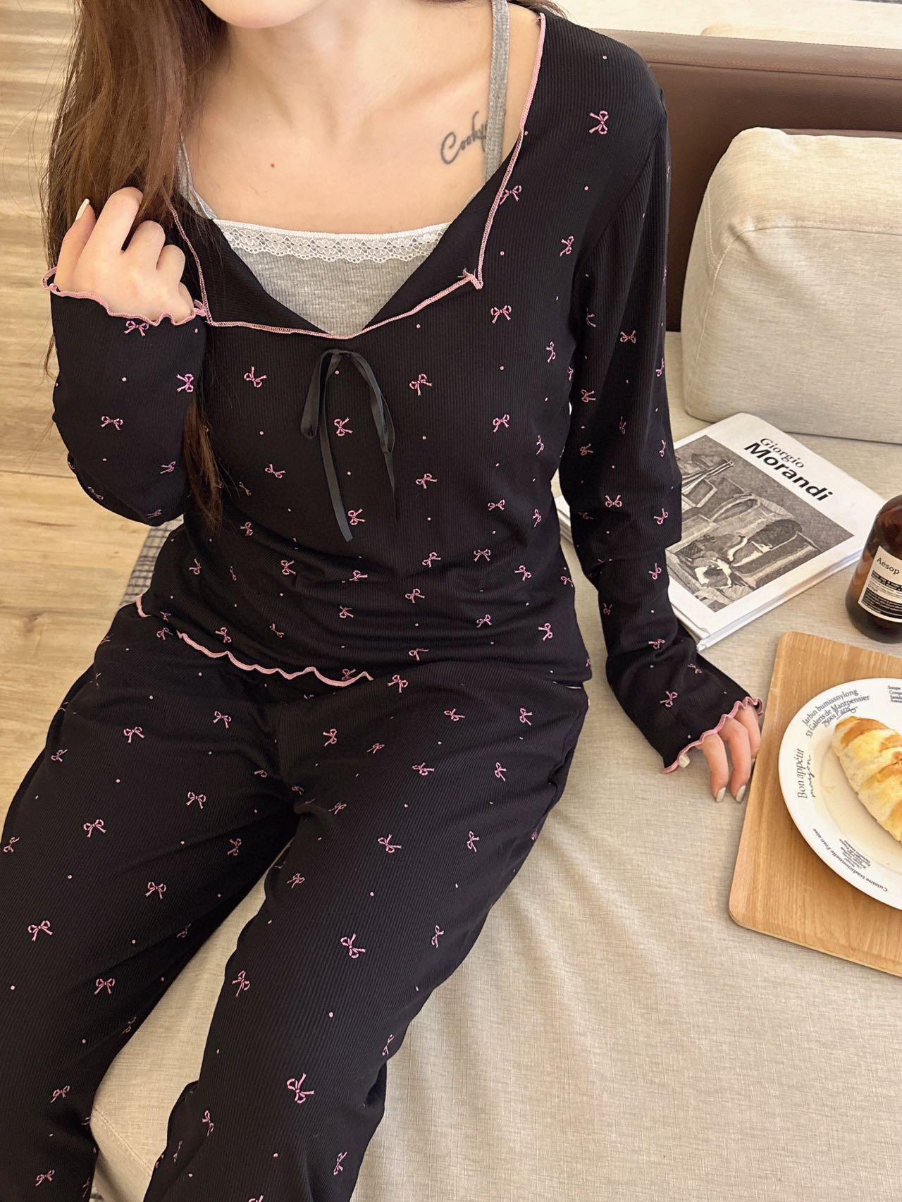 Su Xixi Coco Bray 가짜 양피스 세트 여자 한국 스타일 모달 긴팔 바지 파자마 홈 옷