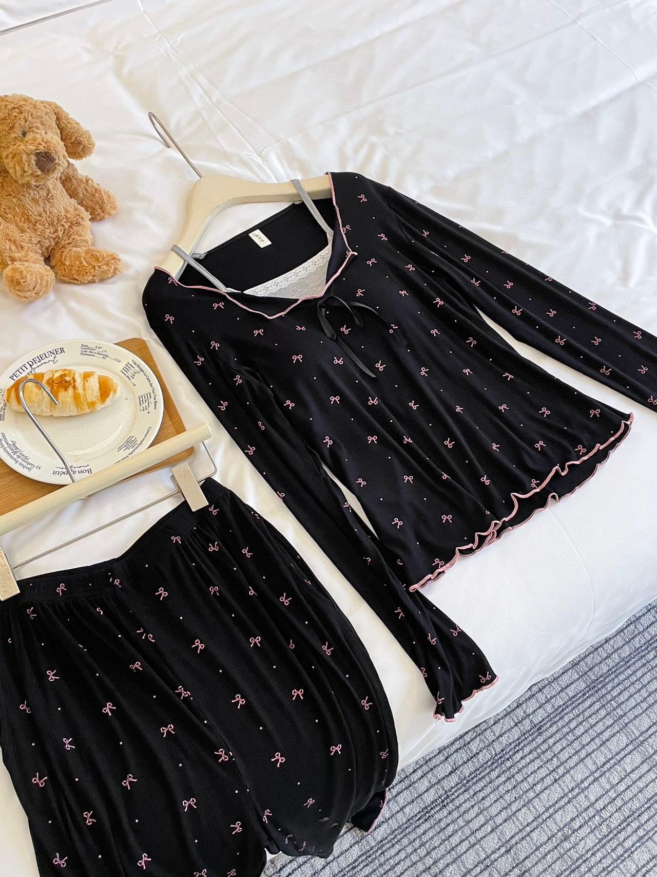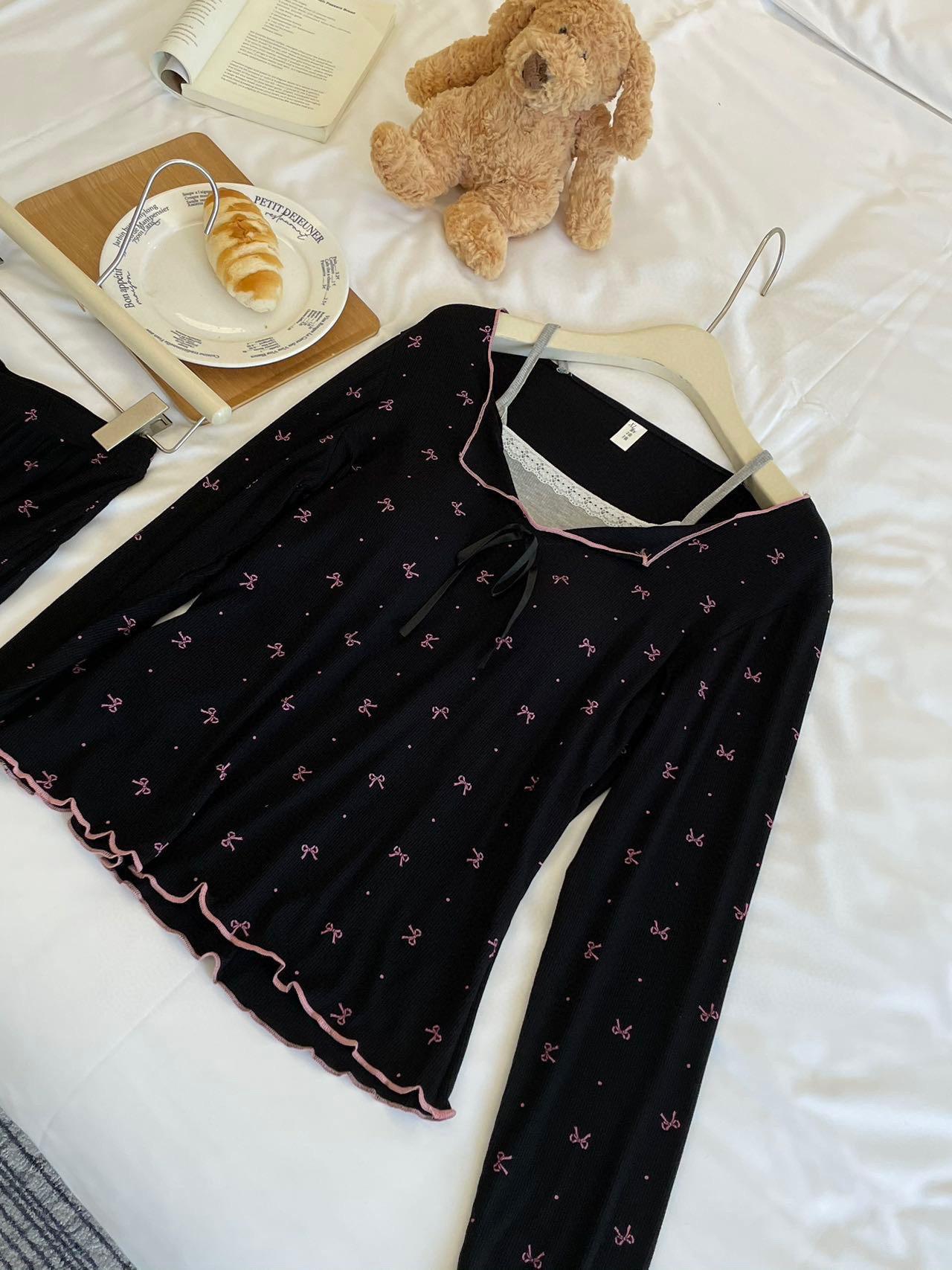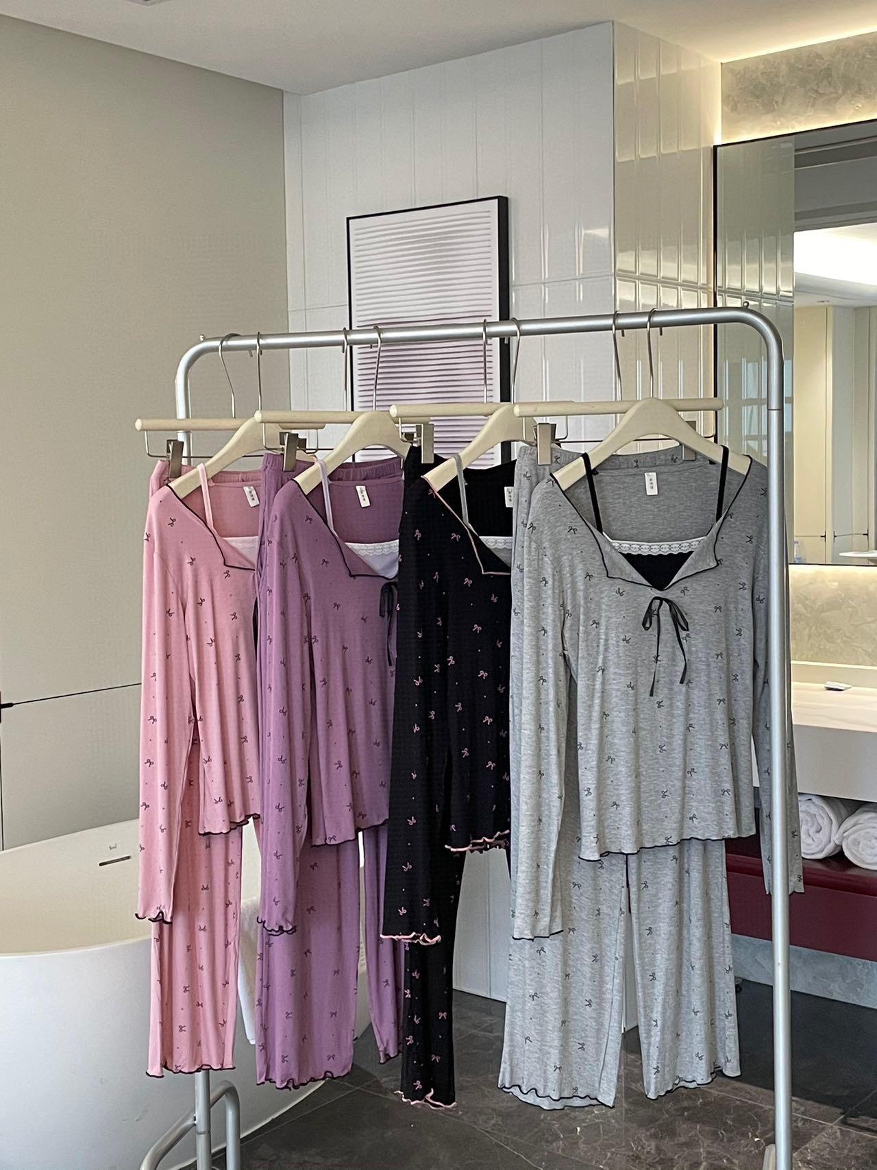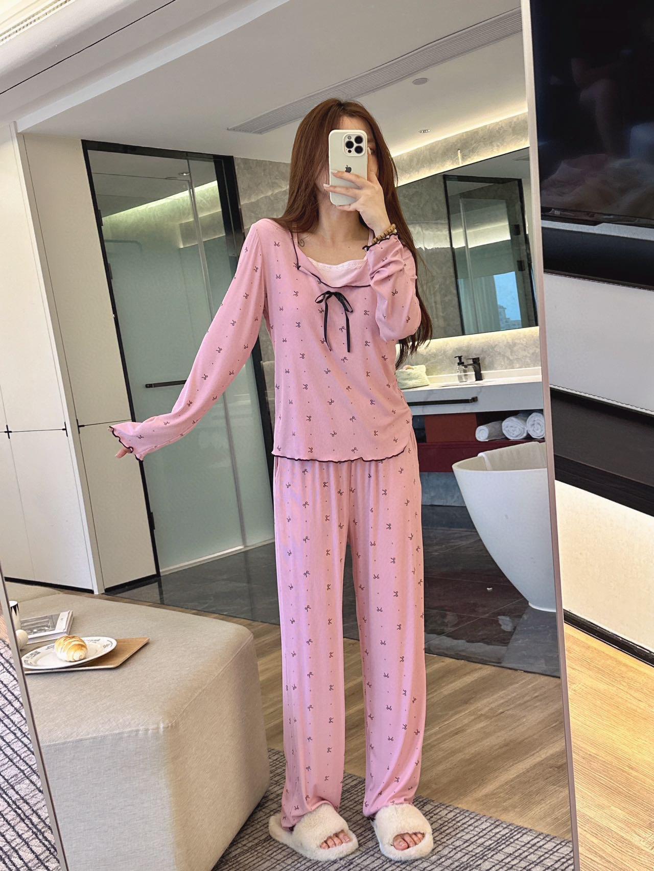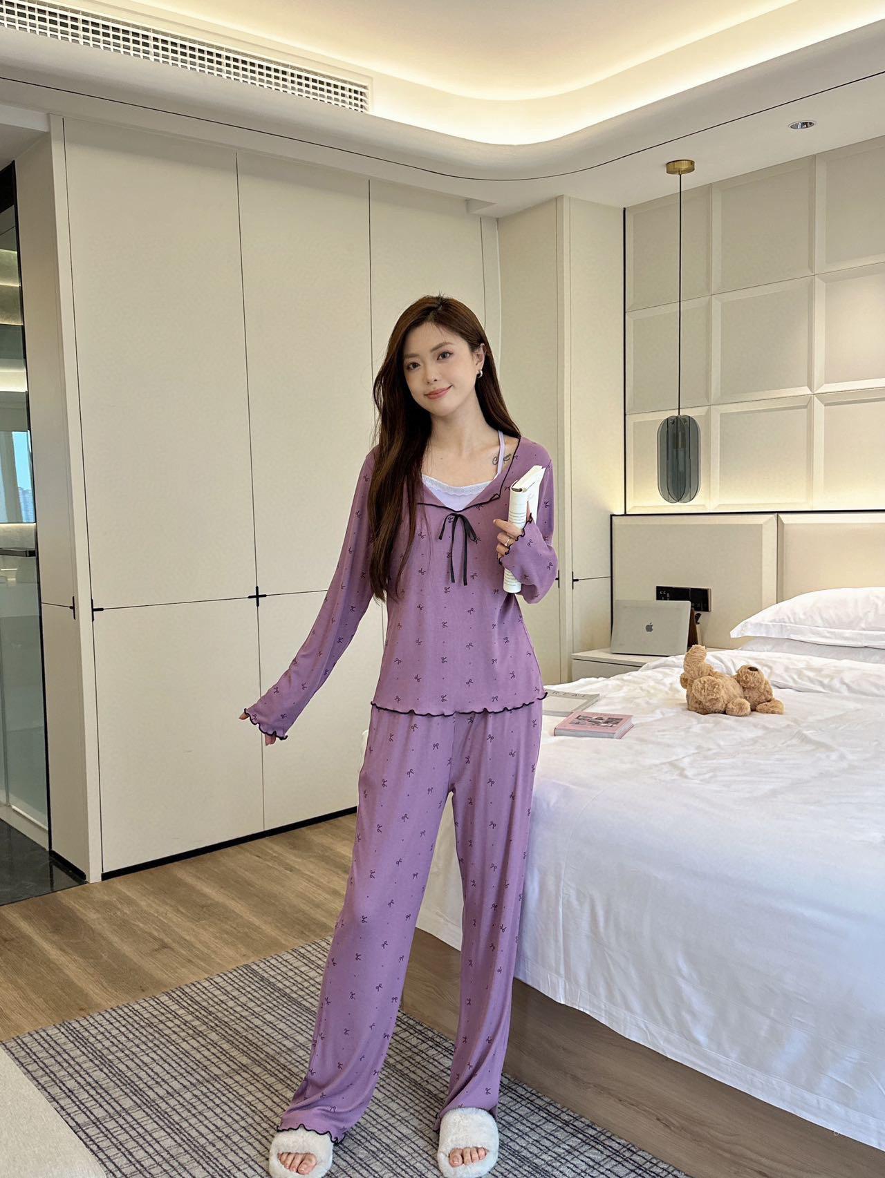 Su Xixi Coco Bray 가짜 양피스 세트 여자 한국 스타일 모달 긴팔 바지 파자마 홈 옷