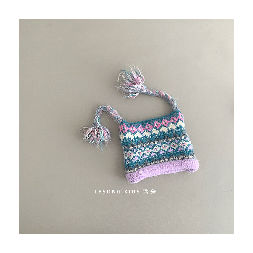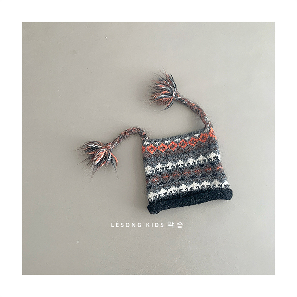 어린이 모자 독특한 꼰 자카드 패턴 니트 울 모자 컬링 레트로 따뜻한 복고풍 재미있는 겨울 모자