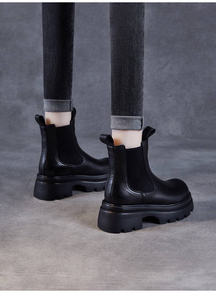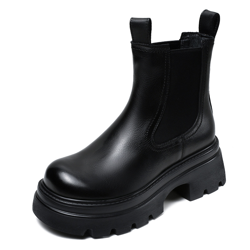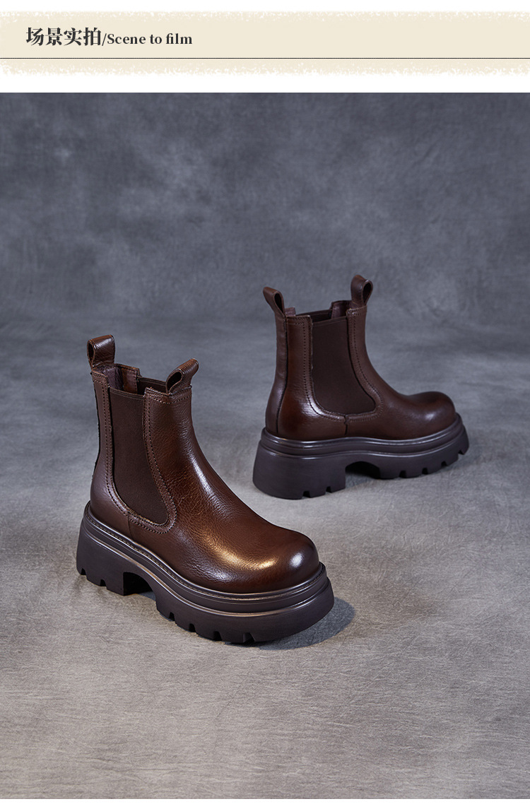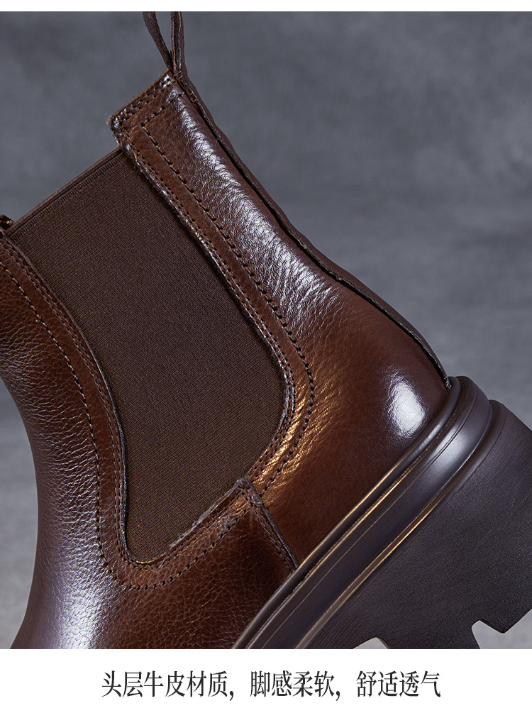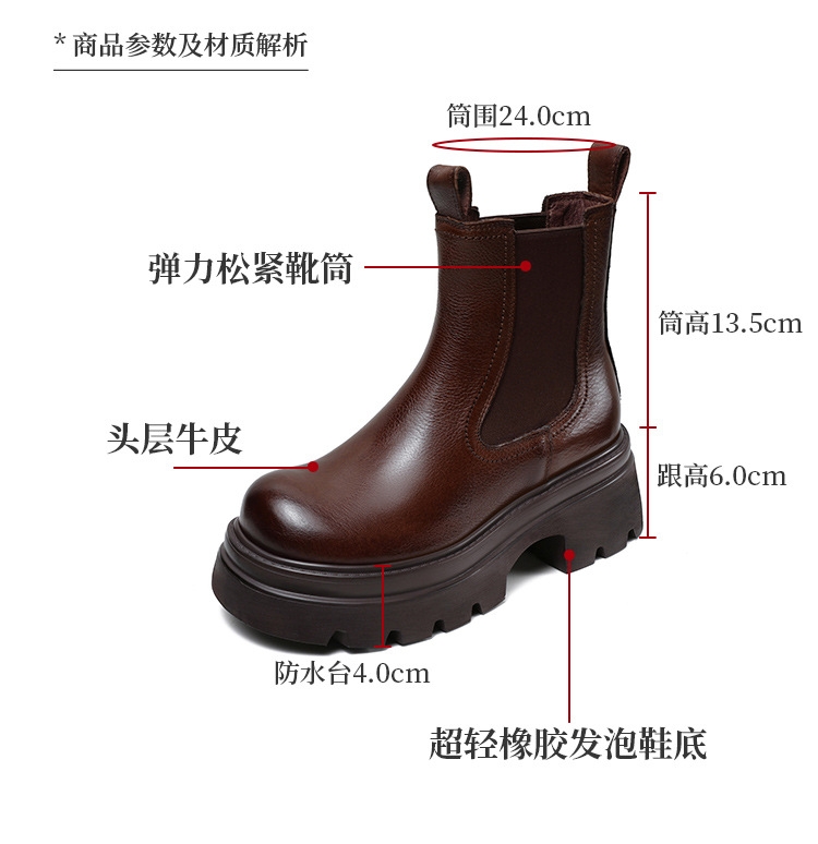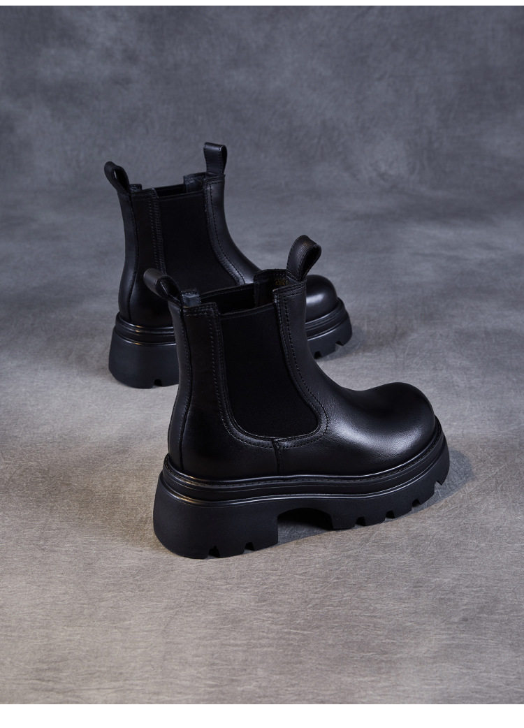 정품 가죽 플랫폼 라이트 럭셔리 마틴 부츠 여성 2024 가을 및 겨울 영국 Maillard Chelsea 부츠 높이 증가 연기 중간 부츠스토어 가기