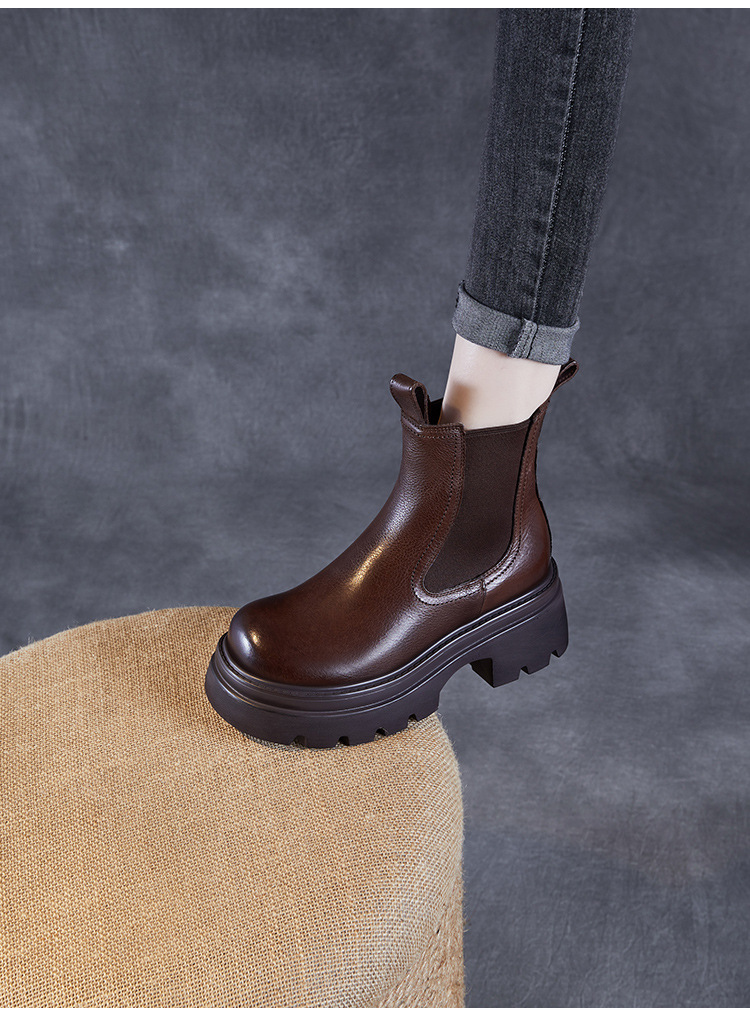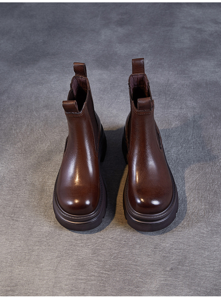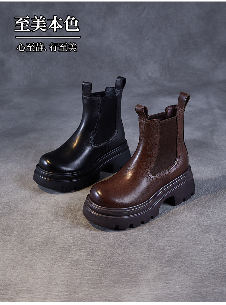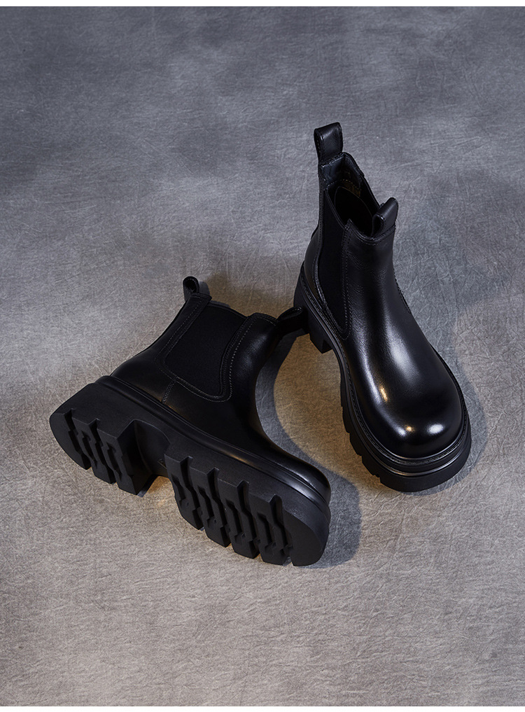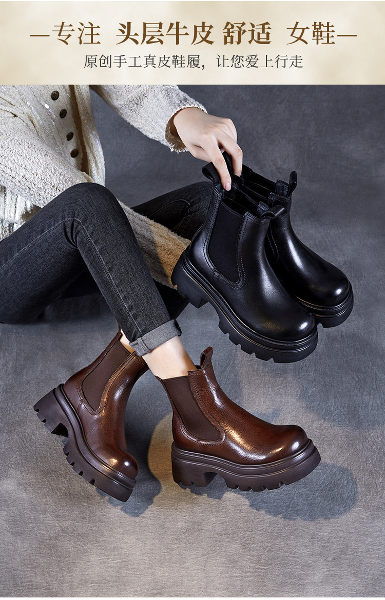 정품 가죽 플랫폼 라이트 럭셔리 마틴 부츠 여성 2024 가을 및 겨울 영국 Maillard Chelsea 부츠 높이 증가 연기 중간 부츠스토어 가기