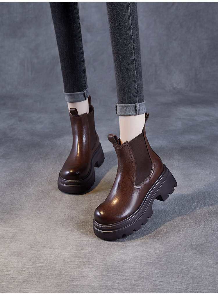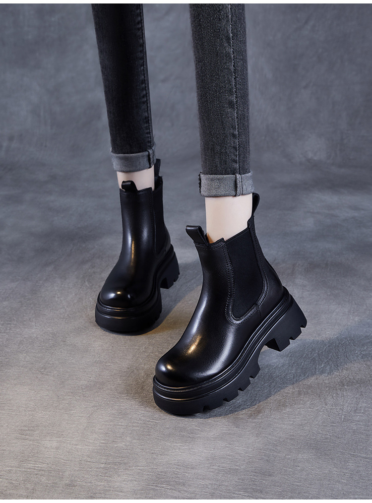 정품 가죽 플랫폼 라이트 럭셔리 마틴 부츠 여성 2024 가을 및 겨울 영국 Maillard Chelsea 부츠 높이 증가 연기 중간 부츠