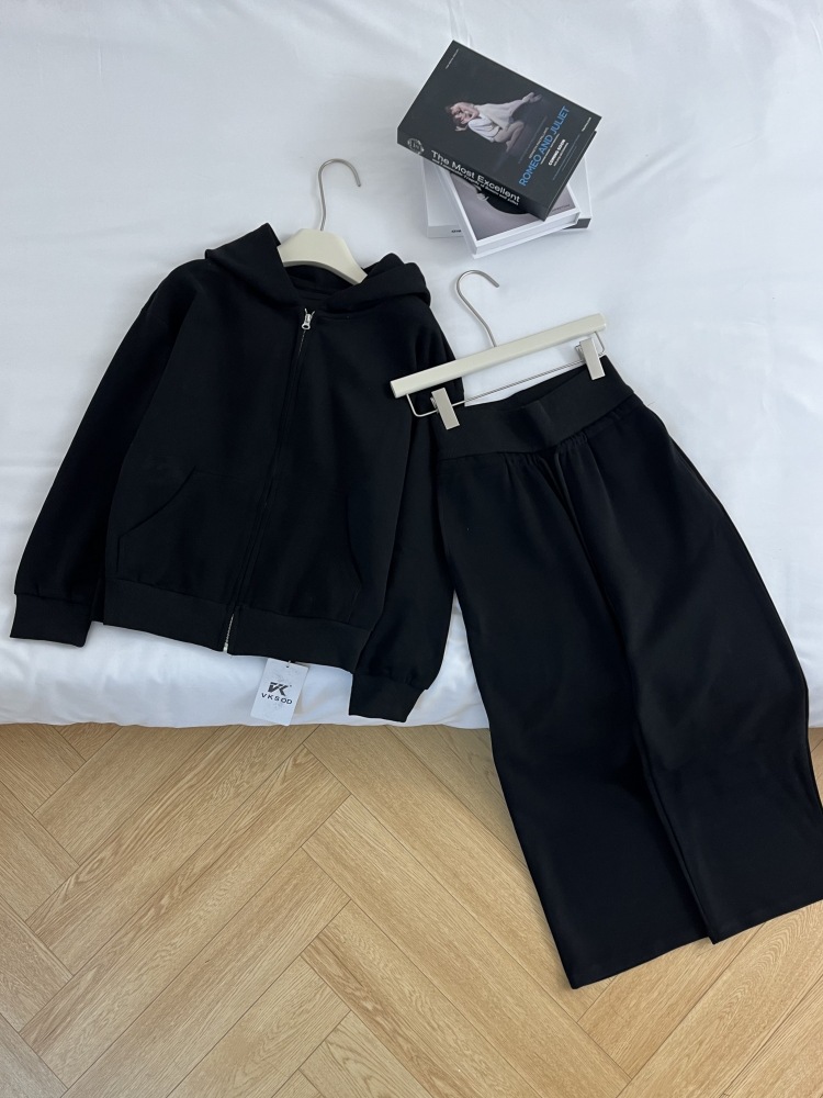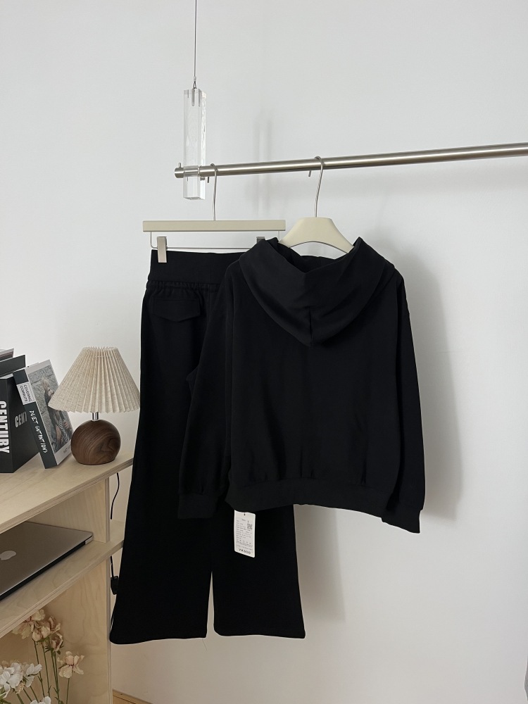 아메리칸 스타일 핫 걸 블랙 세트 여성 가을 카디건 디자인 긴 소매 스웨터 캐주얼 바지 2 피스 세트