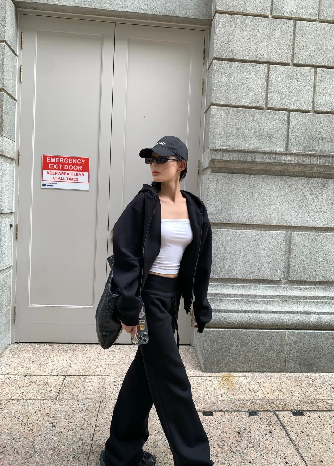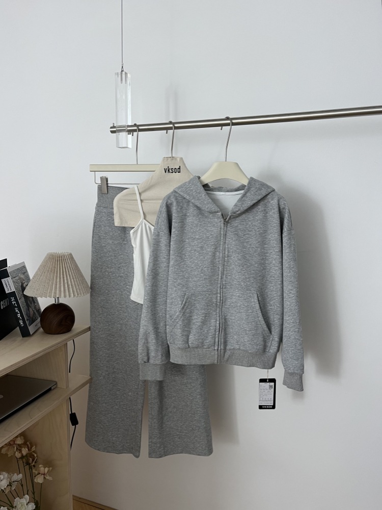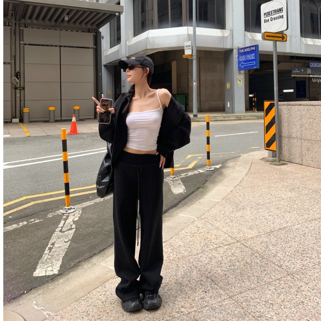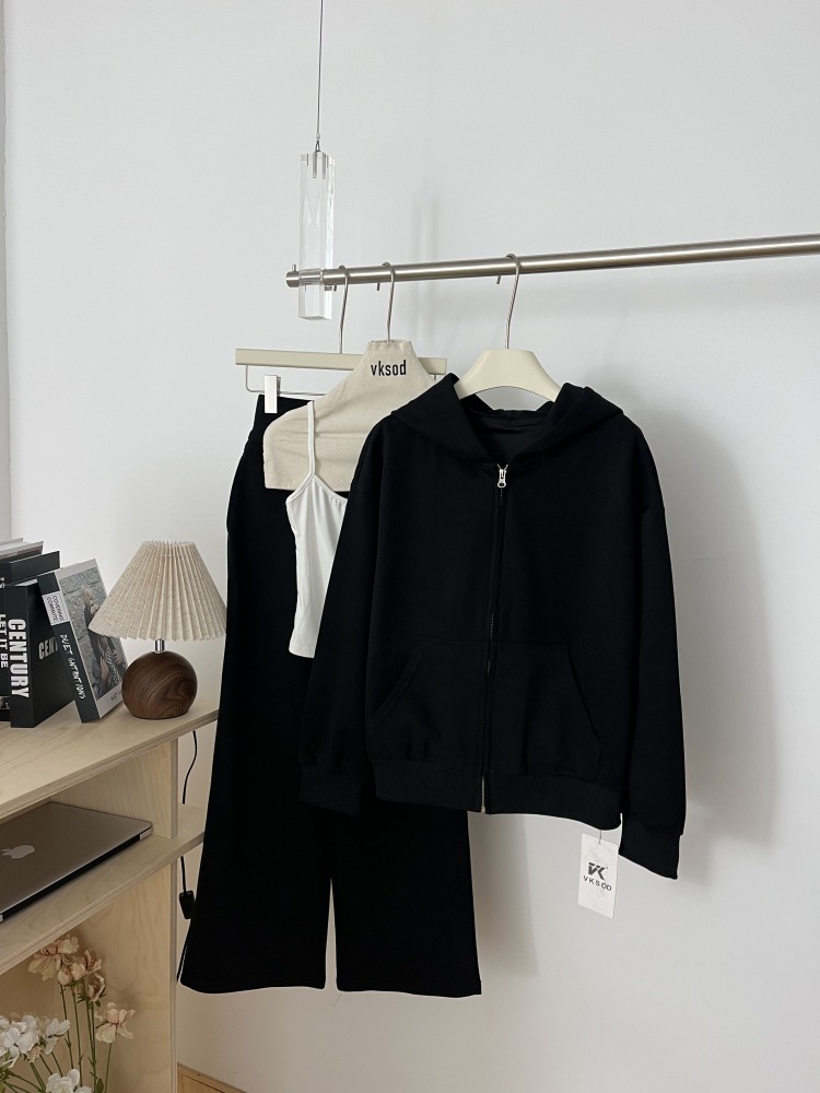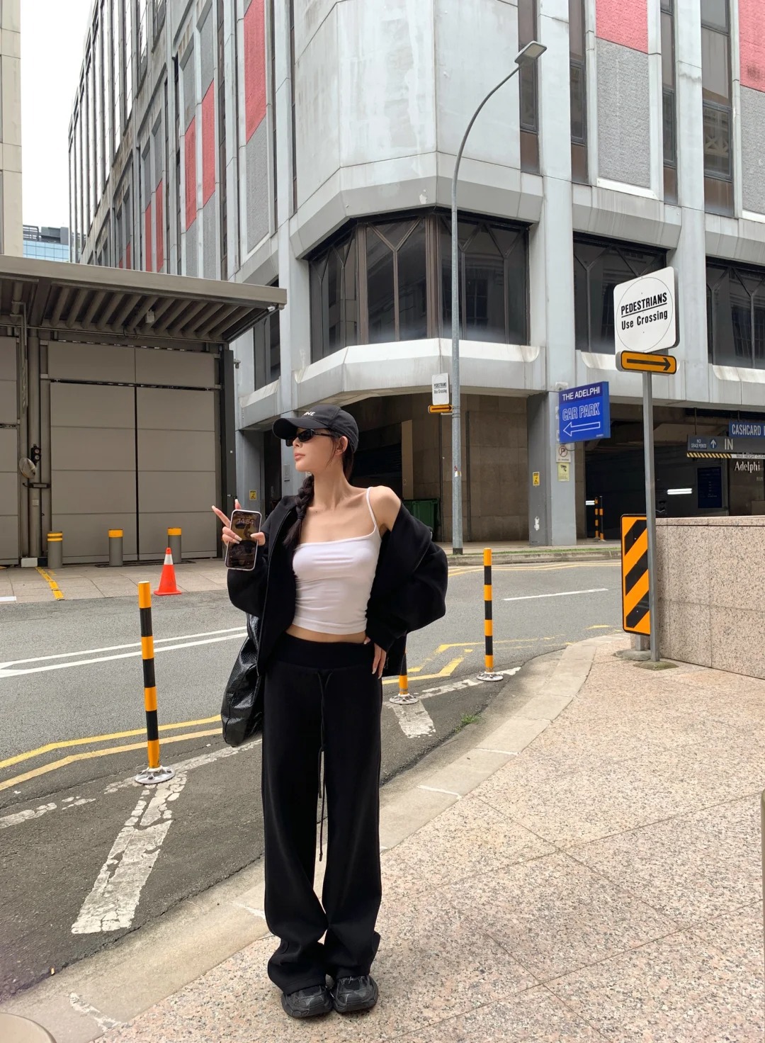 아메리칸 스타일 핫 걸 블랙 세트 여성 가을 카디건 디자인 긴 소매 스웨터 캐주얼 바지 2 피스 세트스토어 가기