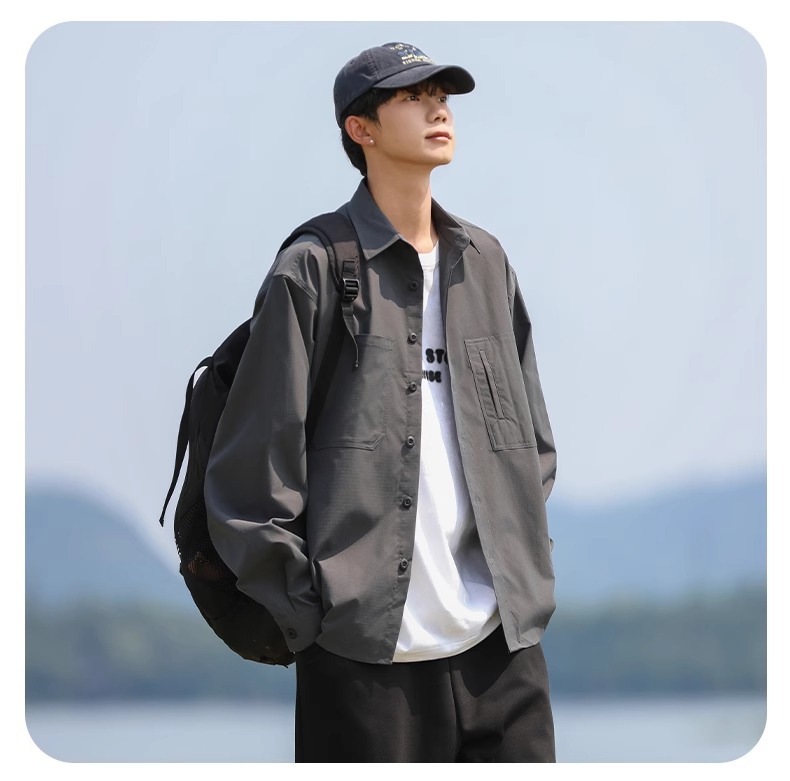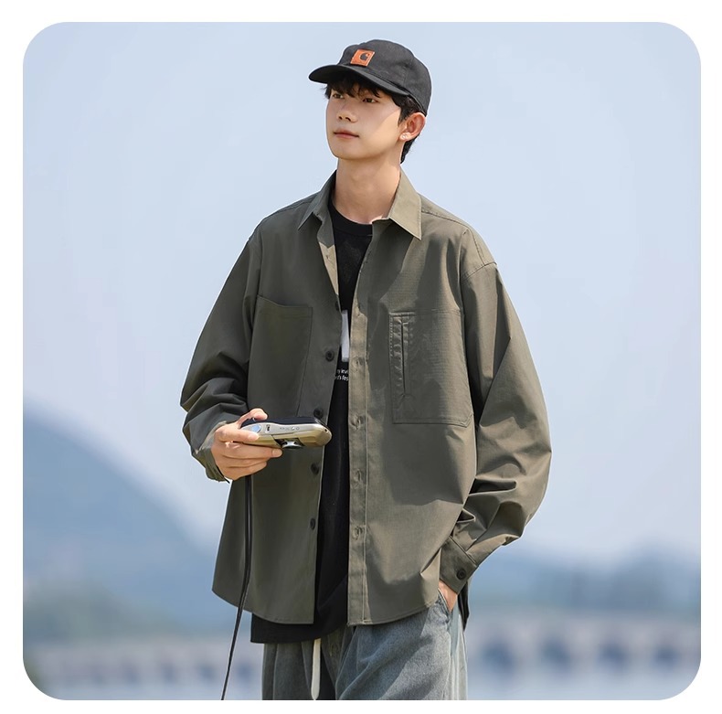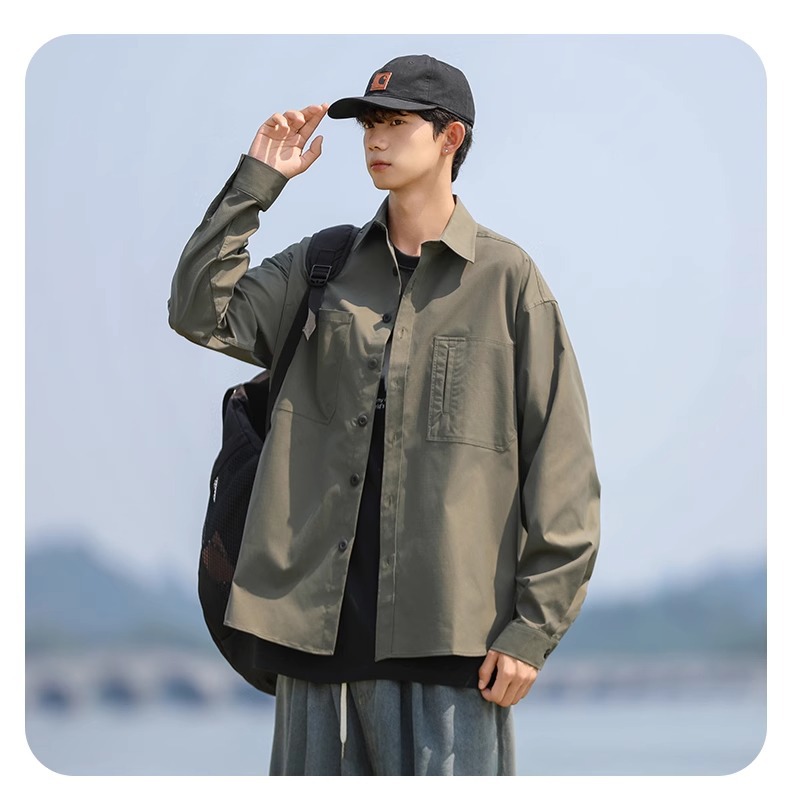 NASA 셔츠 남자 긴팔 일본 패션 브랜드 간단한 한국 툴링 셔츠 봄과 가을 느슨한 옷깃 남성 자켓