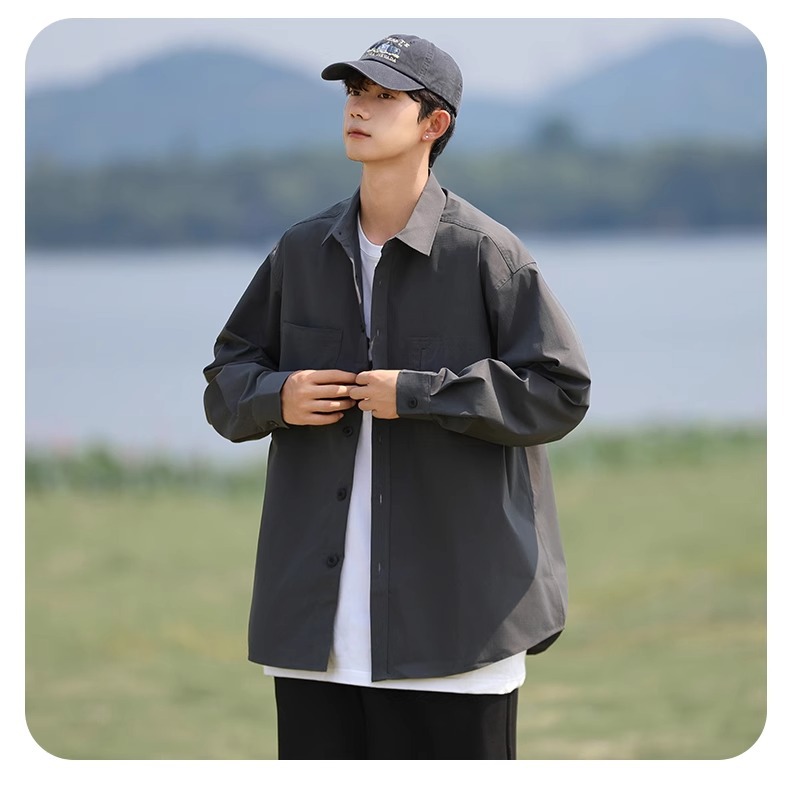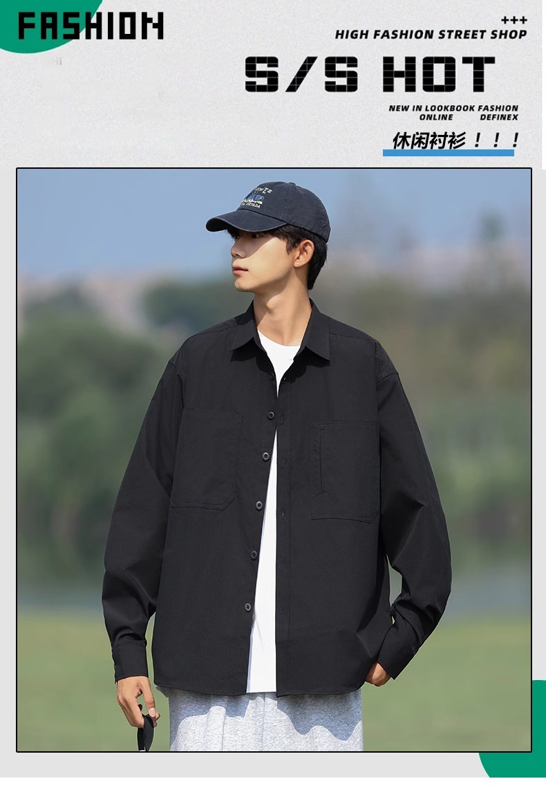 NASA 셔츠 남자 긴팔 일본 패션 브랜드 간단한 한국 툴링 셔츠 봄과 가을 느슨한 옷깃 남성 자켓스토어 가기