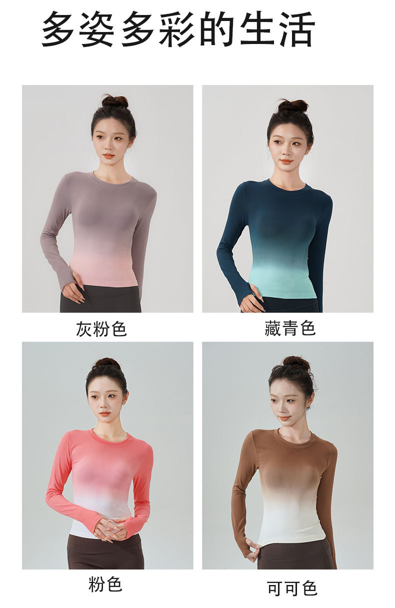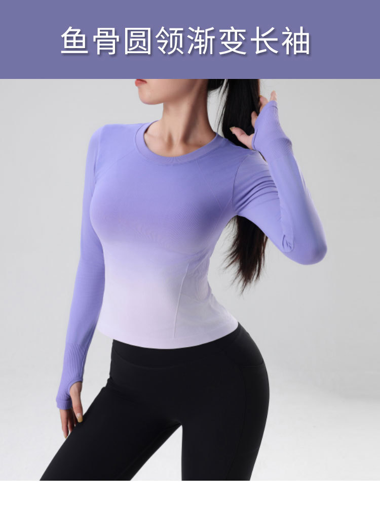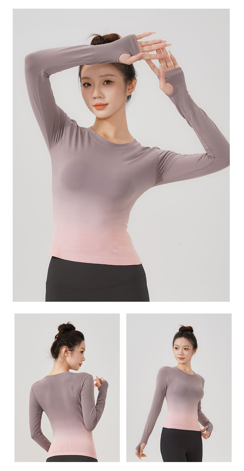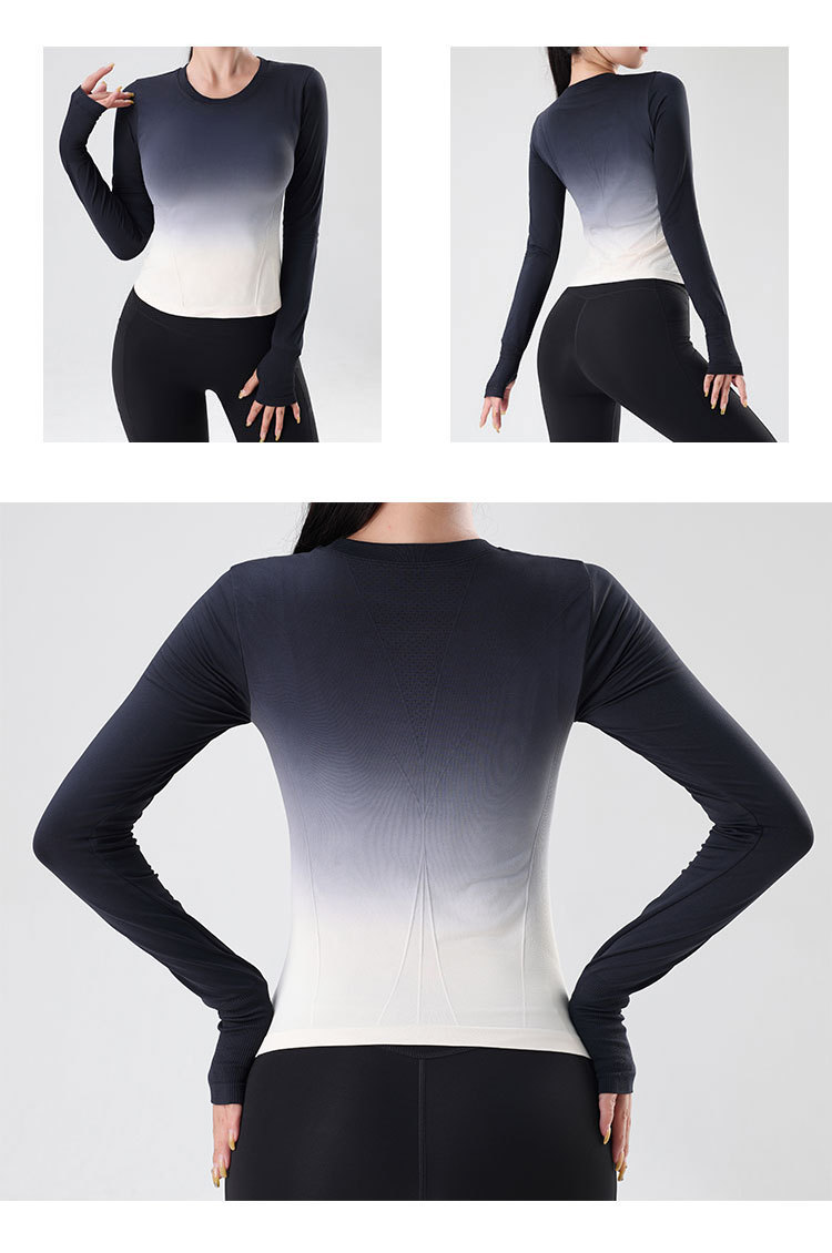 룰루 그라데이션 컬러 가을 겨울 요가복 상의 속건성 긴팔 슬림핏 스포츠 티셔츠 원피스 피트니스 에어로빅복