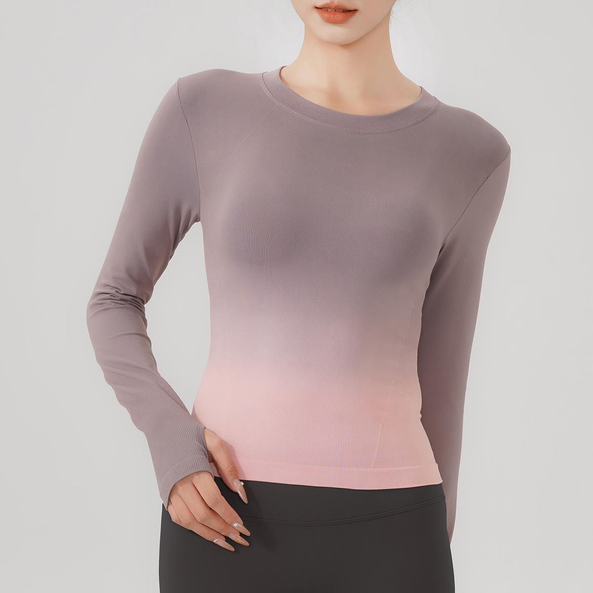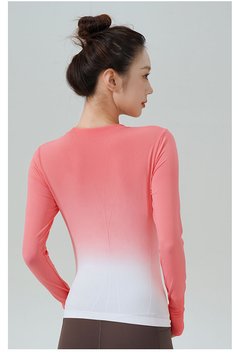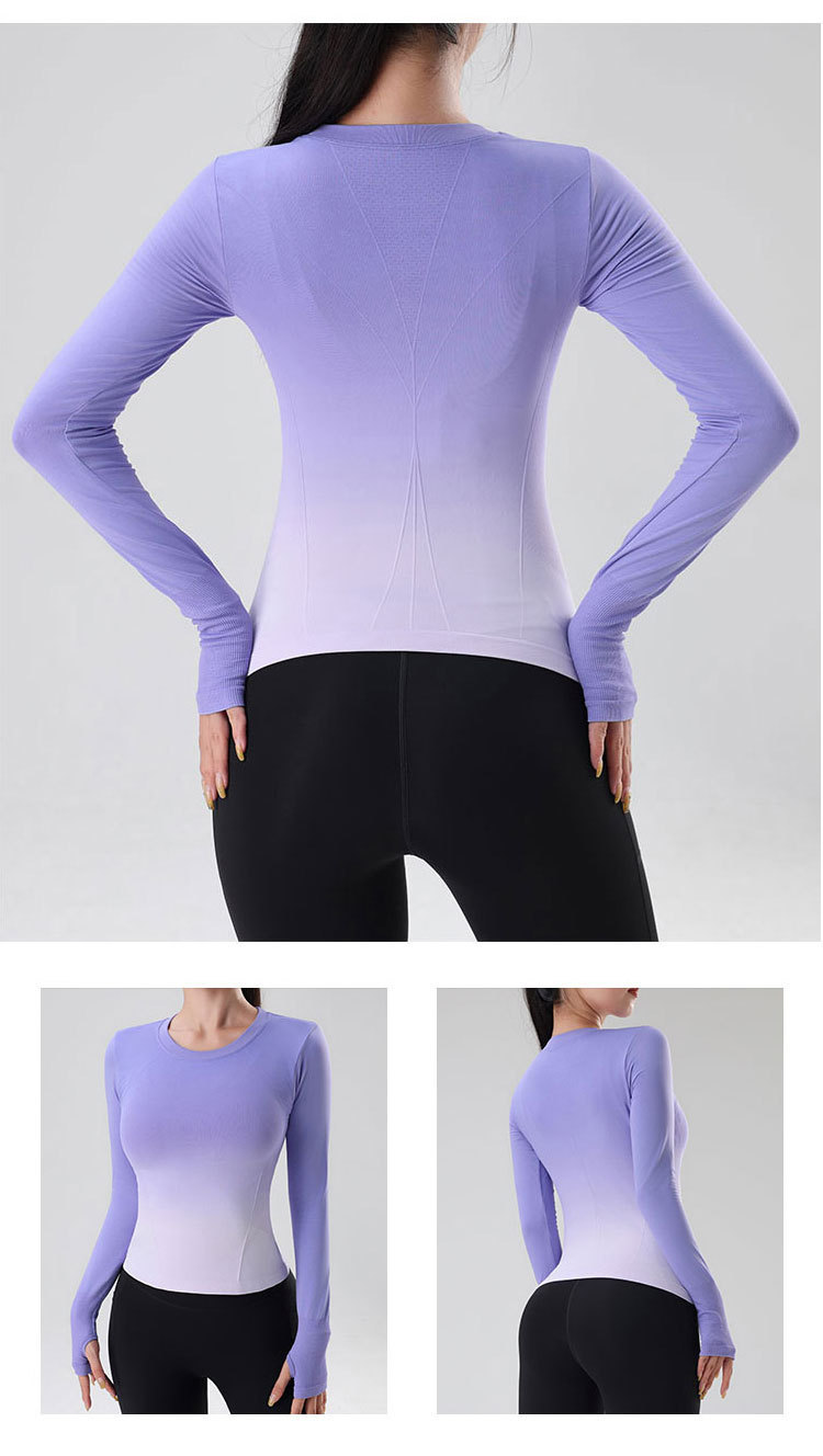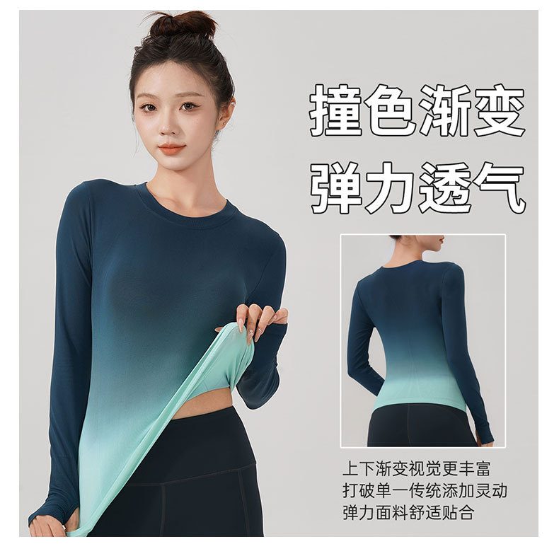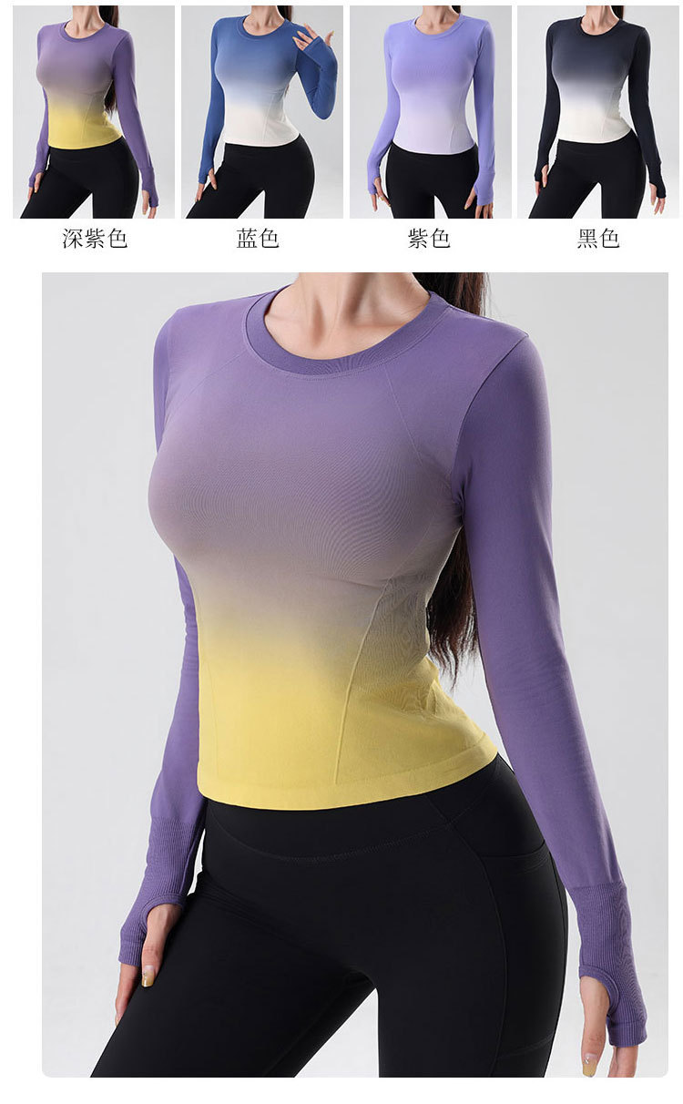 룰루 그라데이션 컬러 가을 겨울 요가복 상의 속건성 긴팔 슬림핏 스포츠 티셔츠 원피스 피트니스 에어로빅복