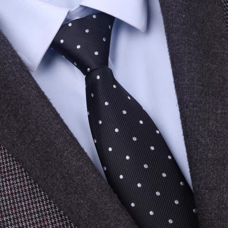 • (지퍼형) 8cm 블랙 도트무늬 타이