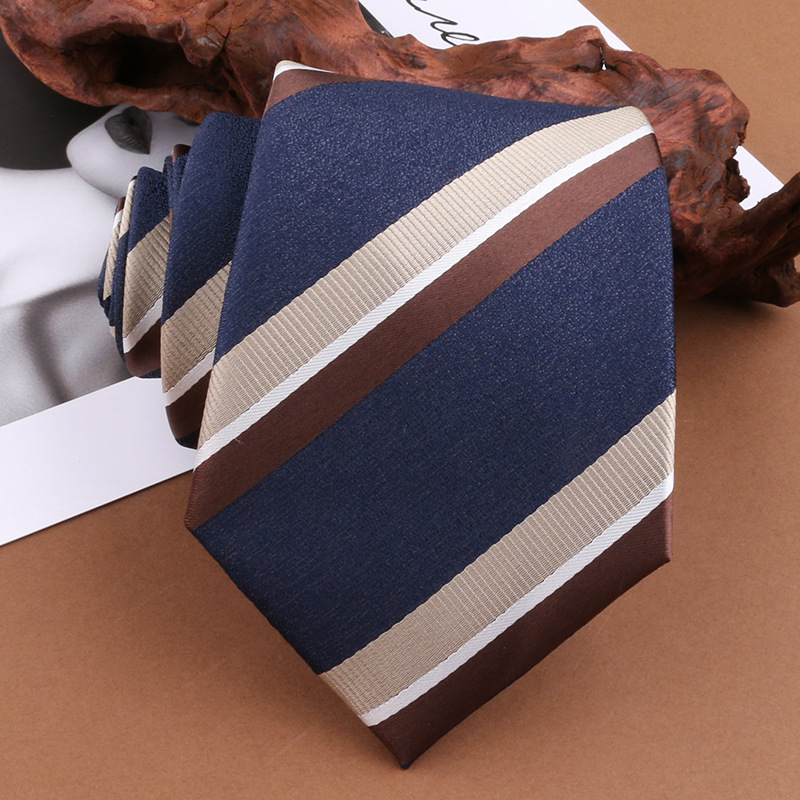 • ((지퍼 없음) 8cm 네이비 블루 라이트 블루 스트라이프 타이 다크 블루